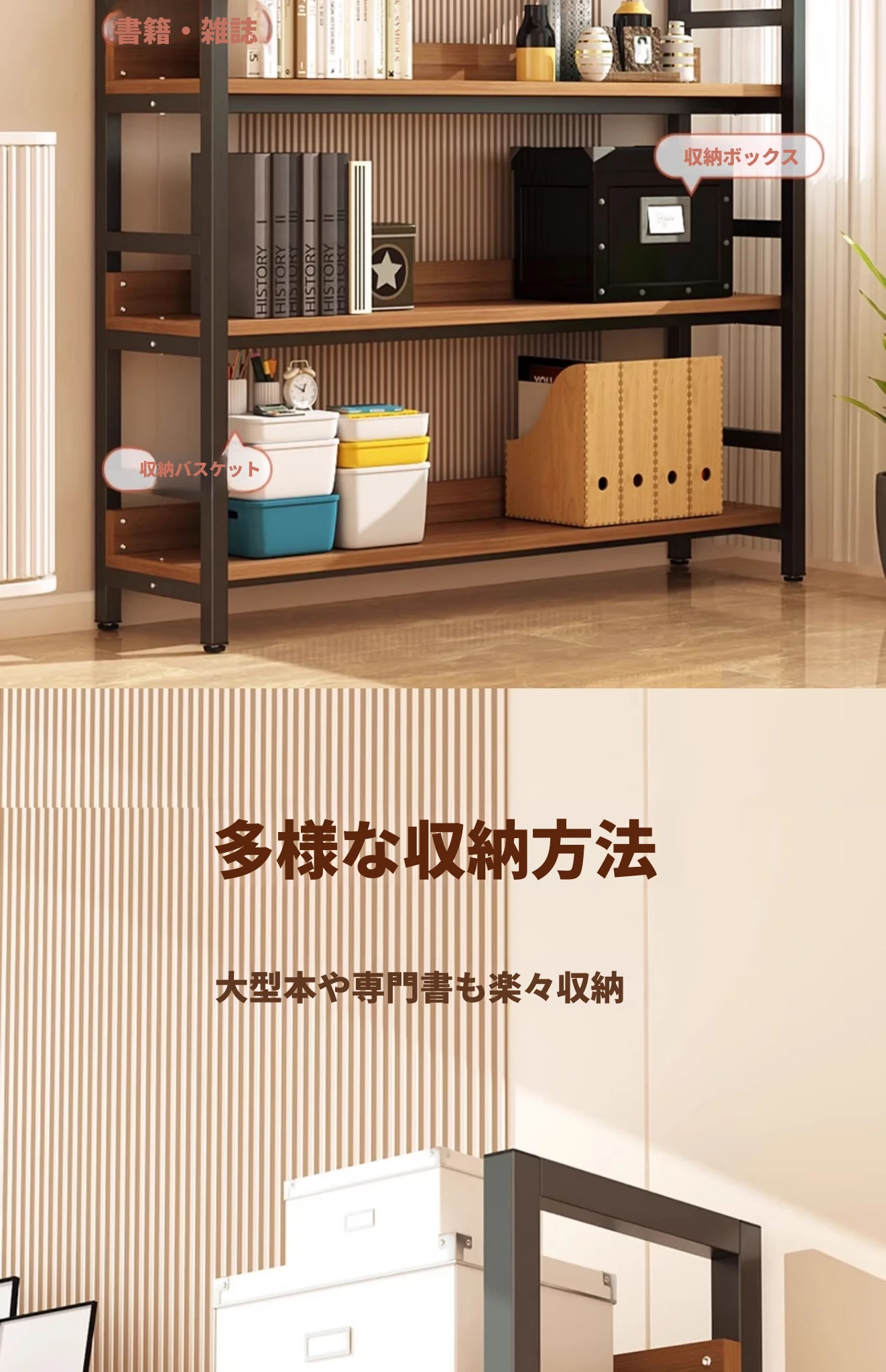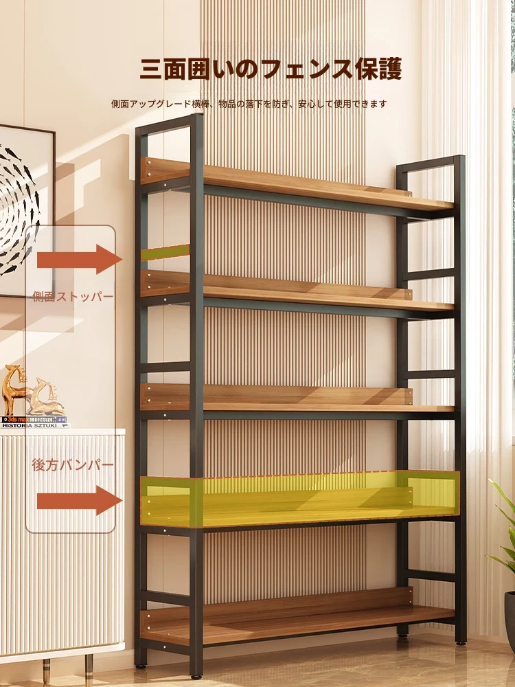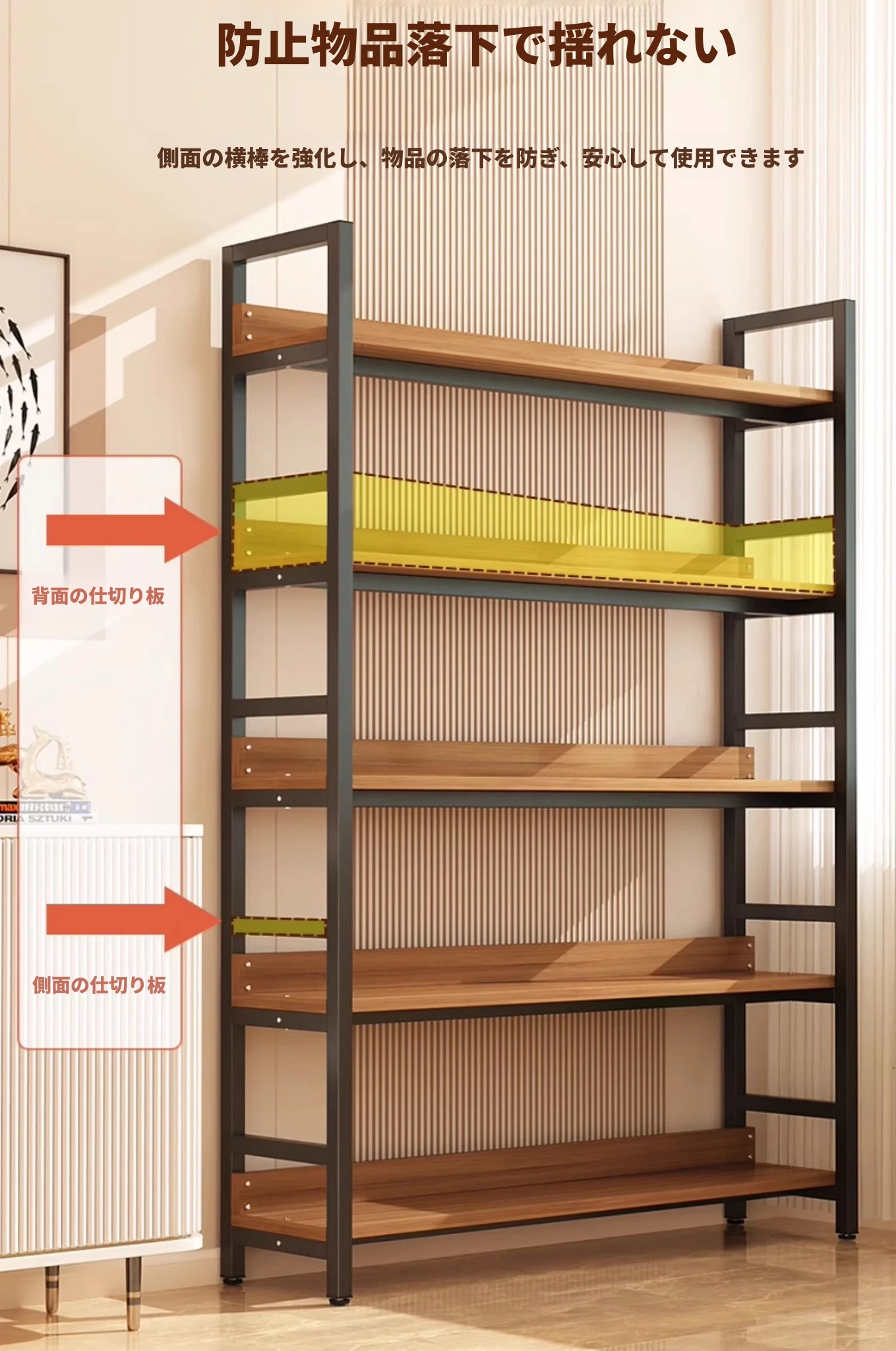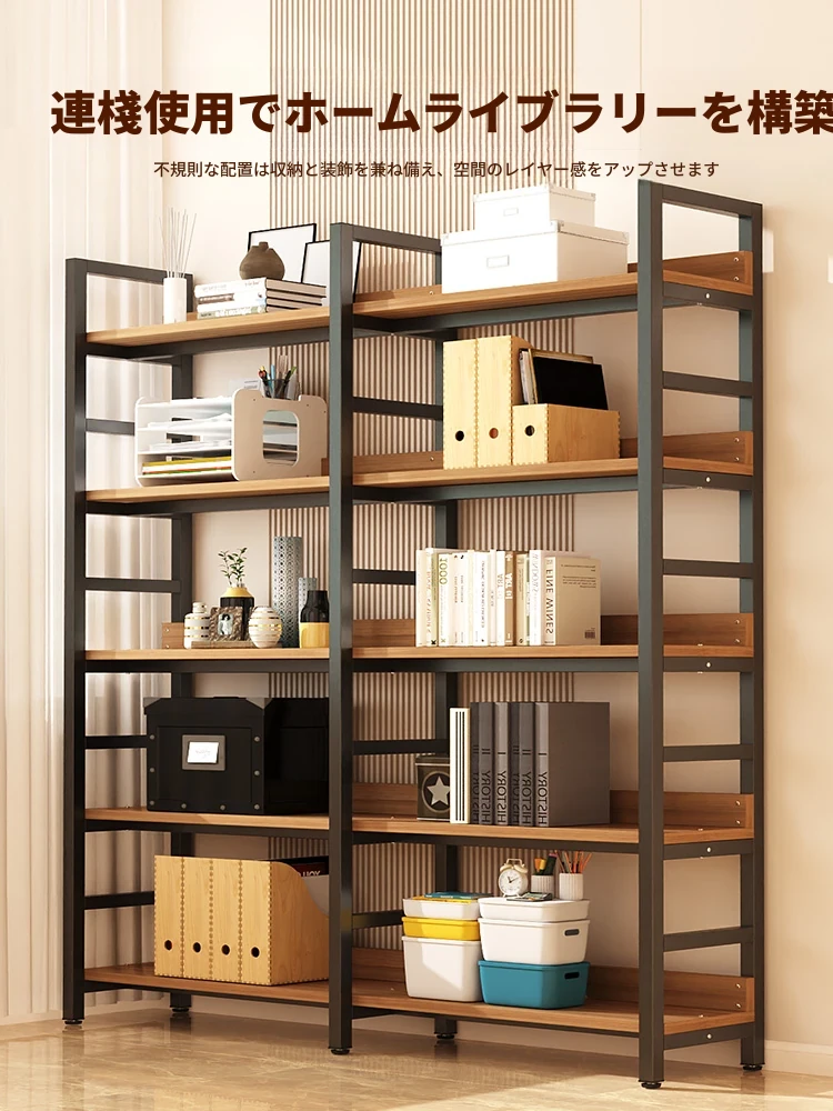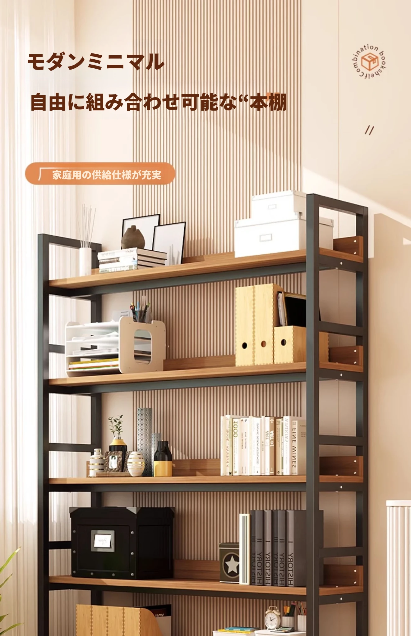 スタイリッシュなスチールウッド製の多層書棚 - 家庭用フロアタイプ、リビングルームの収納や展示に最適!子供部屋にもぴったりなデザインで、すっきりとした収納を実現します。