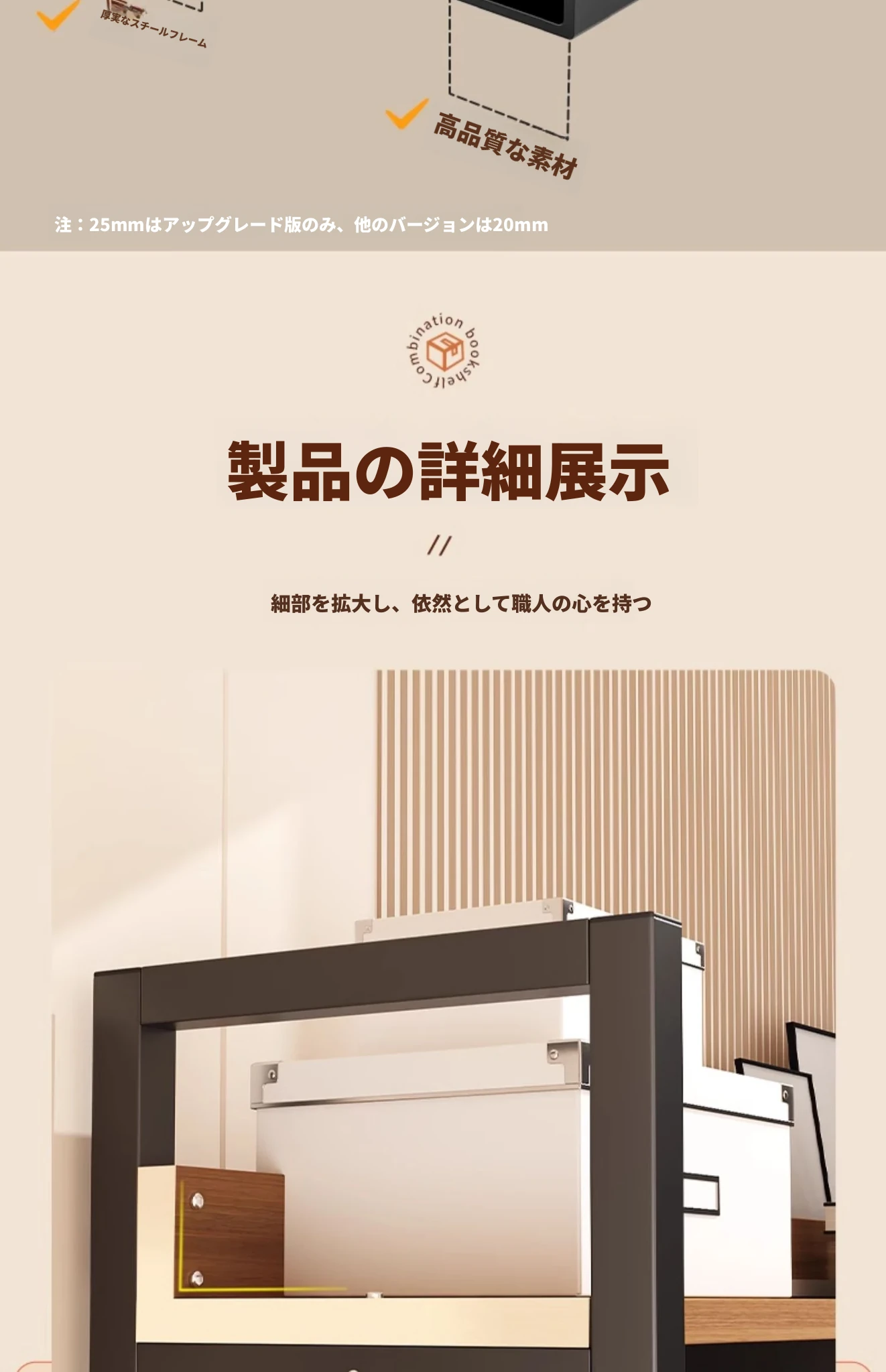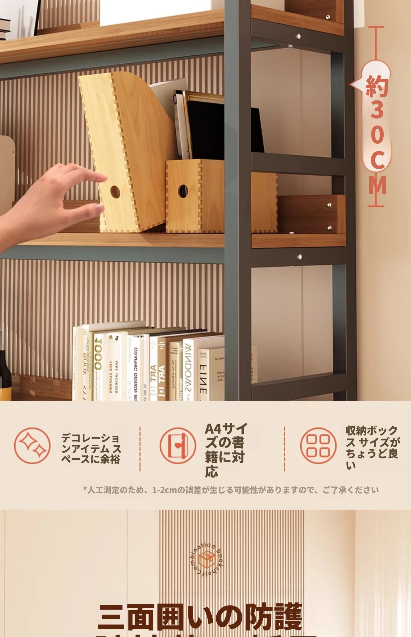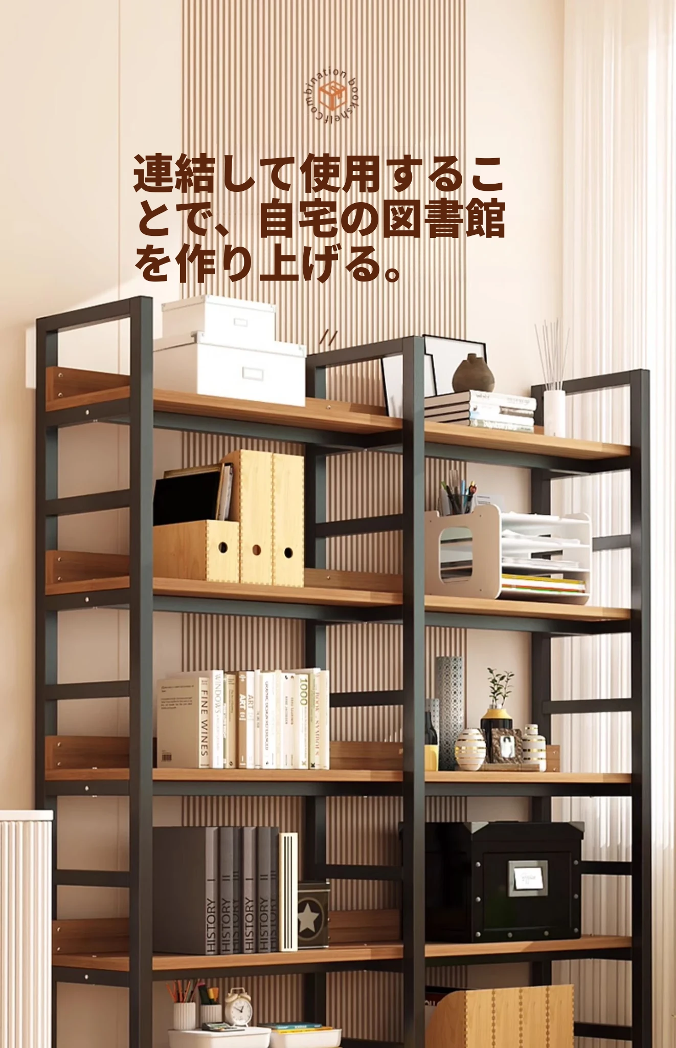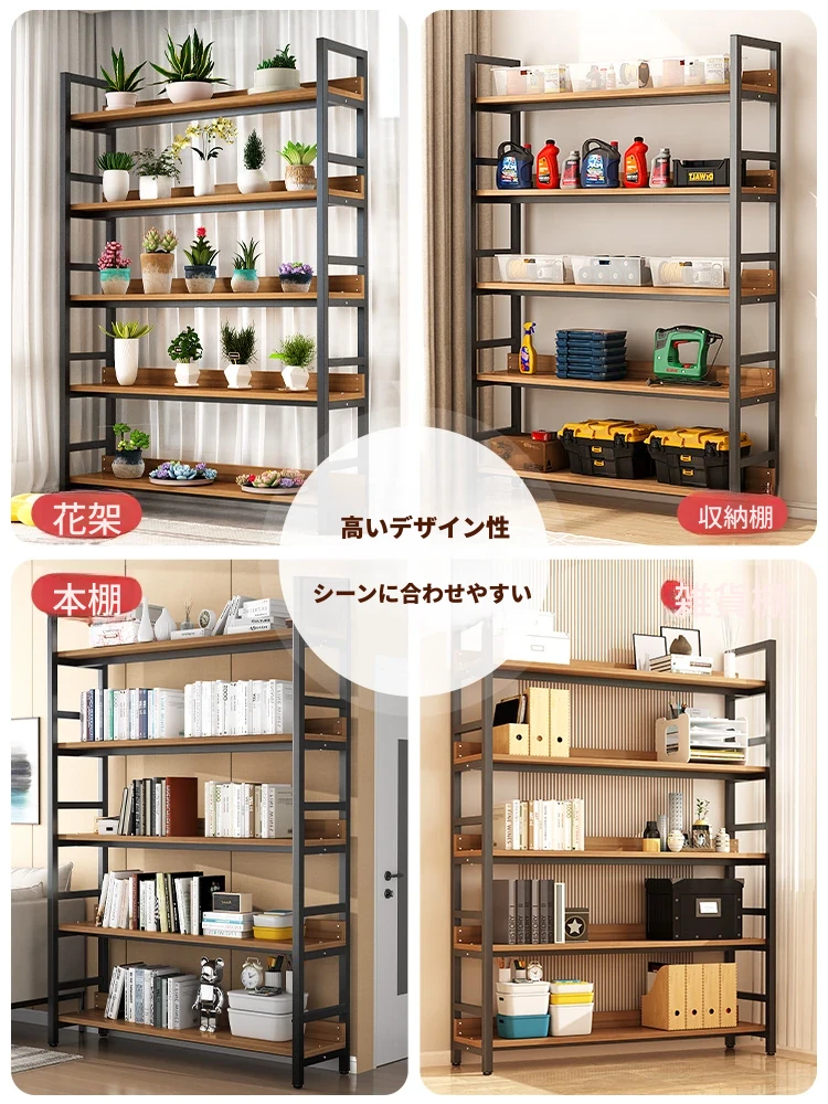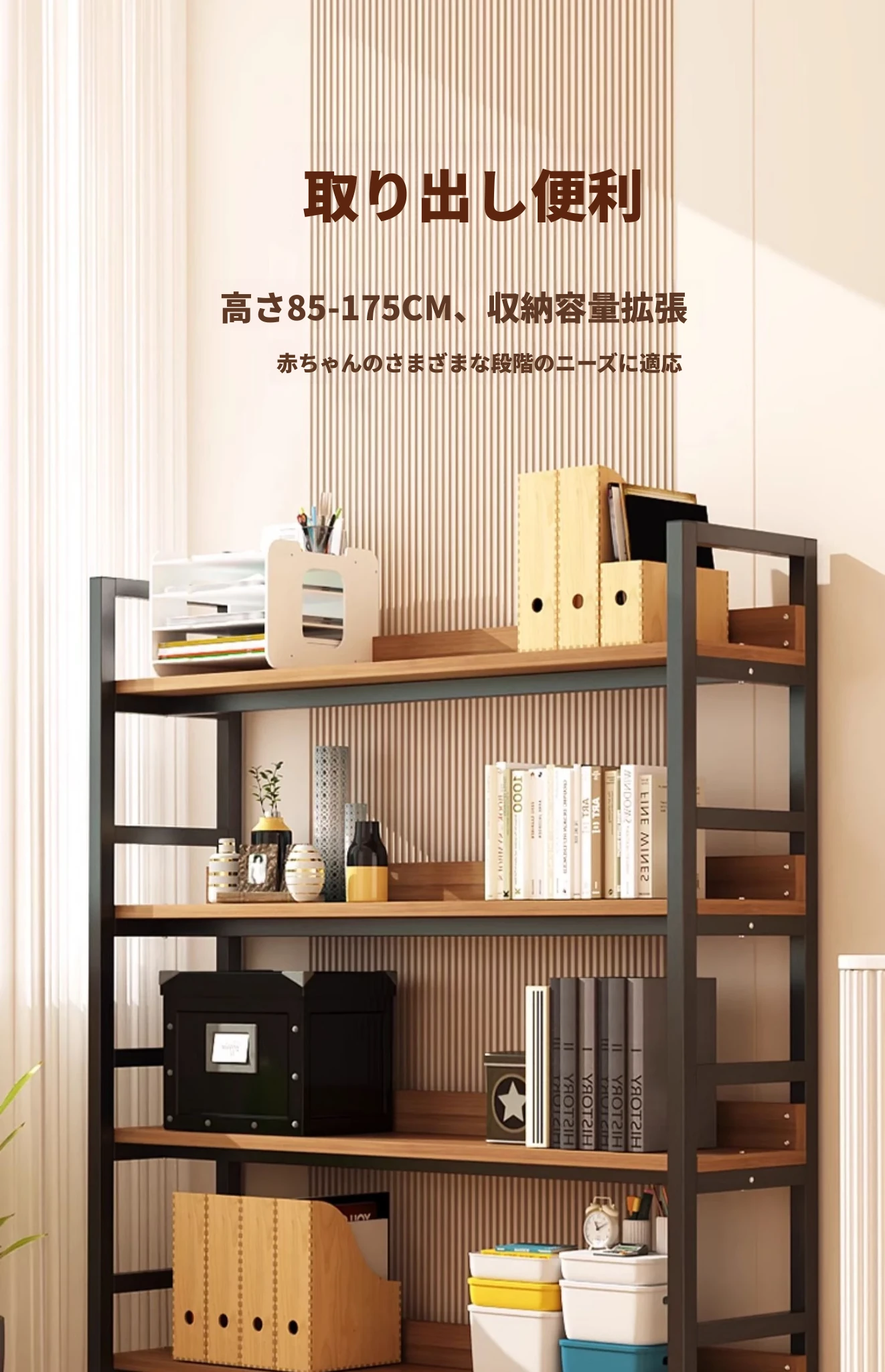 スタイリッシュなスチールウッド製の多層書棚 - 家庭用フロアタイプ、リビングルームの収納や展示に最適!子供部屋にもぴったりなデザインで、すっきりとした収納を実現します。
