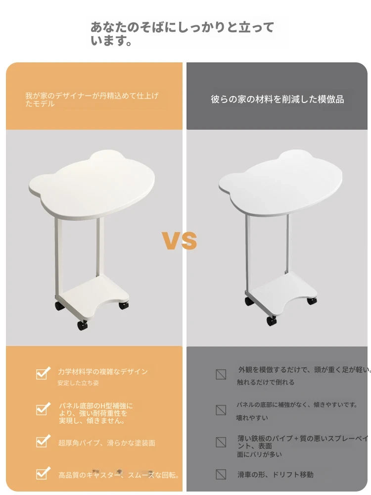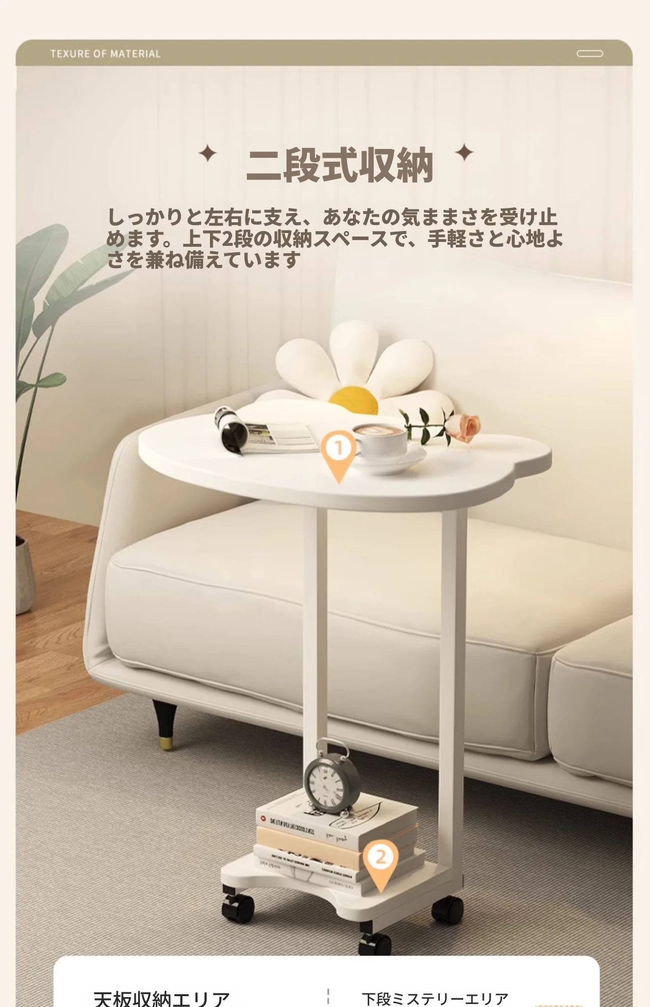 パンダモバイルソファサイドテーブル|コンパクトな小型テーブル|おしゃれなソファサイドキャビネット|ベッドサイドにもぴったり!省スペースで機能的なデザイン!