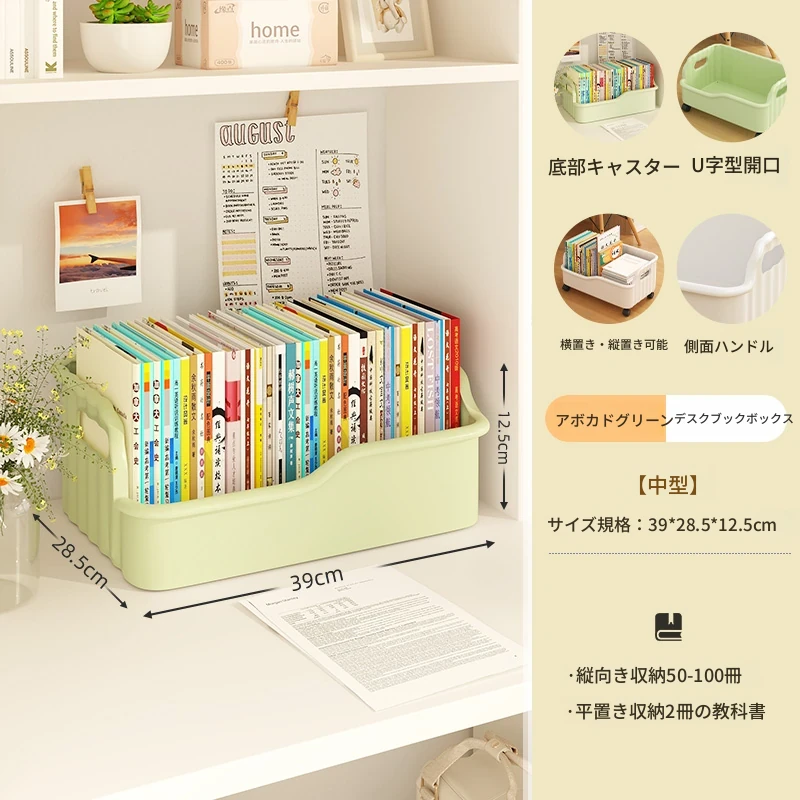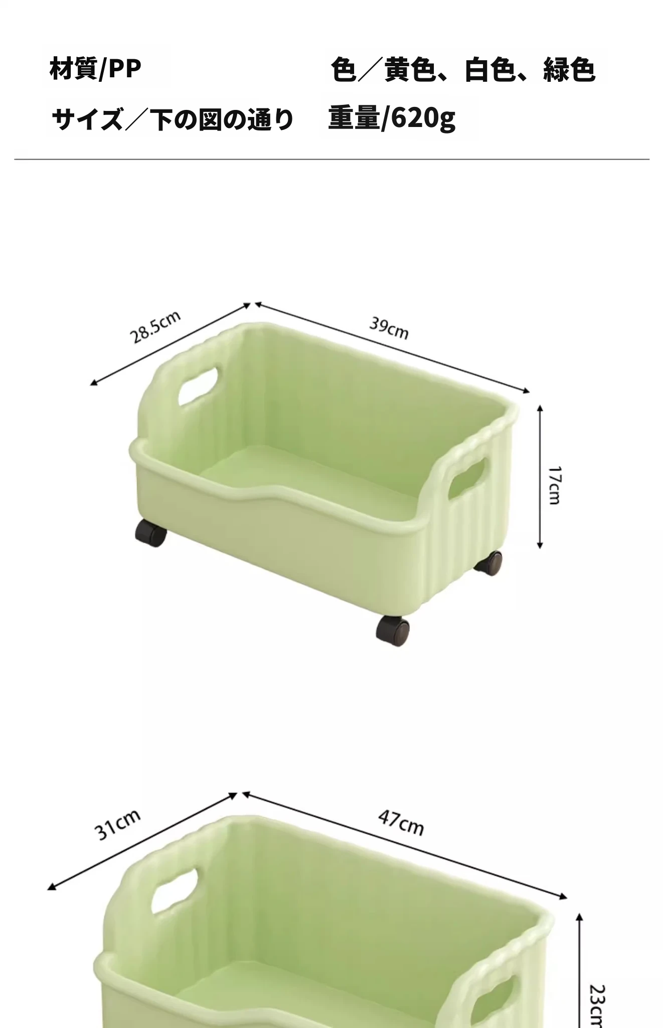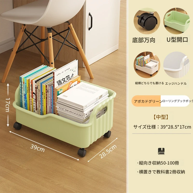 アボカドグリーン-中サイズ【デスク収納】キャスターなし