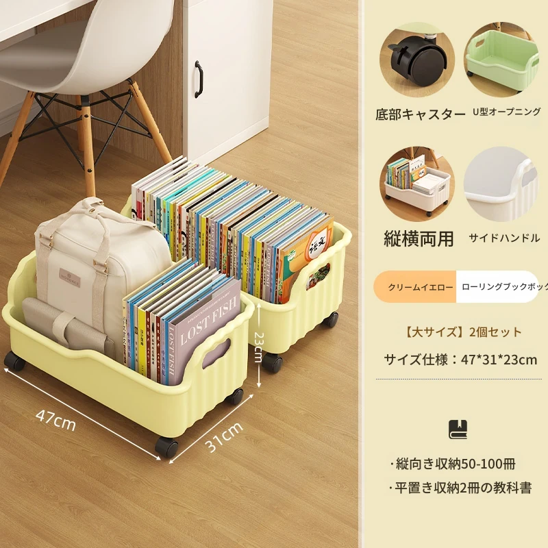 学習者おすすめ★淡クリームイエロー-大サイズ【移動可能なキャスター付き】厚手・大サイズ
