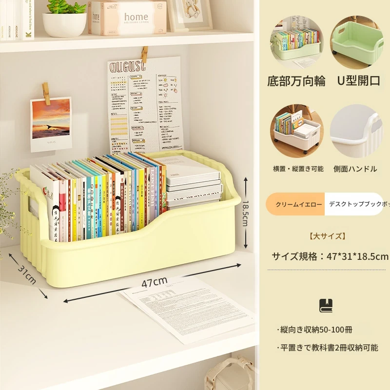 淡クリームイエロー-大サイズ【デスク収納】キャスターなし
