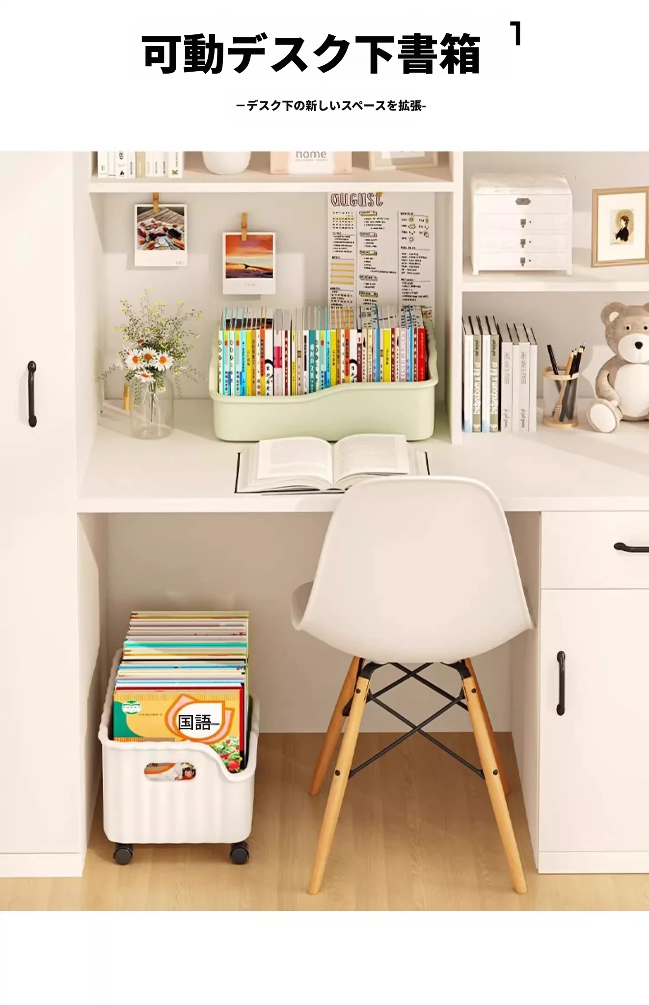 デスク下収納ラック 可動式シェルフ 子供教室用 デスクトップオフィスに最適な収納 小型キャスター付きワゴンでスッキリ整理!