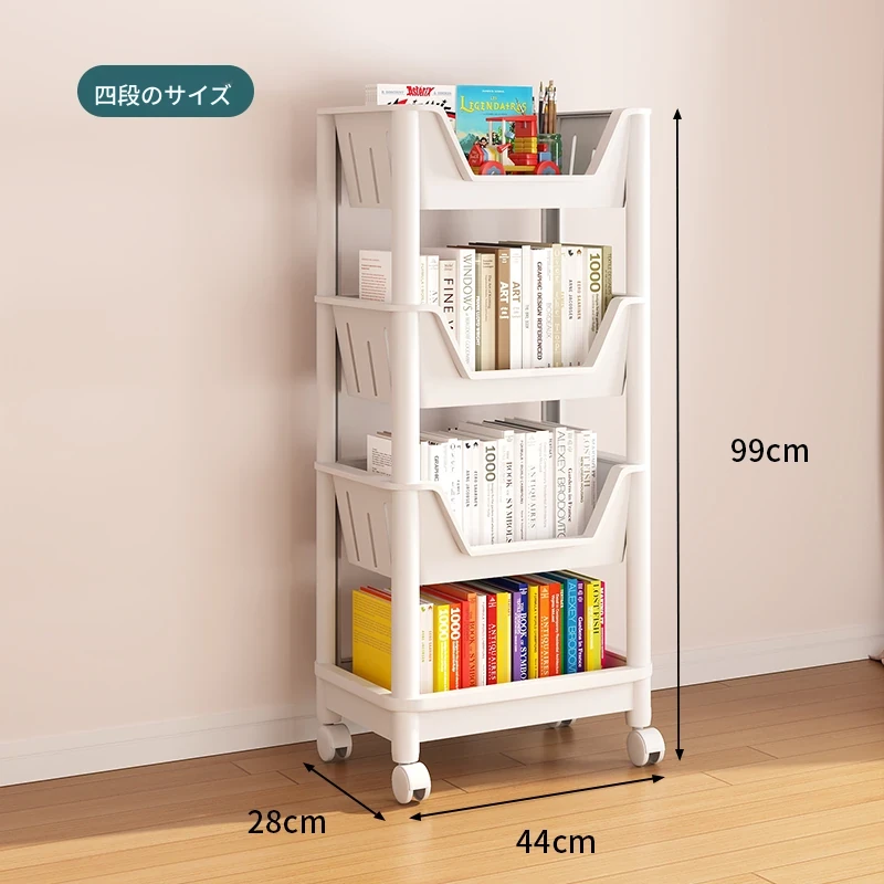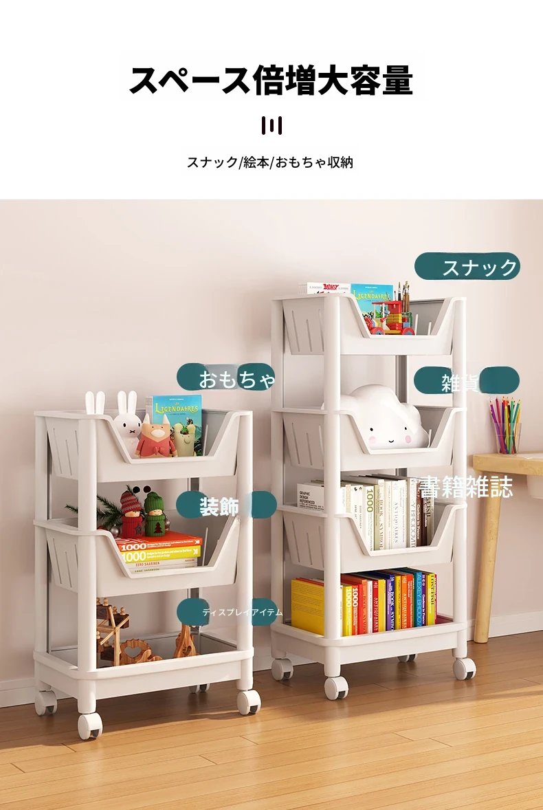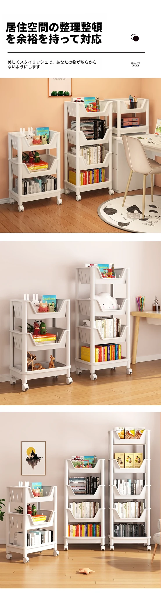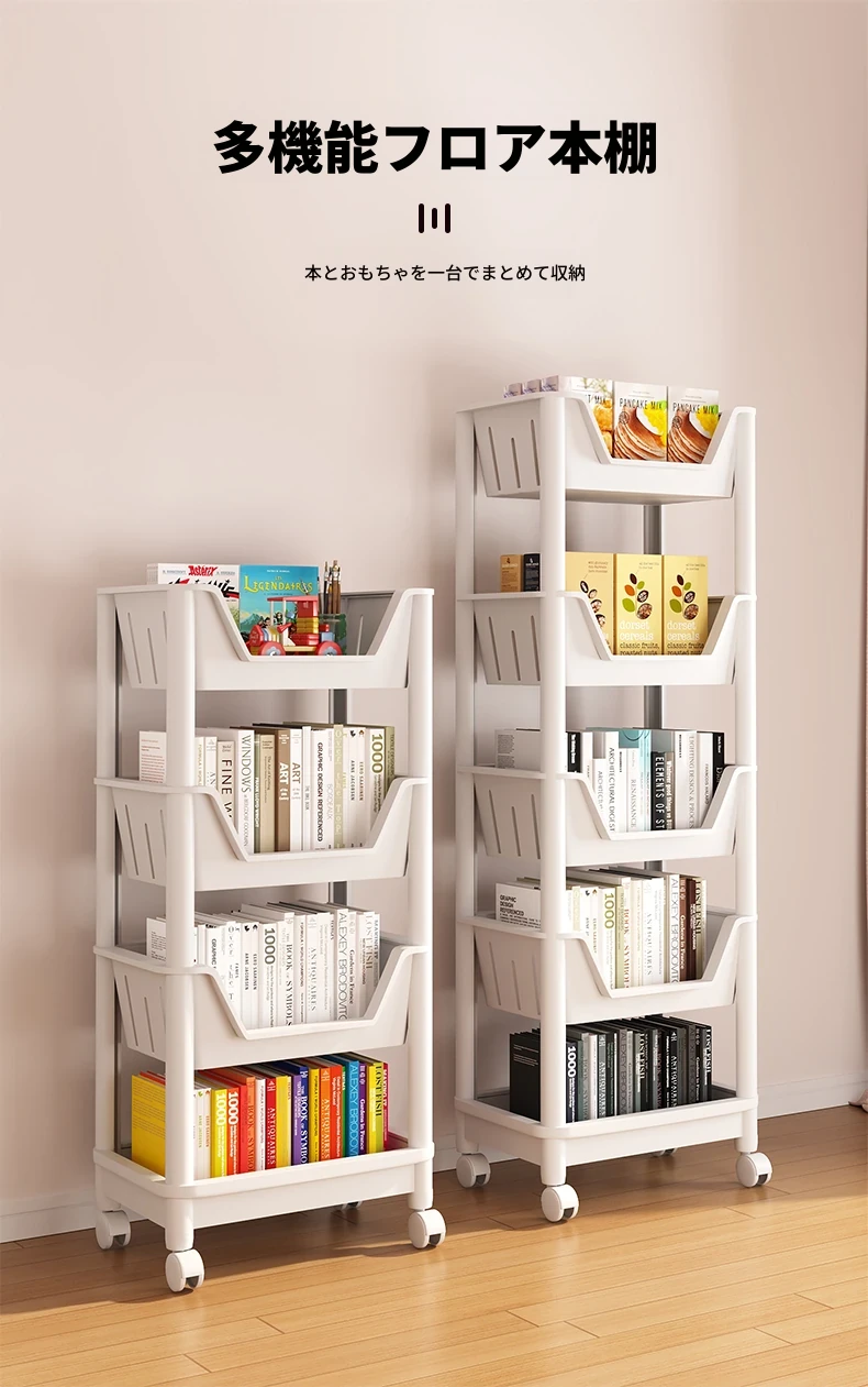 キャスター付き移動式ラック!簡単に組み立てられる子供用ブックシェルフ。読書やおやつの収納に最適!部屋をすっきり整理整頓。おしゃれで便利な収納アイテムです!
