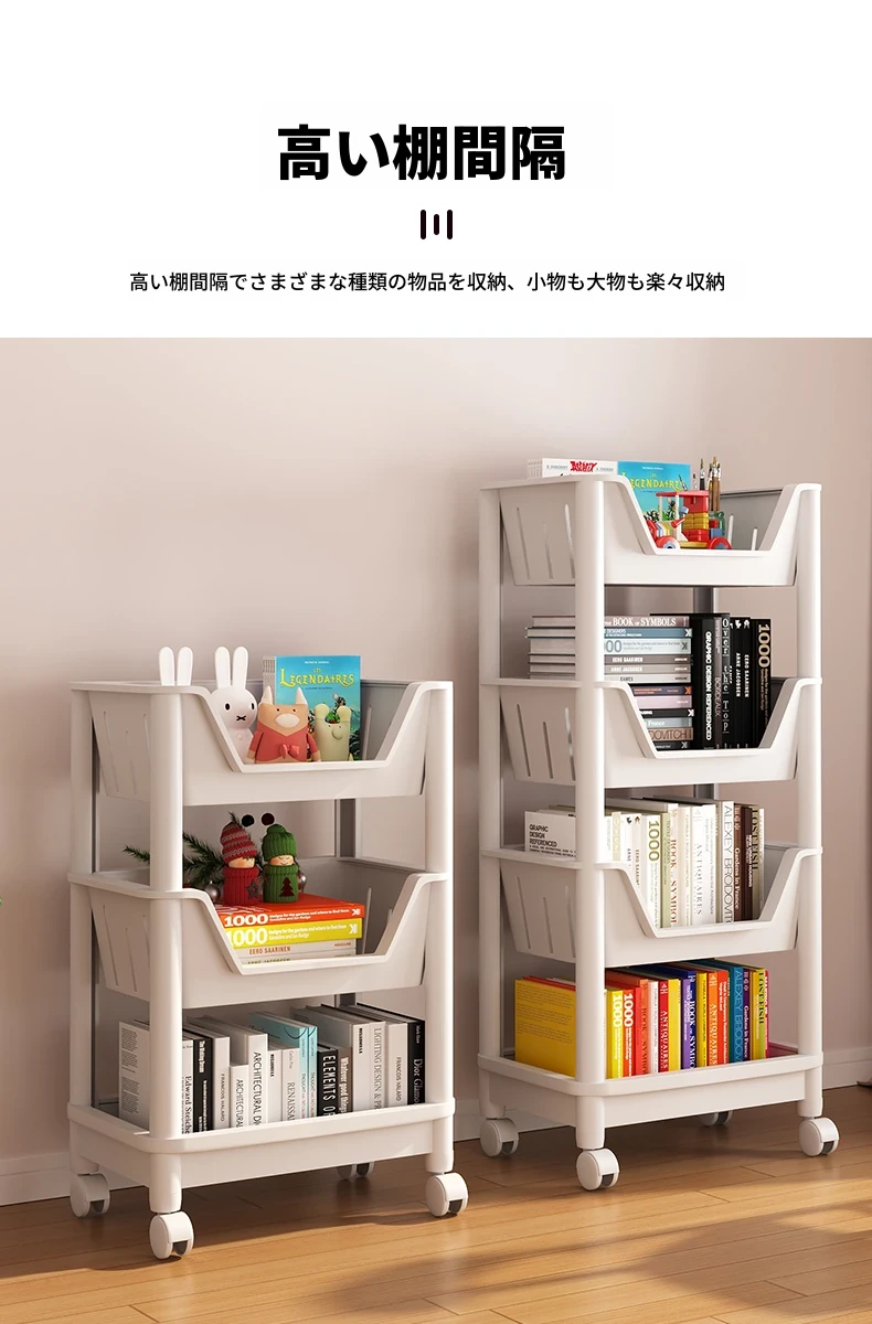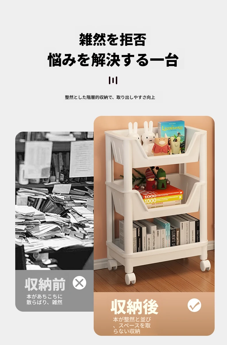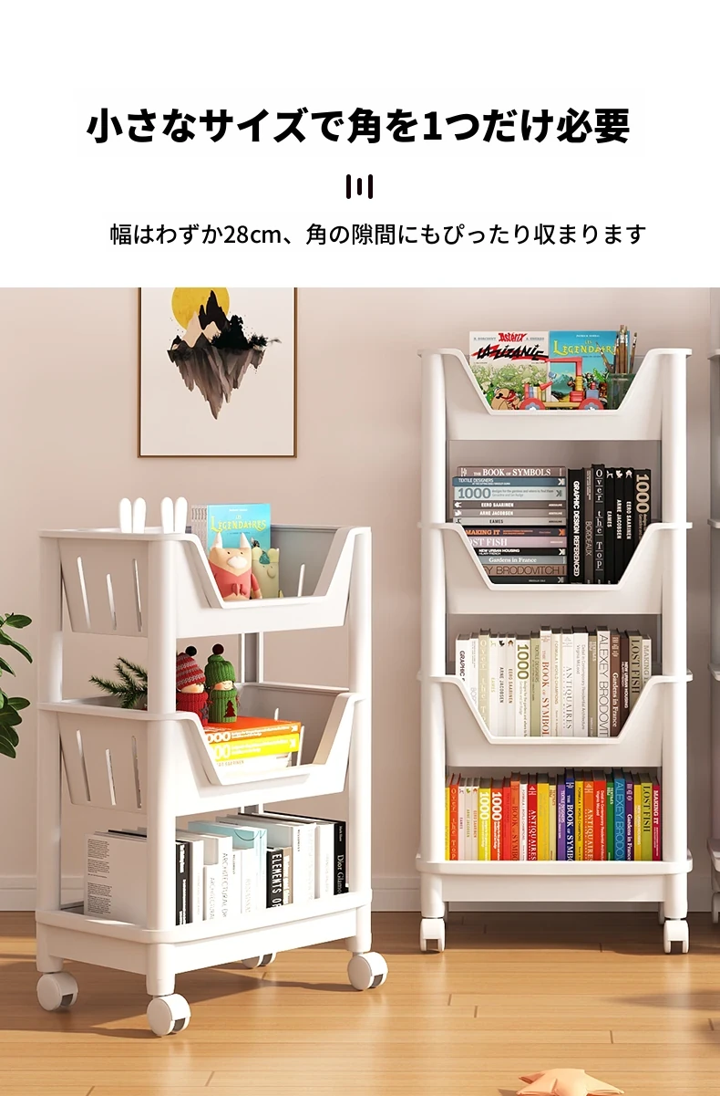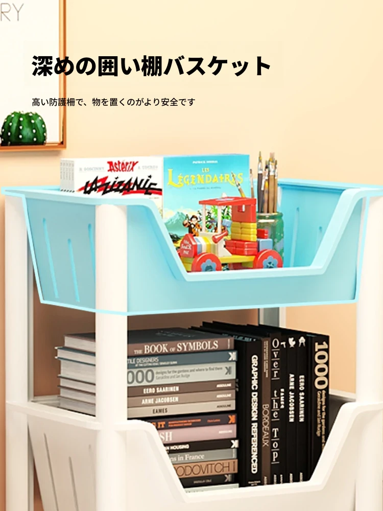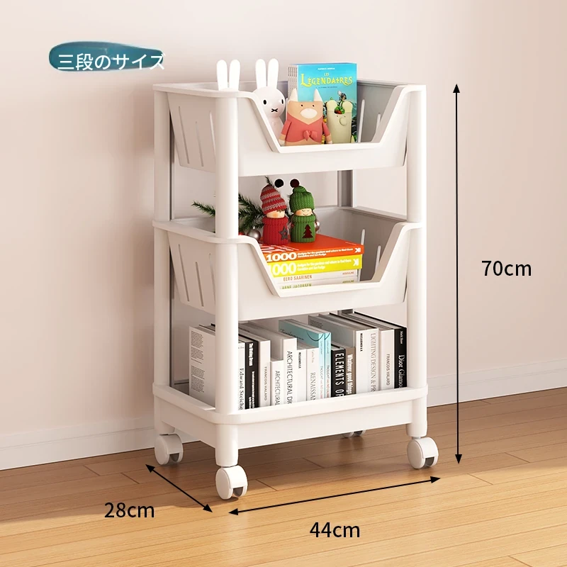 キャスター付き移動式ラック!簡単に組み立てられる子供用ブックシェルフ。読書やおやつの収納に最適!部屋をすっきり整理整頓。おしゃれで便利な収納アイテムです!