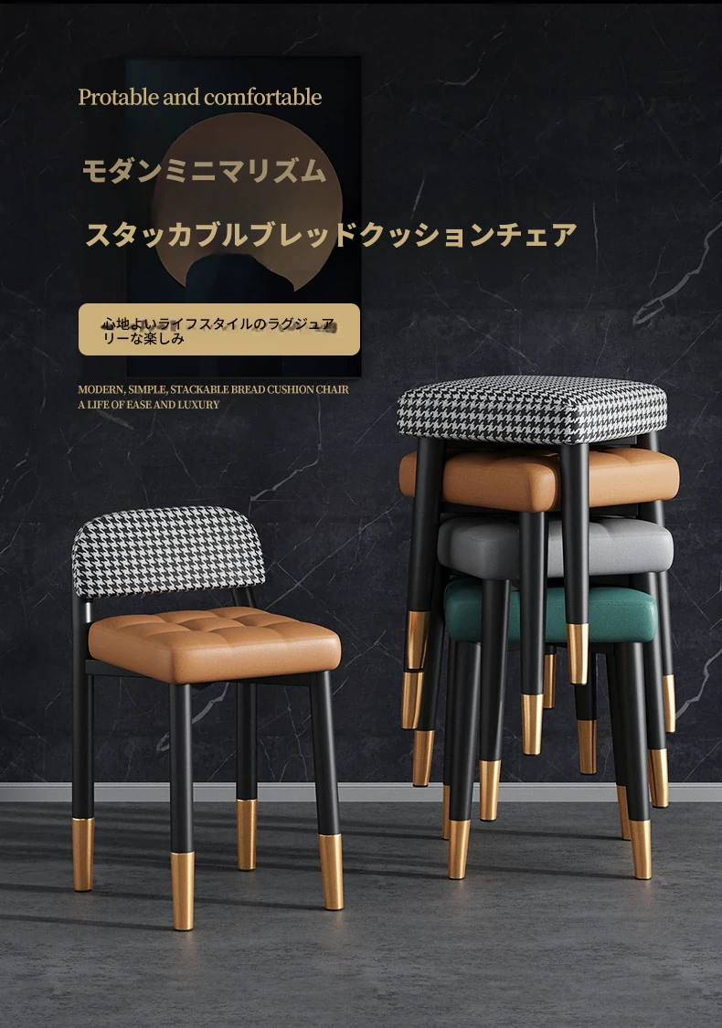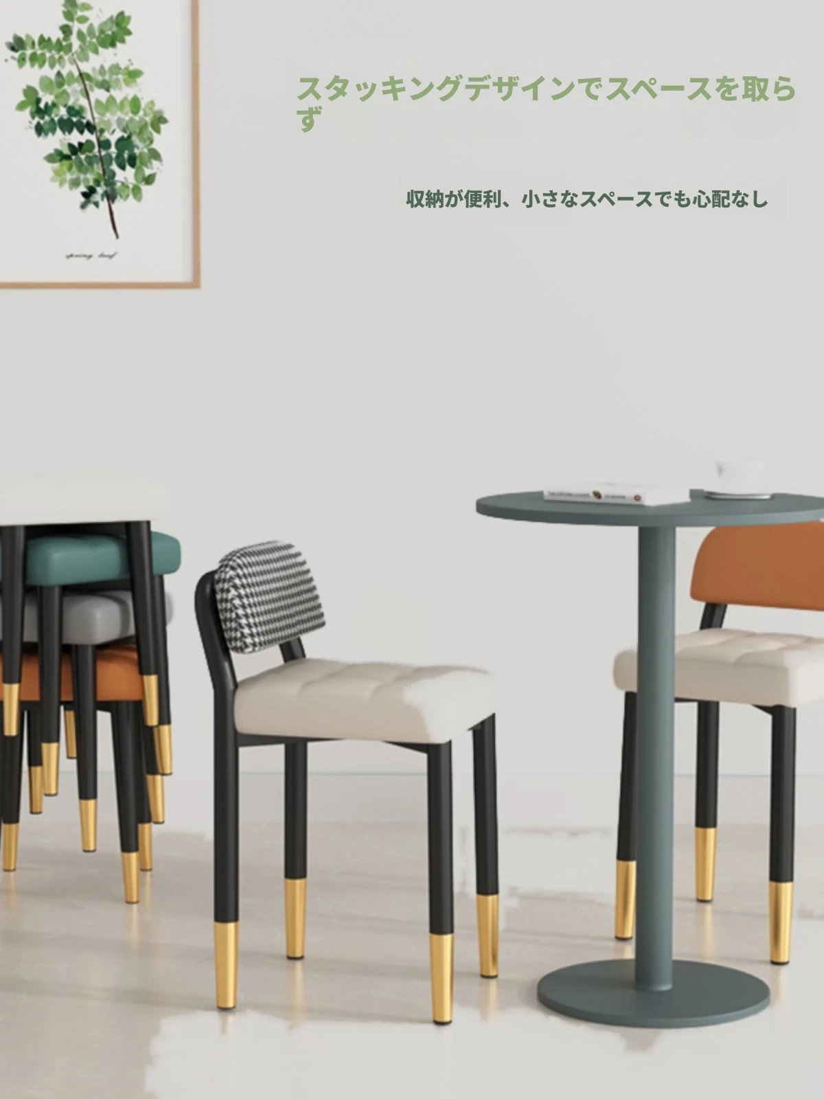 三夢ダイニングチェア - 北欧風の軽やかさを楽しむ背もたれ付き椅子!重ねて収納可能なシンプルなデザインで、化粧椅子やベンチとしても最適。おしゃれで機能的な空間を演出します。