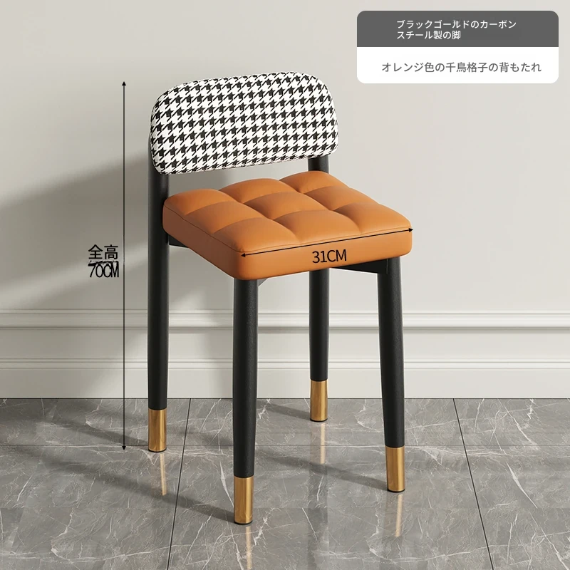 【背もたれタイプ】オレンジ テクニカルファブリック + 千鳥格子背もたれ