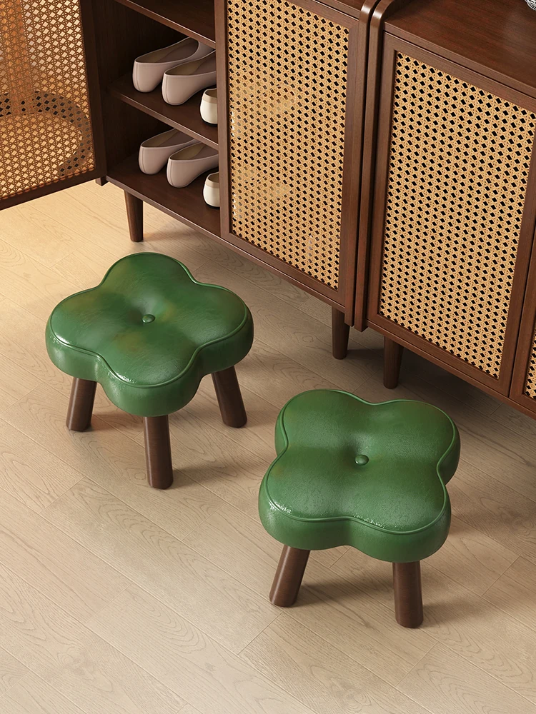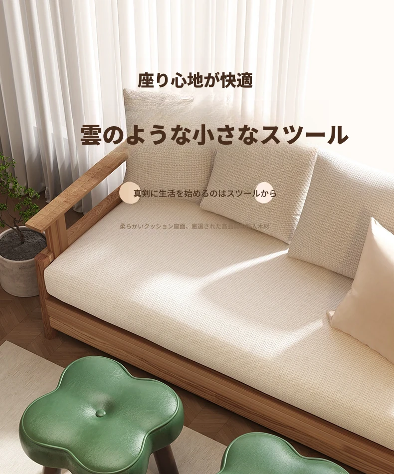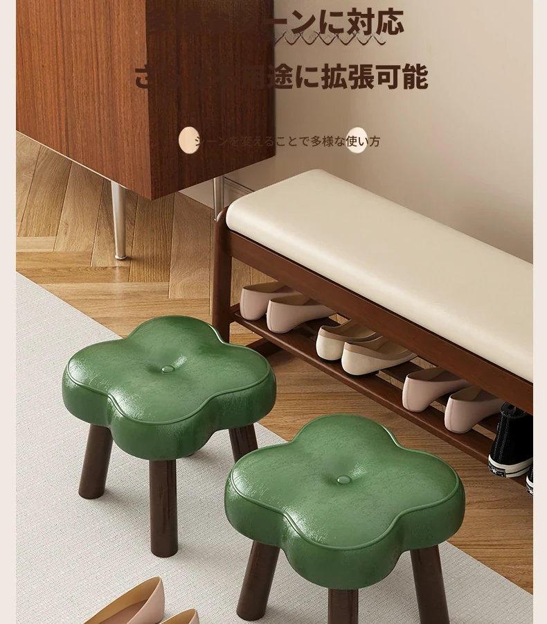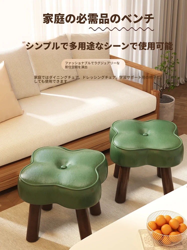 三夢のシンプルでおしゃれな無垢材スツール - 家庭用の靴を履くための低い椅子、リビングや玄関にぴったりのデザイン!快適な座り心地で、インテリアにもマッチする創造的な小スツール。
