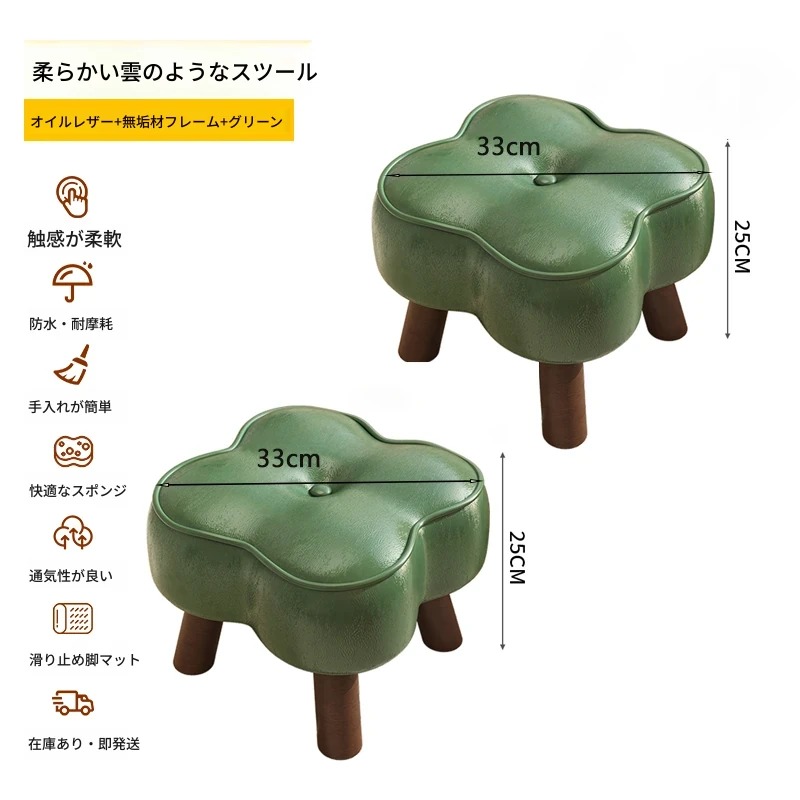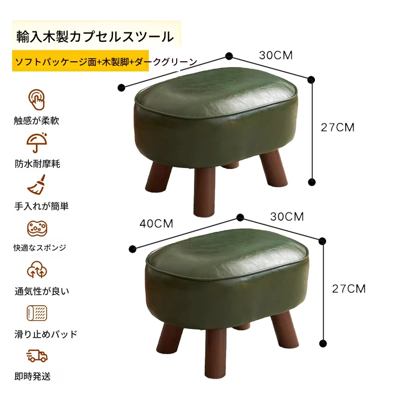 グリーンパンプススツール-大サイズ【オイルワックスレザー】-フルセット発送【2個セット】