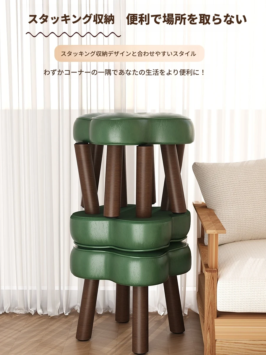 グリーンパンプススツール-大サイズ【オイルワックスレザー】-フルセット発送