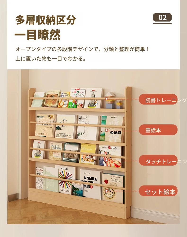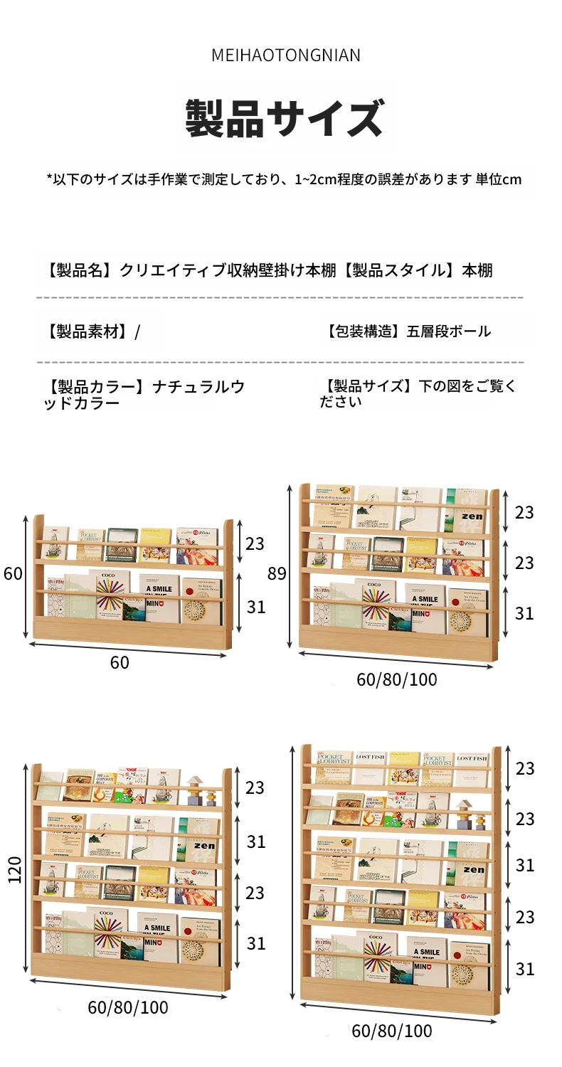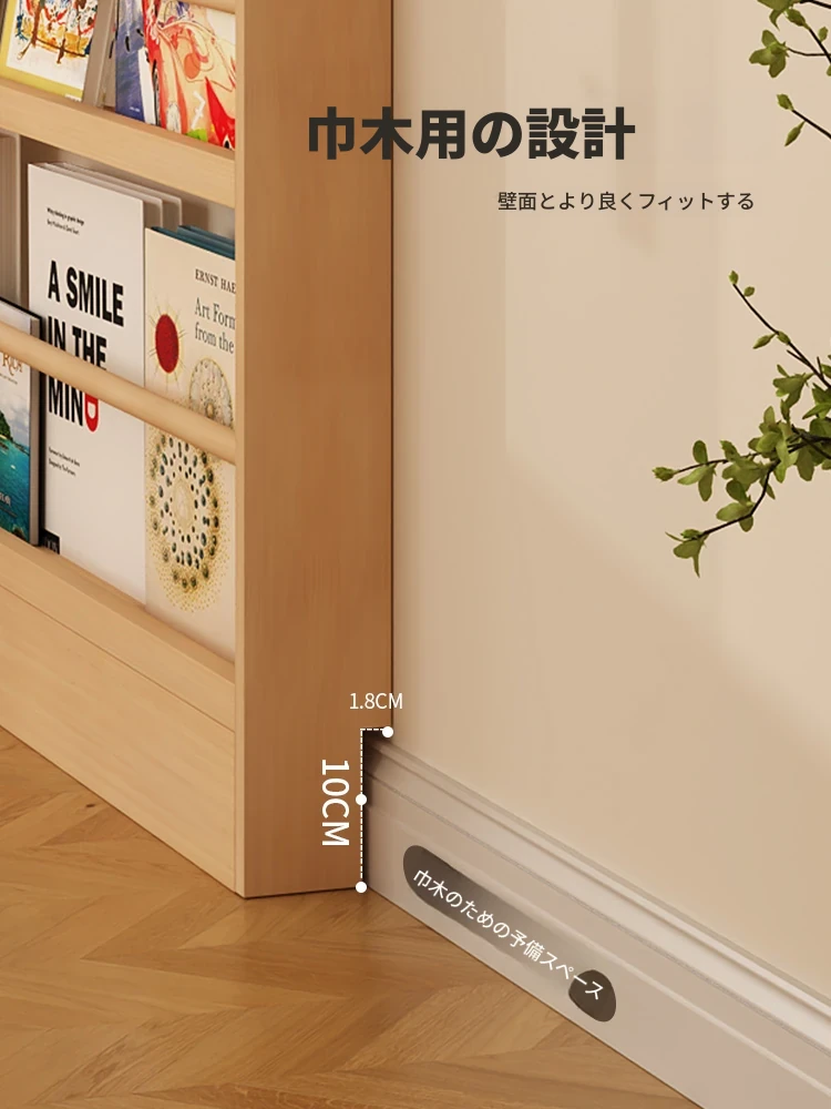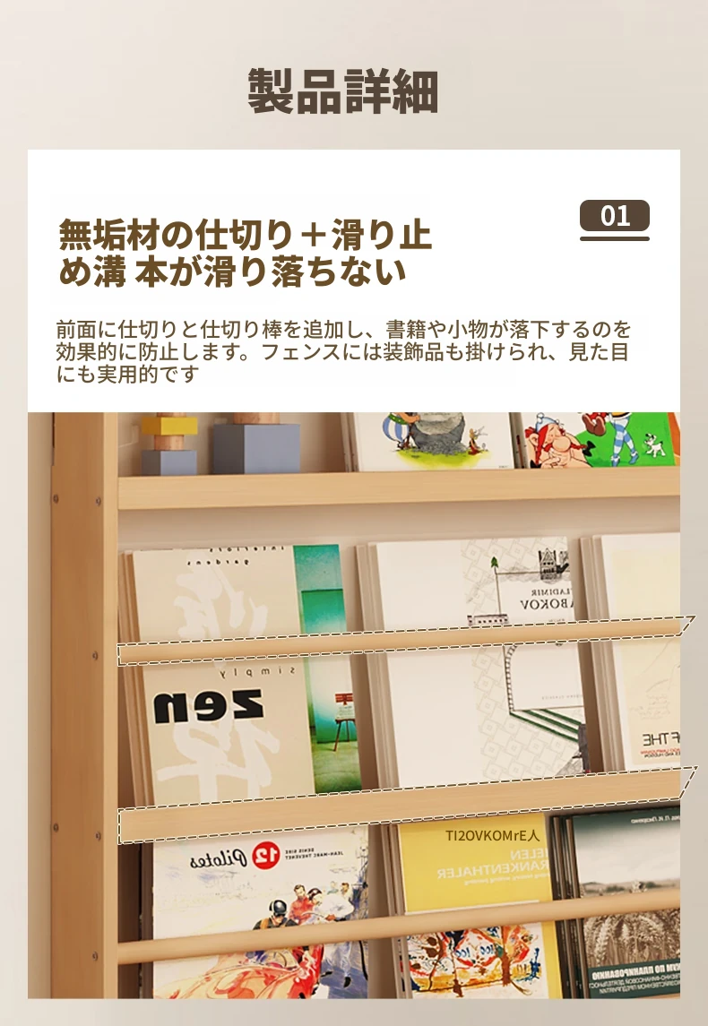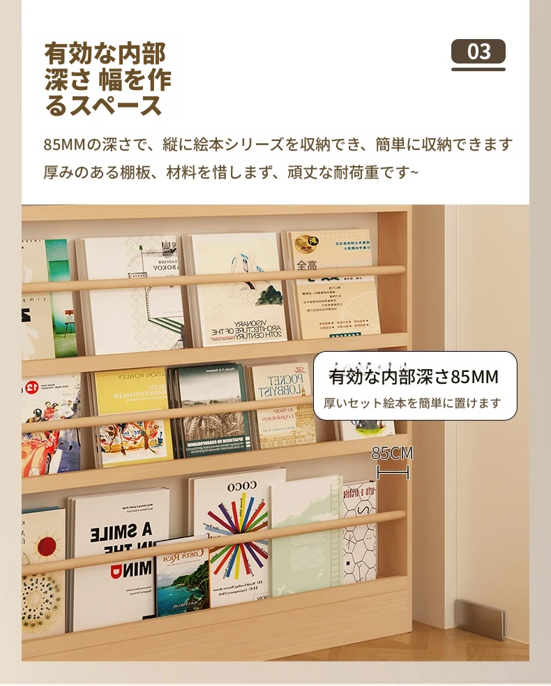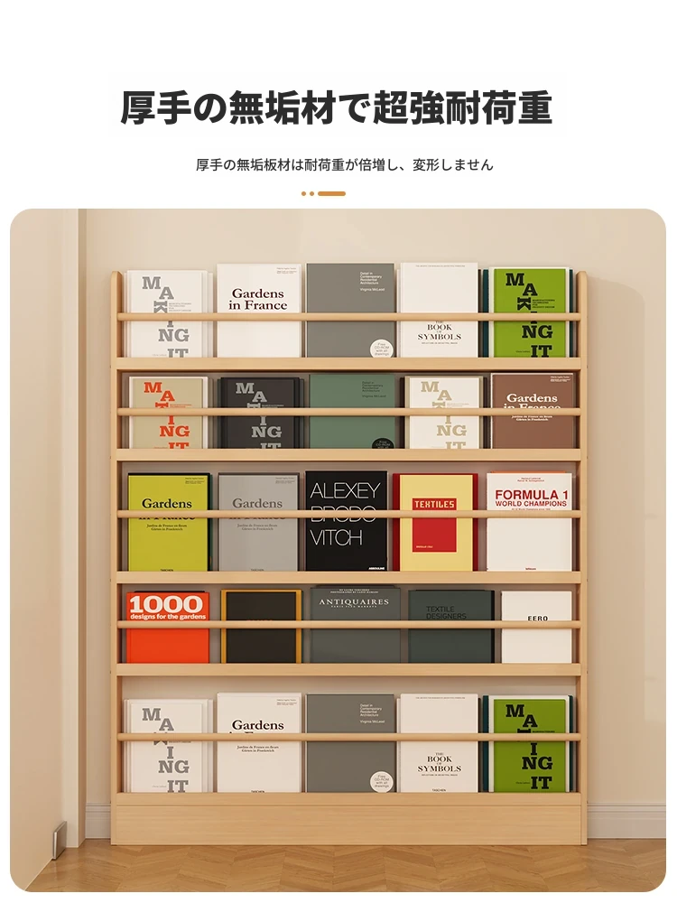 壁掛け型子供用書棚 - 超薄・超狭設計の無垢材製マガジン&絵本ラック!スペースを有効活用し、お部屋をスッキリ整理。おしゃれで機能的な収納で、お子様の本を素敵にディスプレイします。