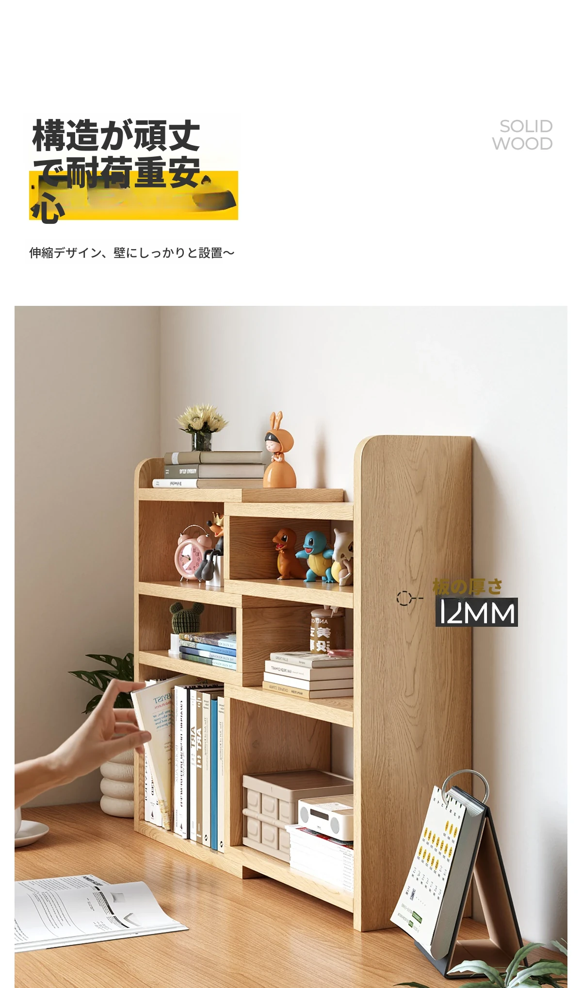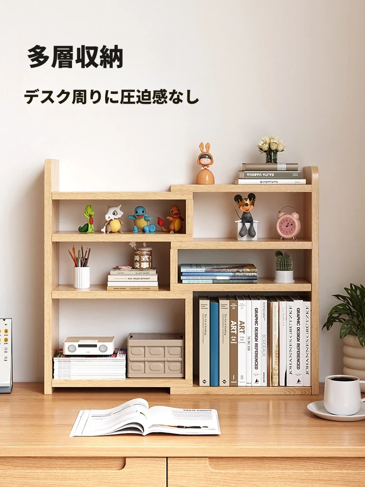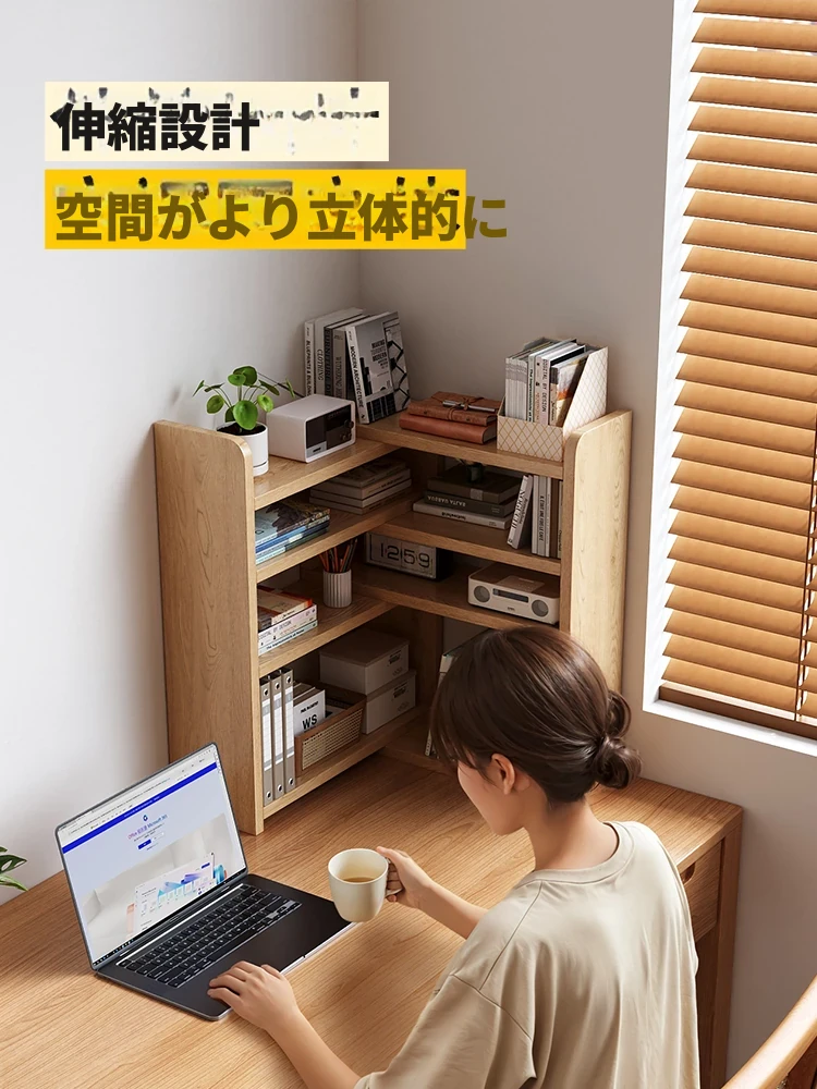 天然木製のデスク上収納ラック|子供用伸縮デスク|シンプルなコーナーシェルフ|家庭やオフィスに最適な小型本棚|おしゃれで機能的なスペースを実現!