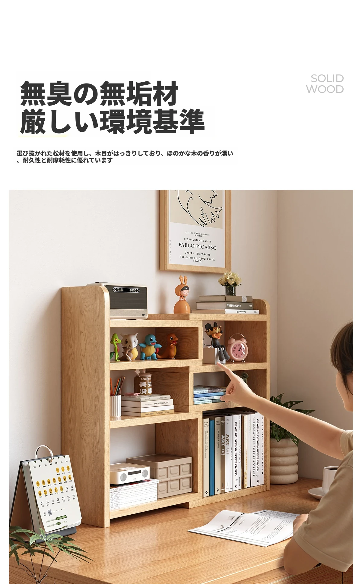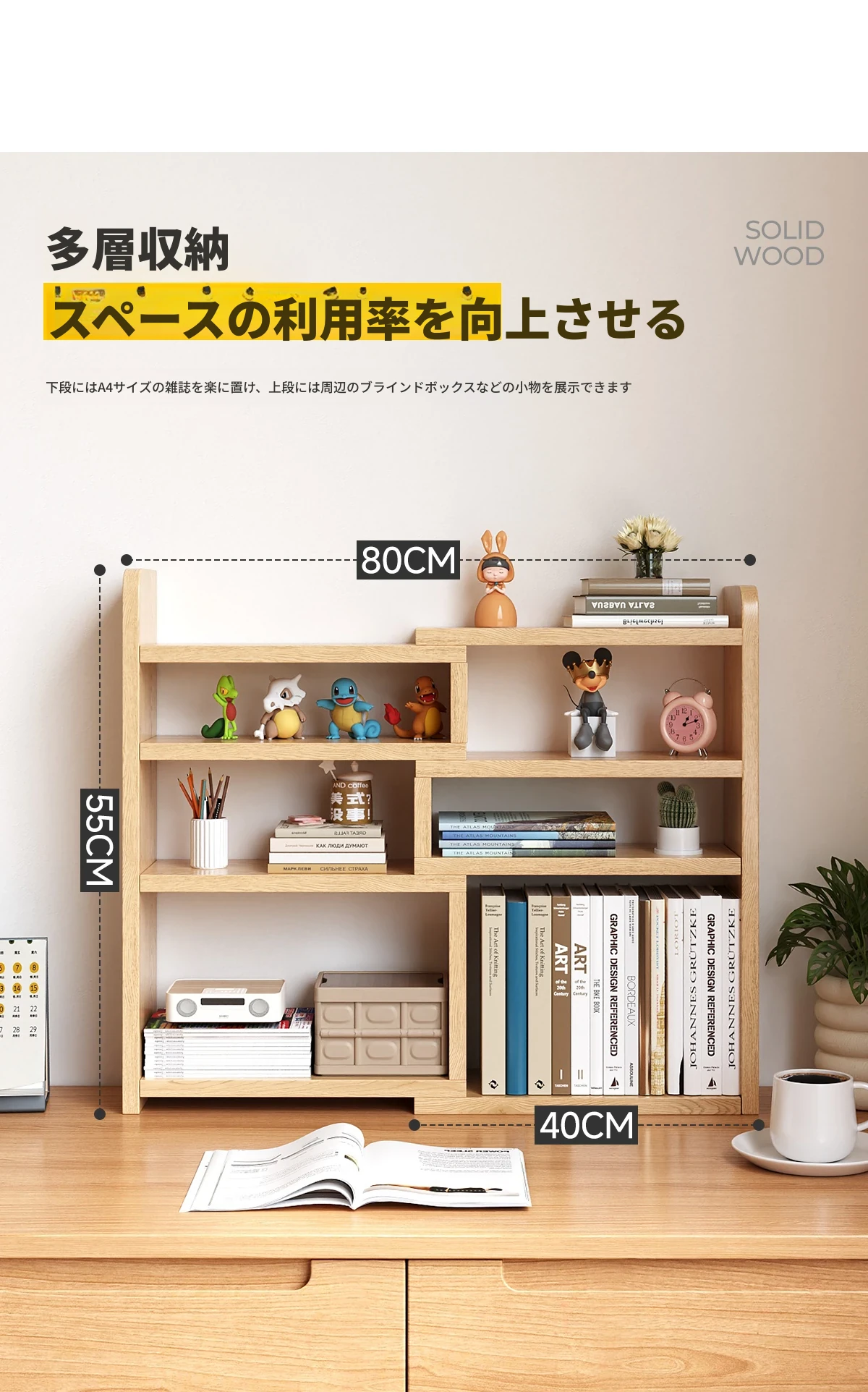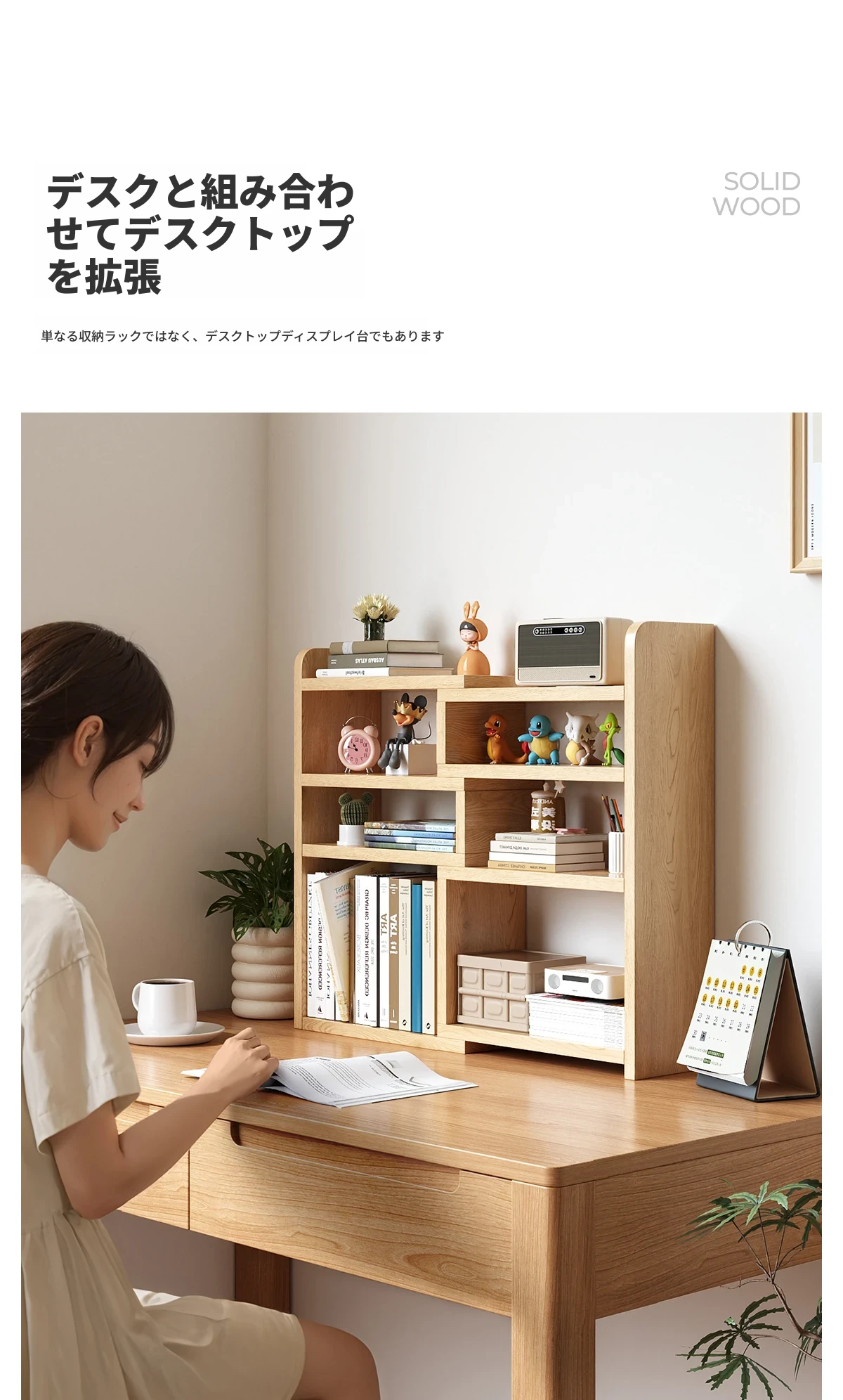 天然木製のデスク上収納ラック|子供用伸縮デスク|シンプルなコーナーシェルフ|家庭やオフィスに最適な小型本棚|おしゃれで機能的なスペースを実現!