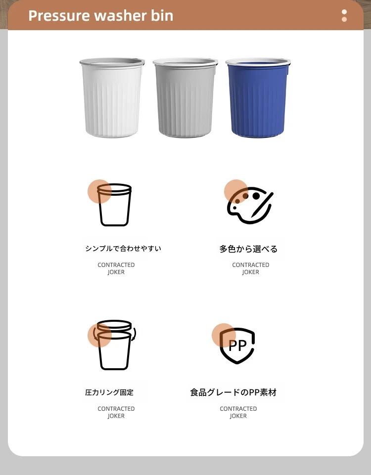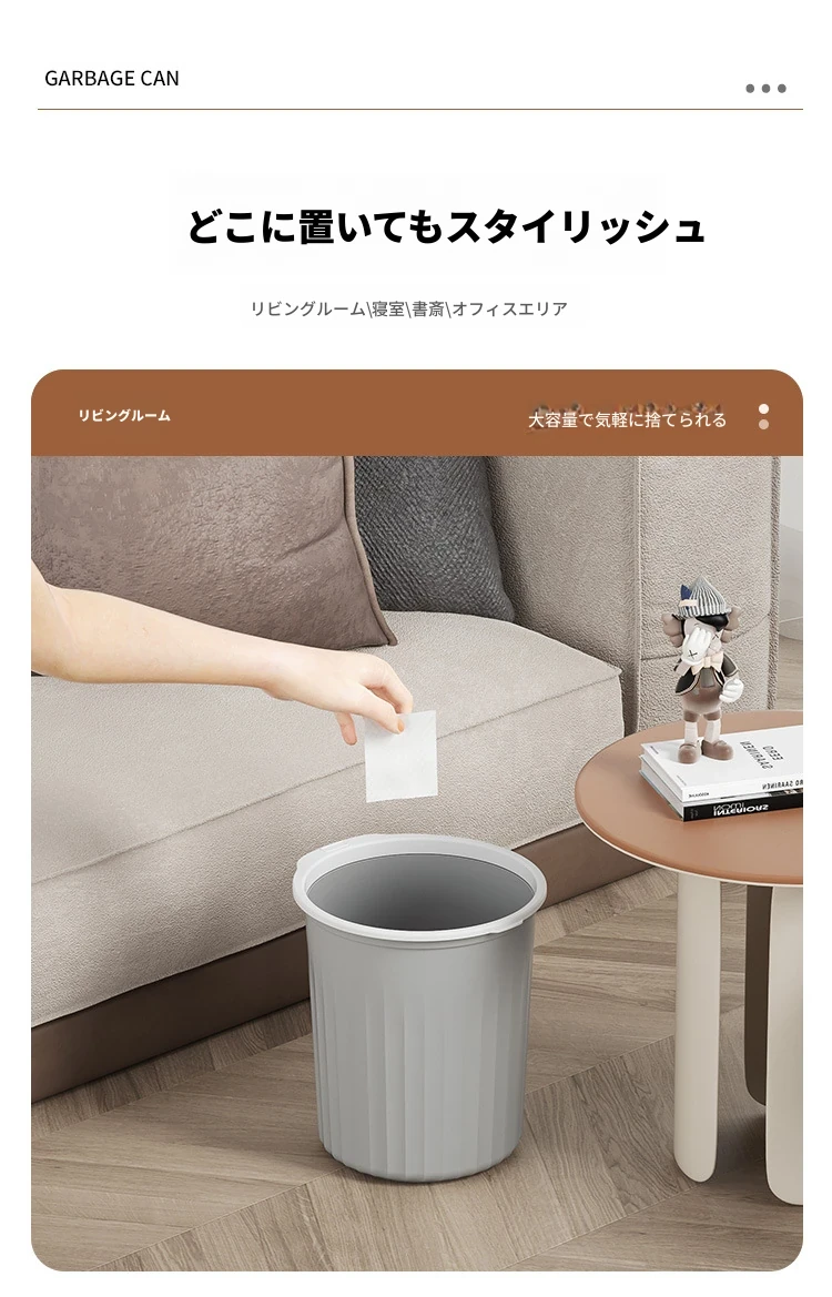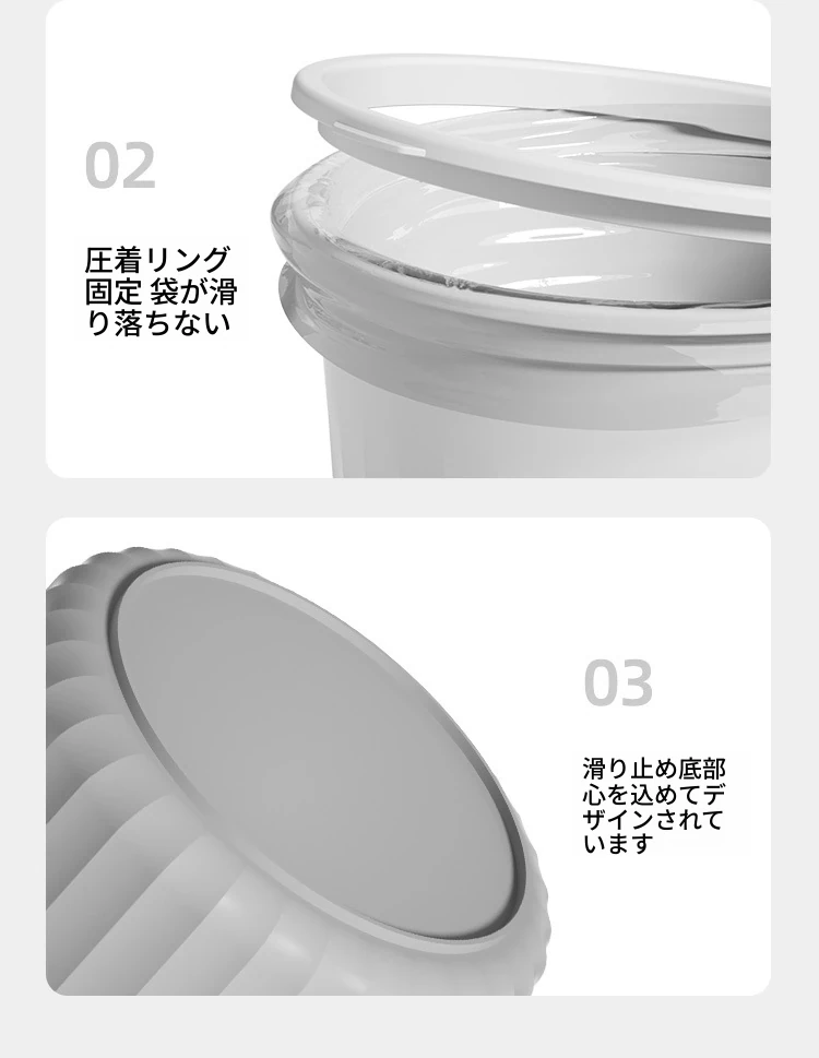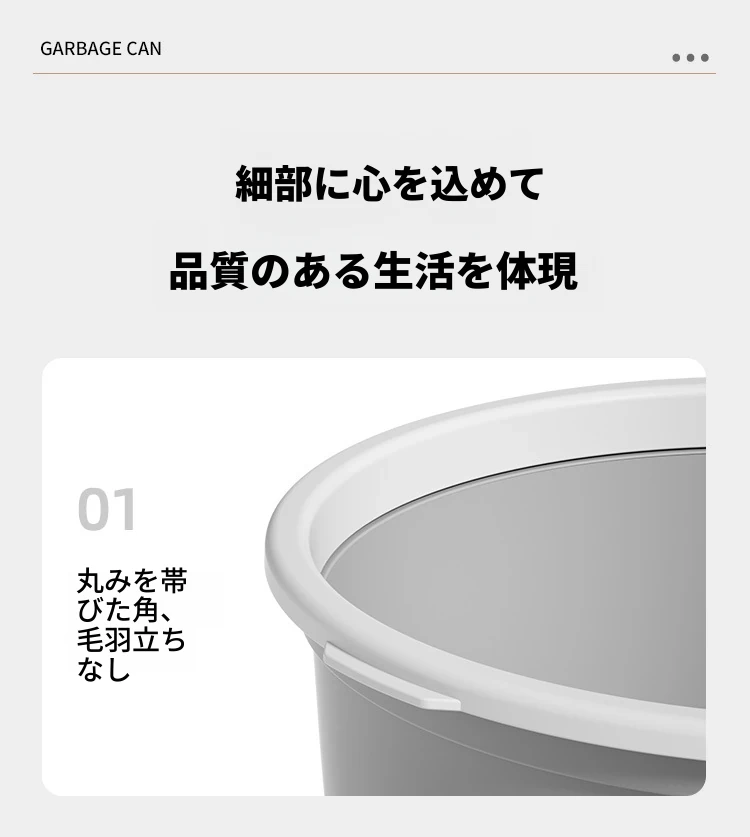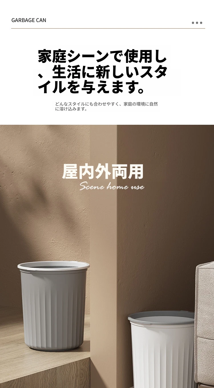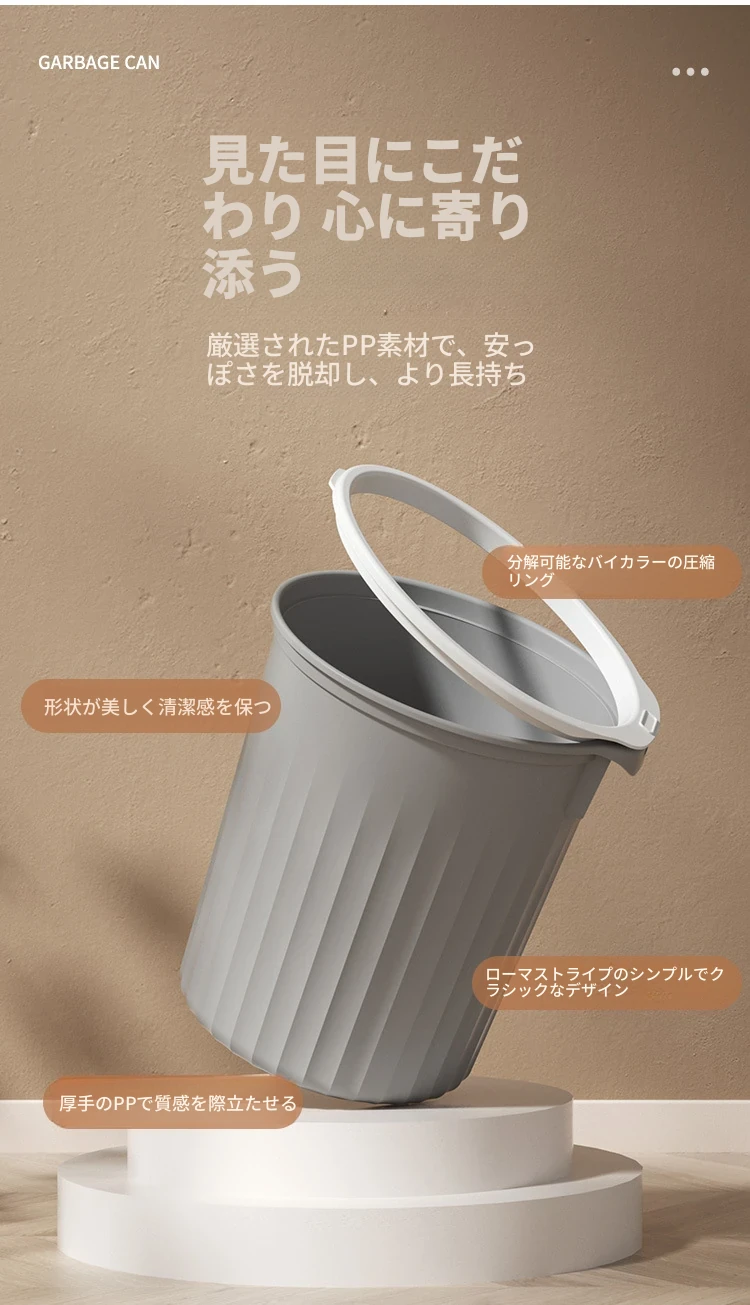 高品質なデザインの家庭用キッチンゴミ箱!シンプルでスタイリッシュなプラスチック製のゴミ箱はリビング、トイレ、バスルームにも最適。圧縮リング付きでゴミの処理も簡単!おしゃれで機能的な生活空間を実現します。