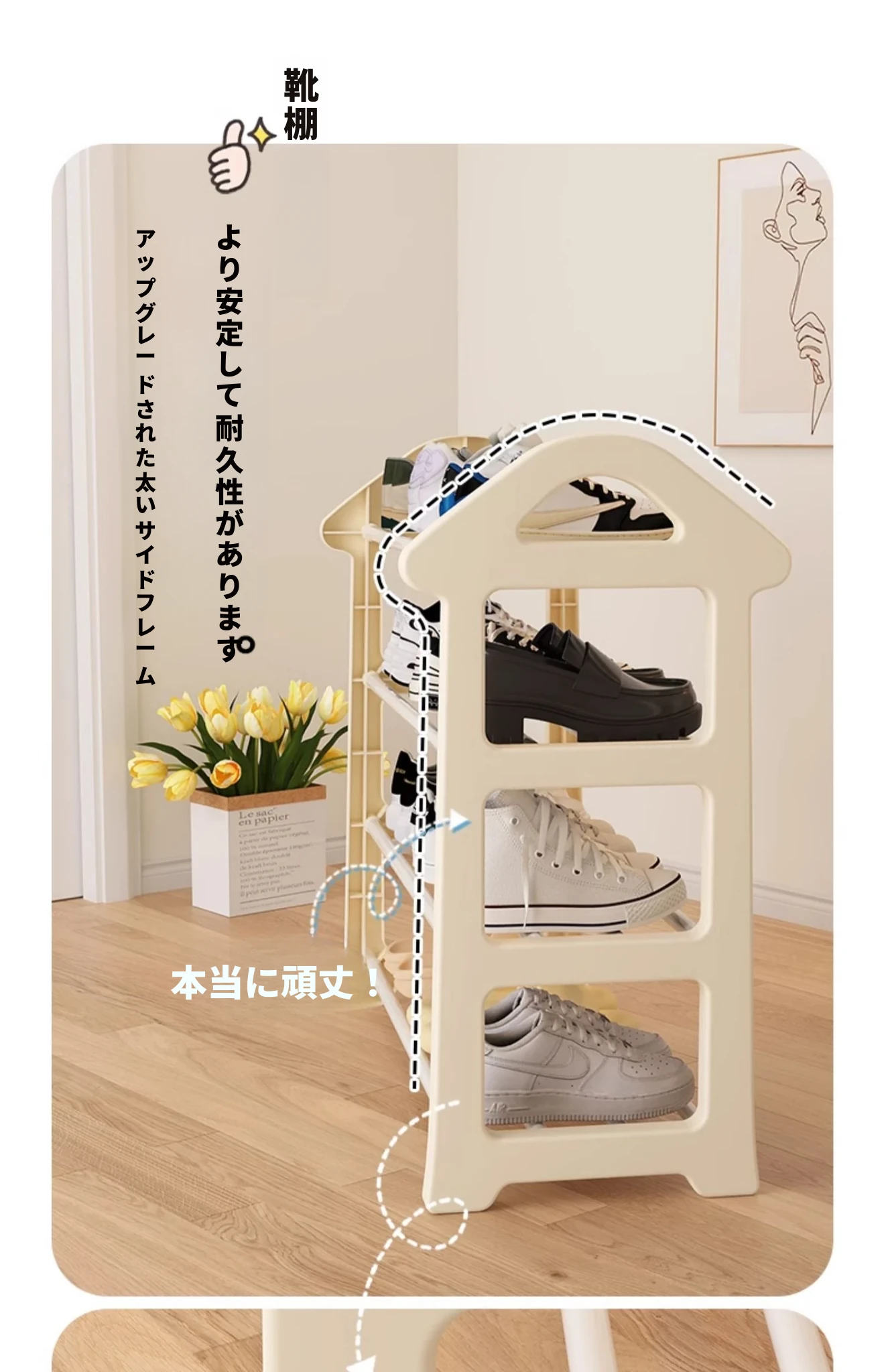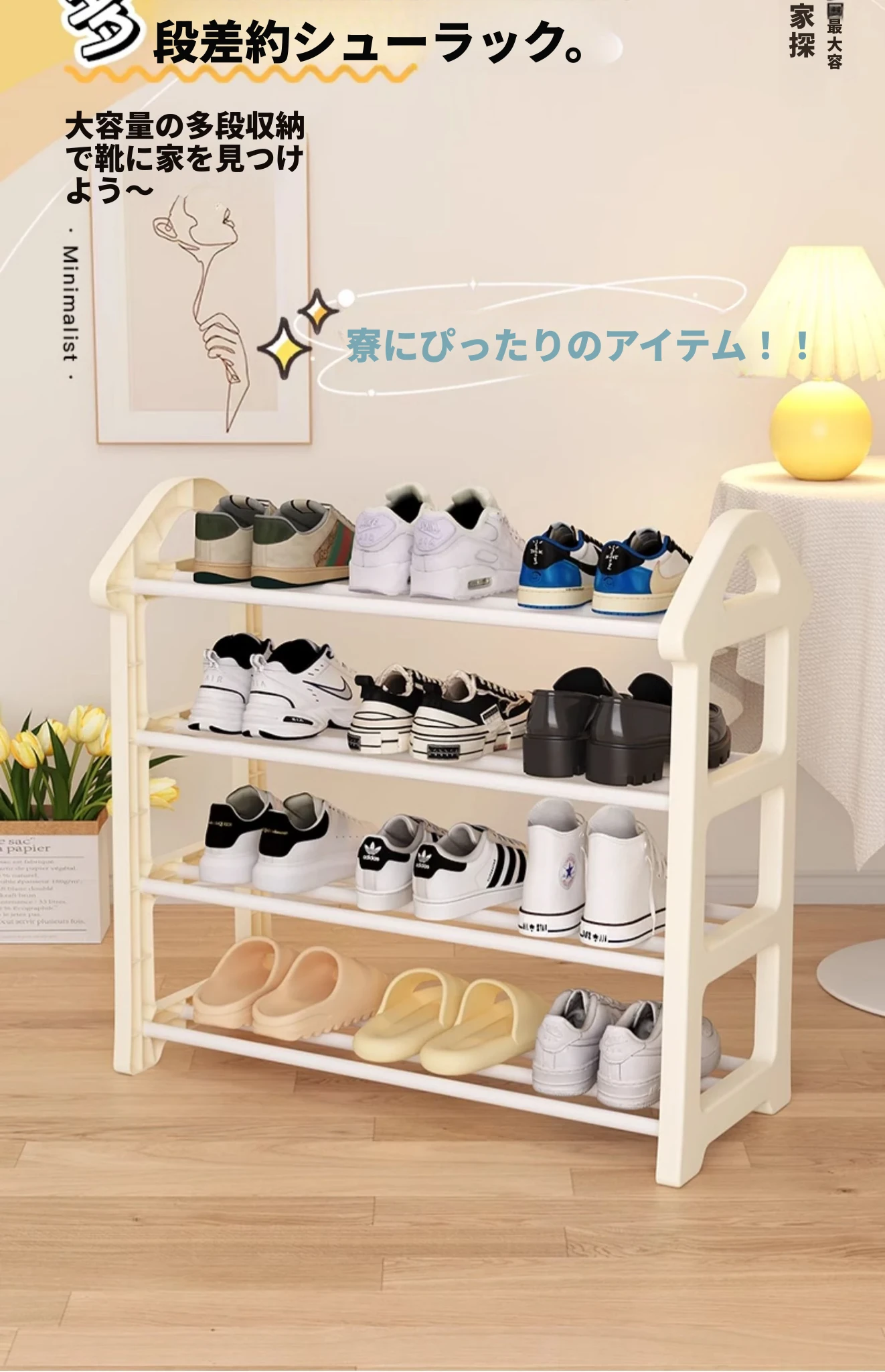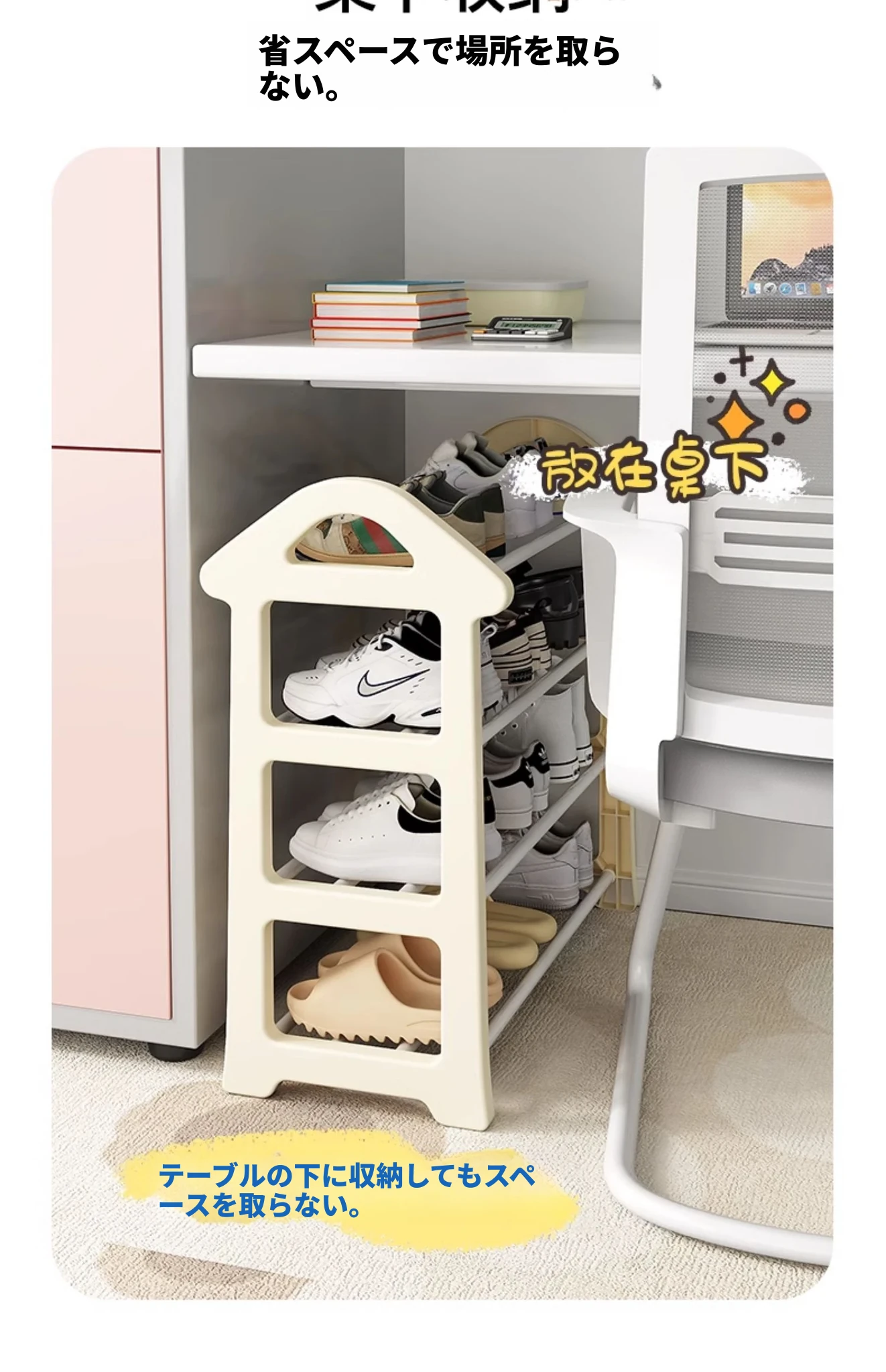 三夢大学生用靴子ラック - 寮やデスク下に最適なスタイリッシュな多段靴収納、スペース節約のシンプルデザイン!
