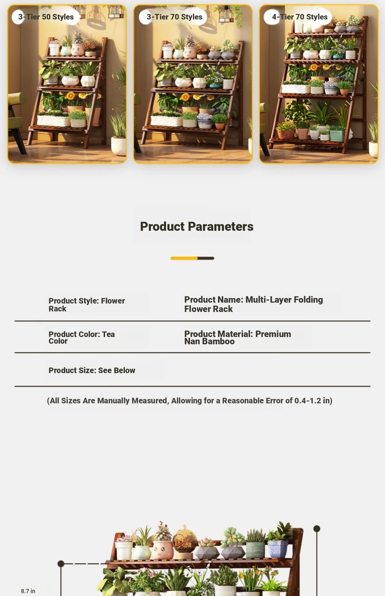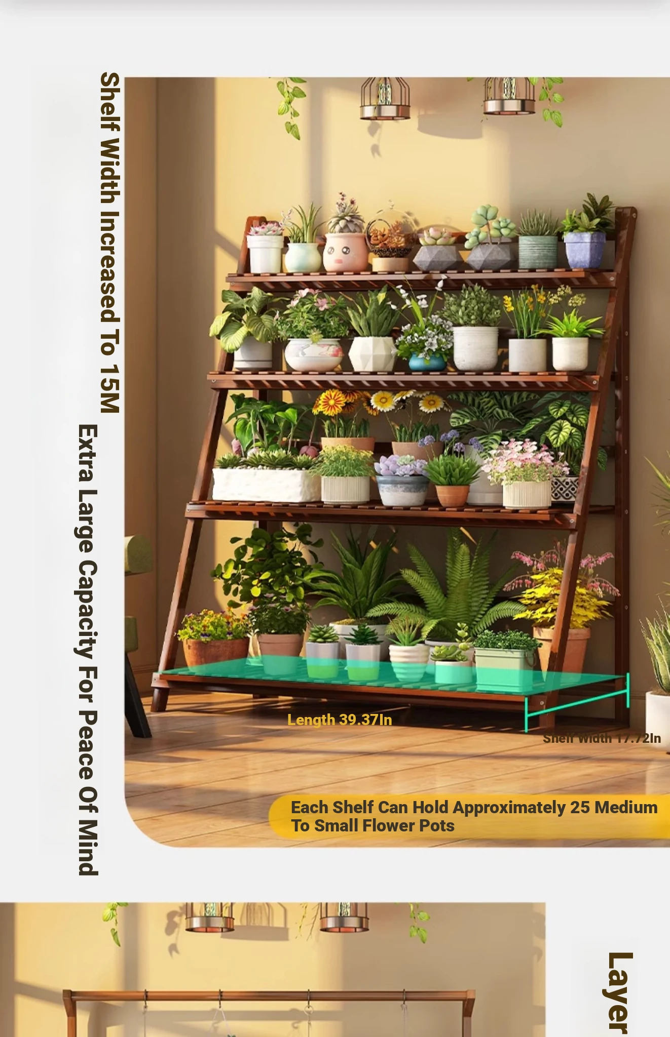 Three Dream Flower Rack - 2025 New Folding Floor Plant Stand, Multi-Layer Storage Shelf for Living Room and Balcony, Perfect for Displaying Your Favorite Plants and Decor!