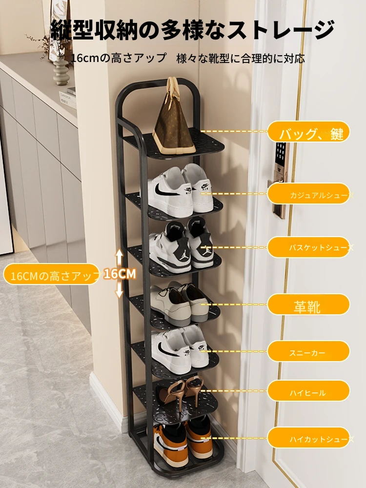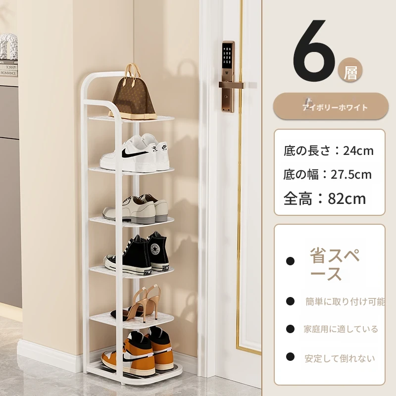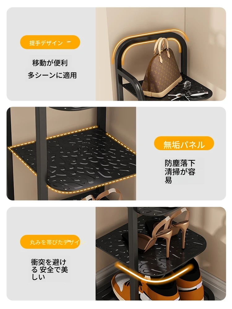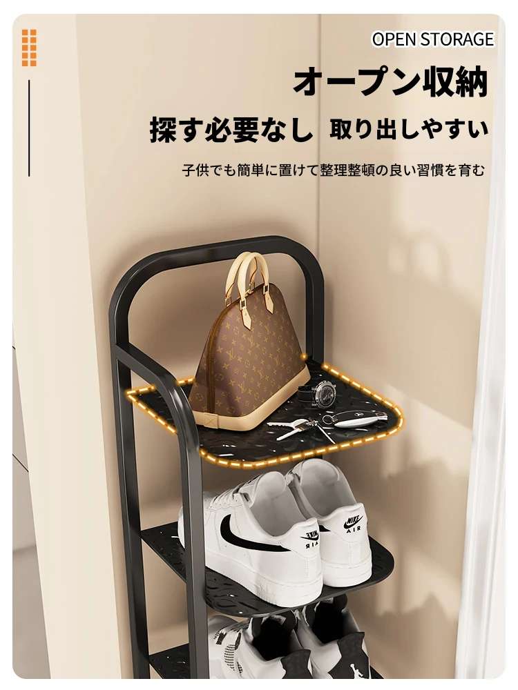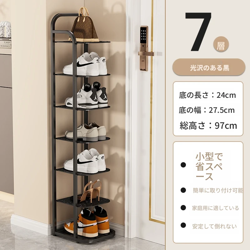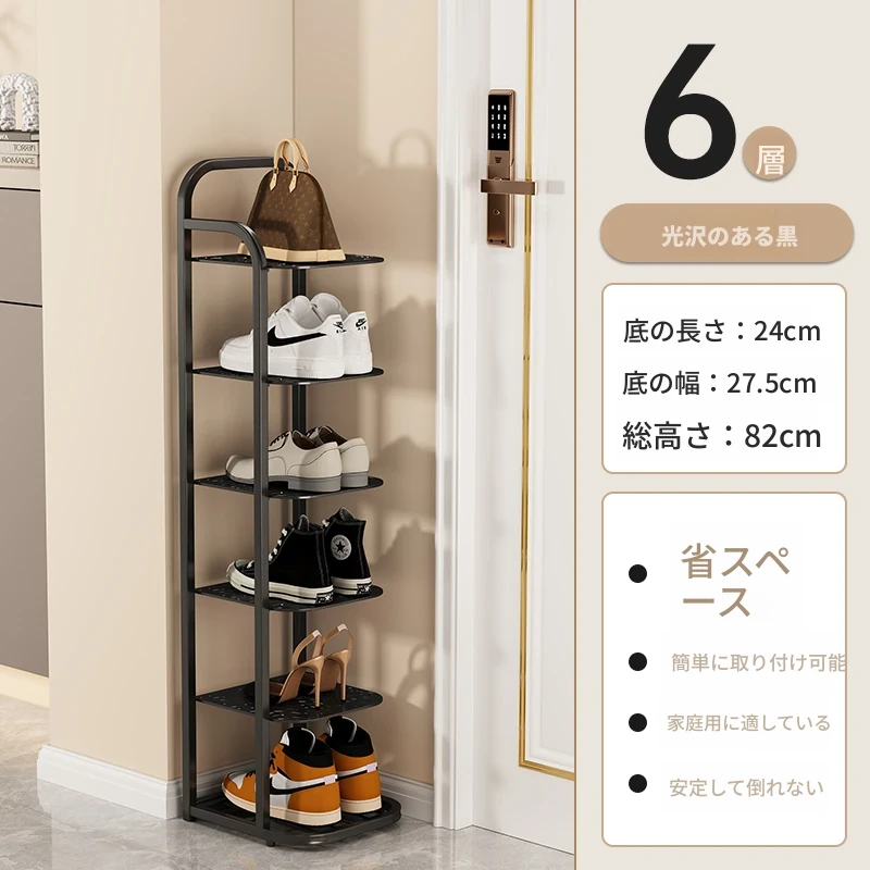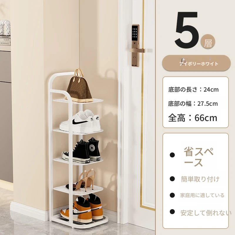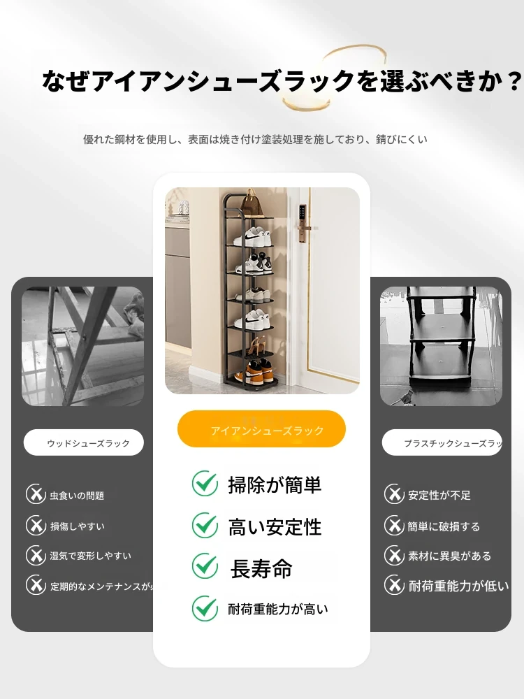 三夢アイアンシューズラック - おしゃれで省スペースの多層型スリムシューズ収納!玄関や室内にぴったりな小型シューズキャビネットで、スッキリとした空間を実現!