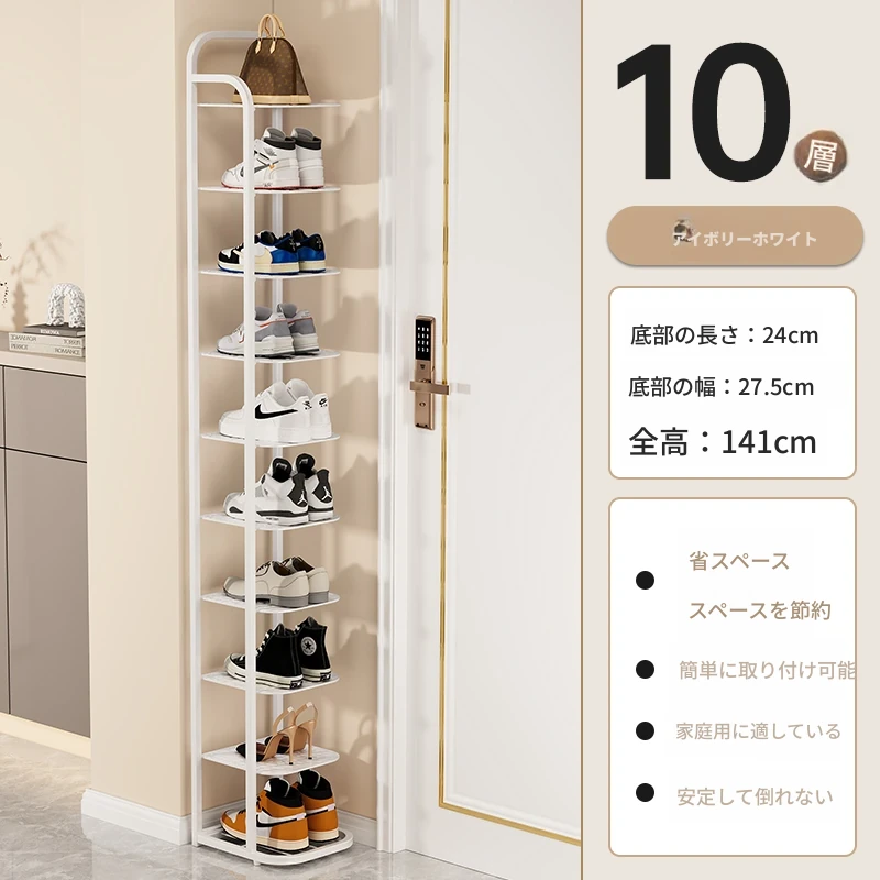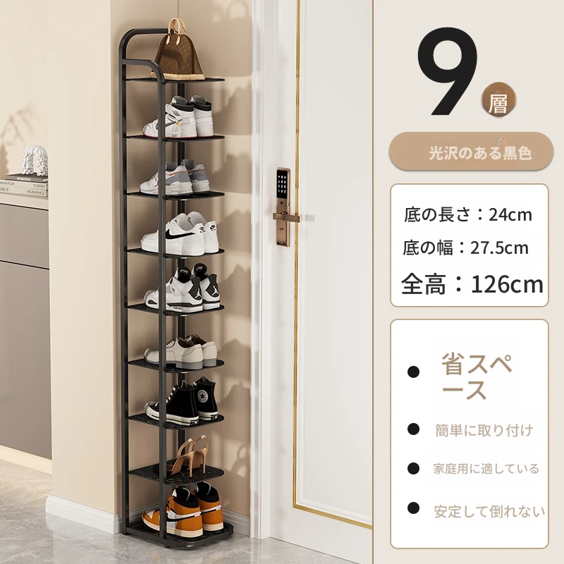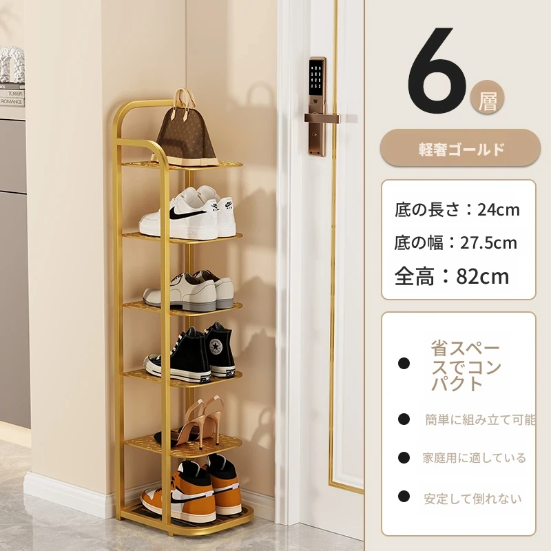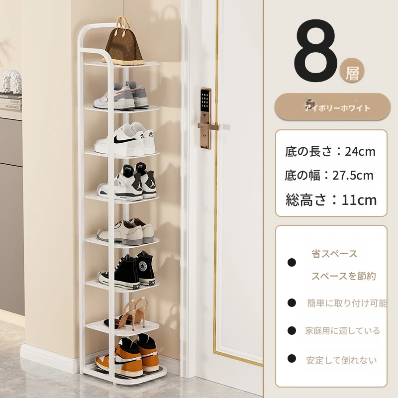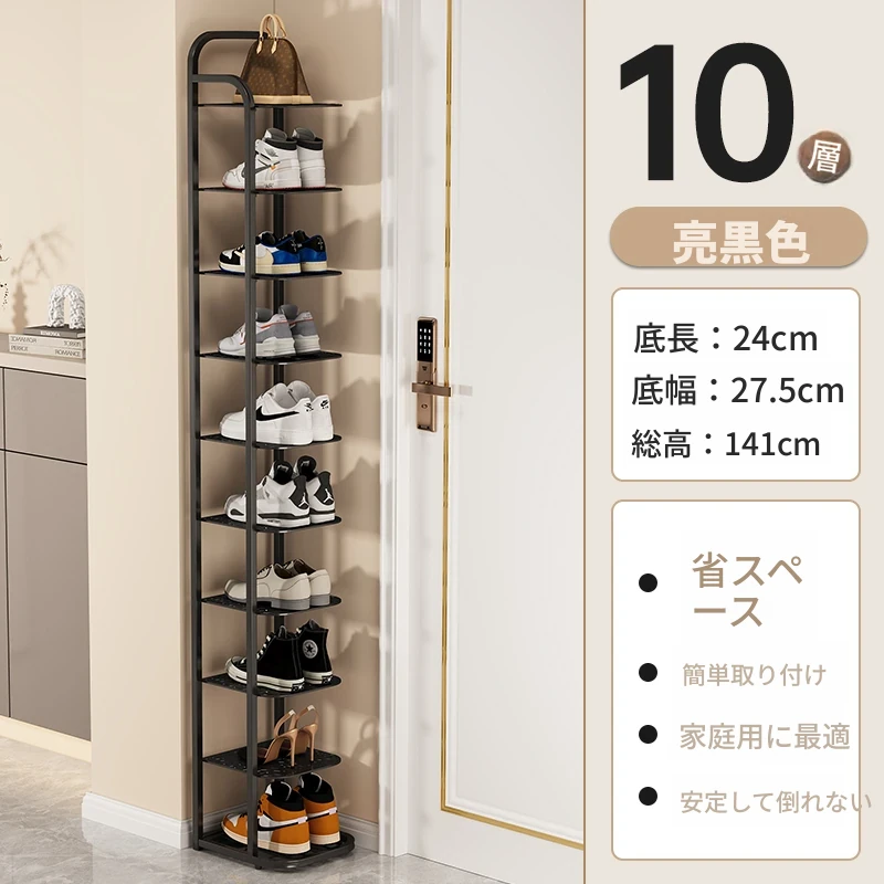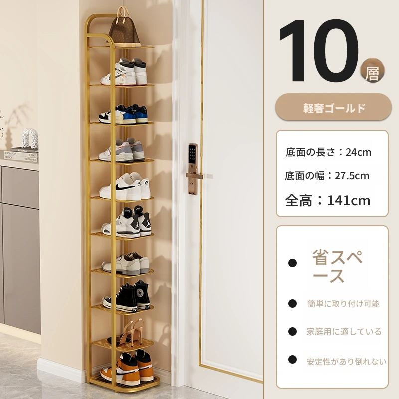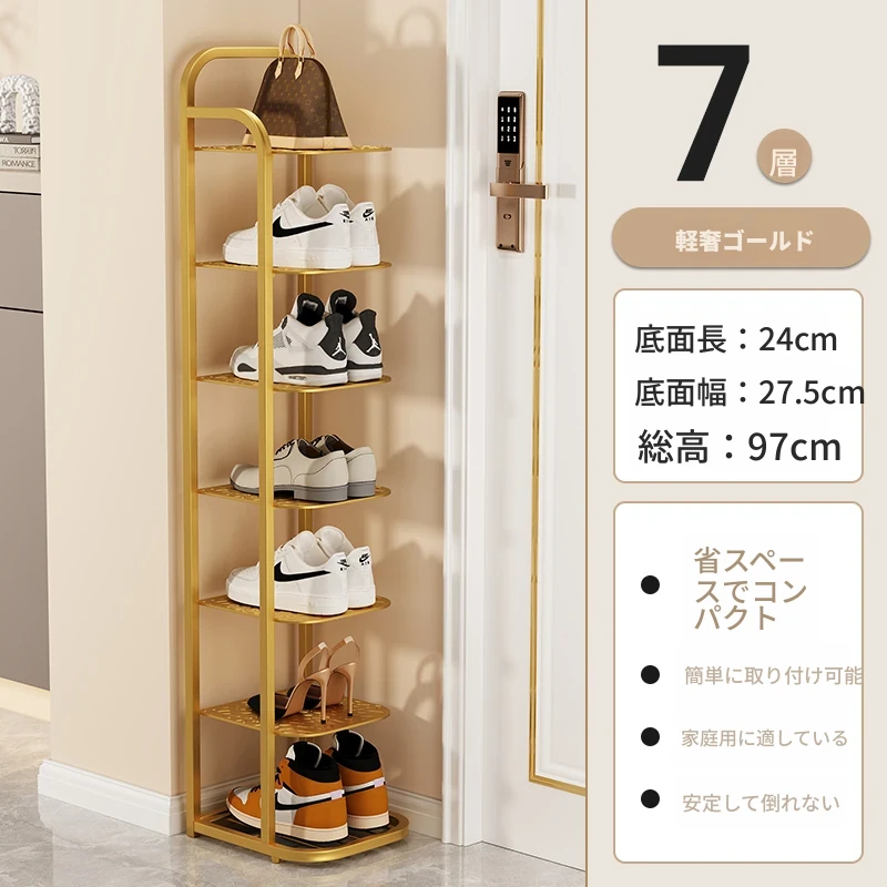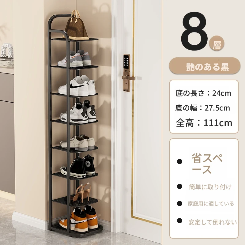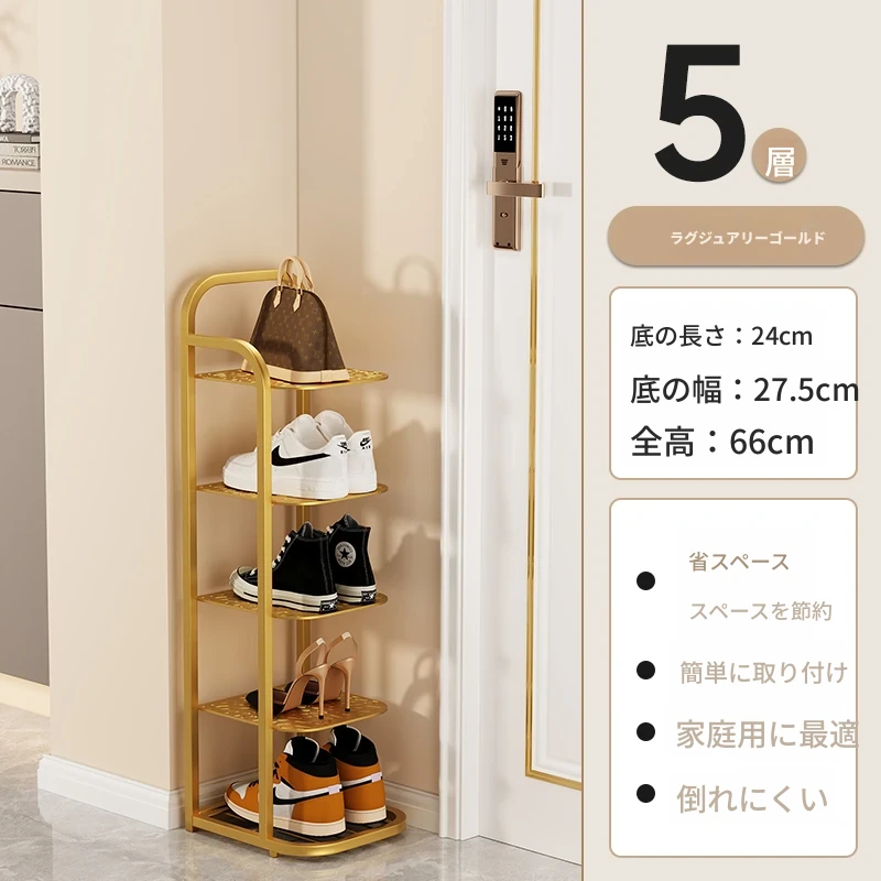 三夢アイアンシューズラック - おしゃれで省スペースの多層型スリムシューズ収納!玄関や室内にぴったりな小型シューズキャビネットで、スッキリとした空間を実現!