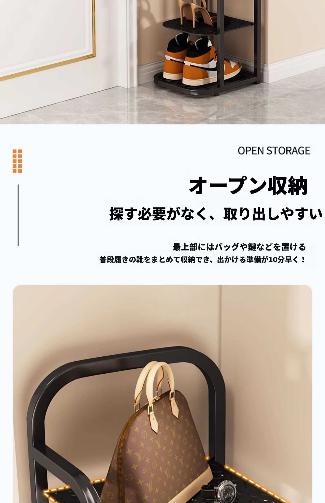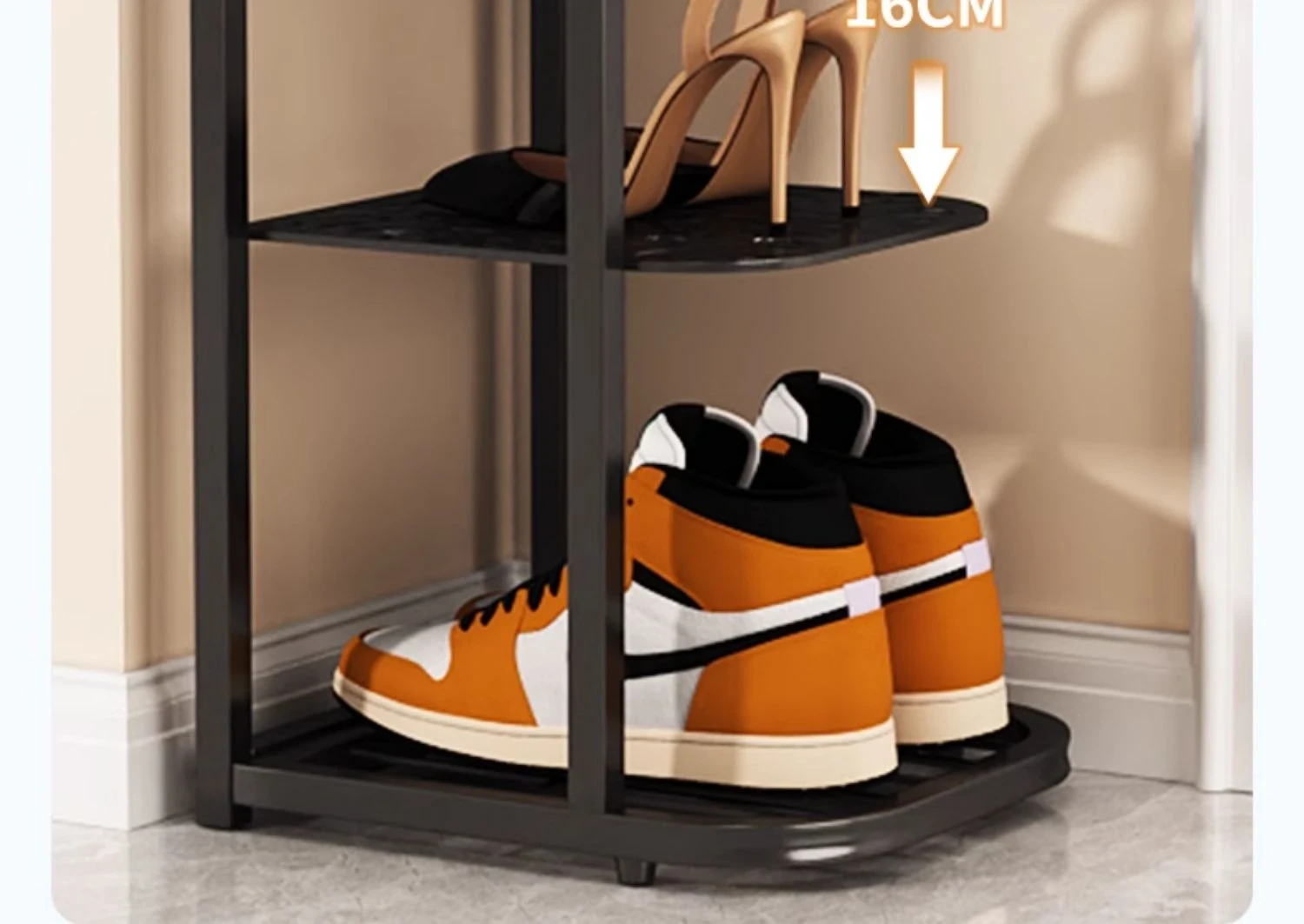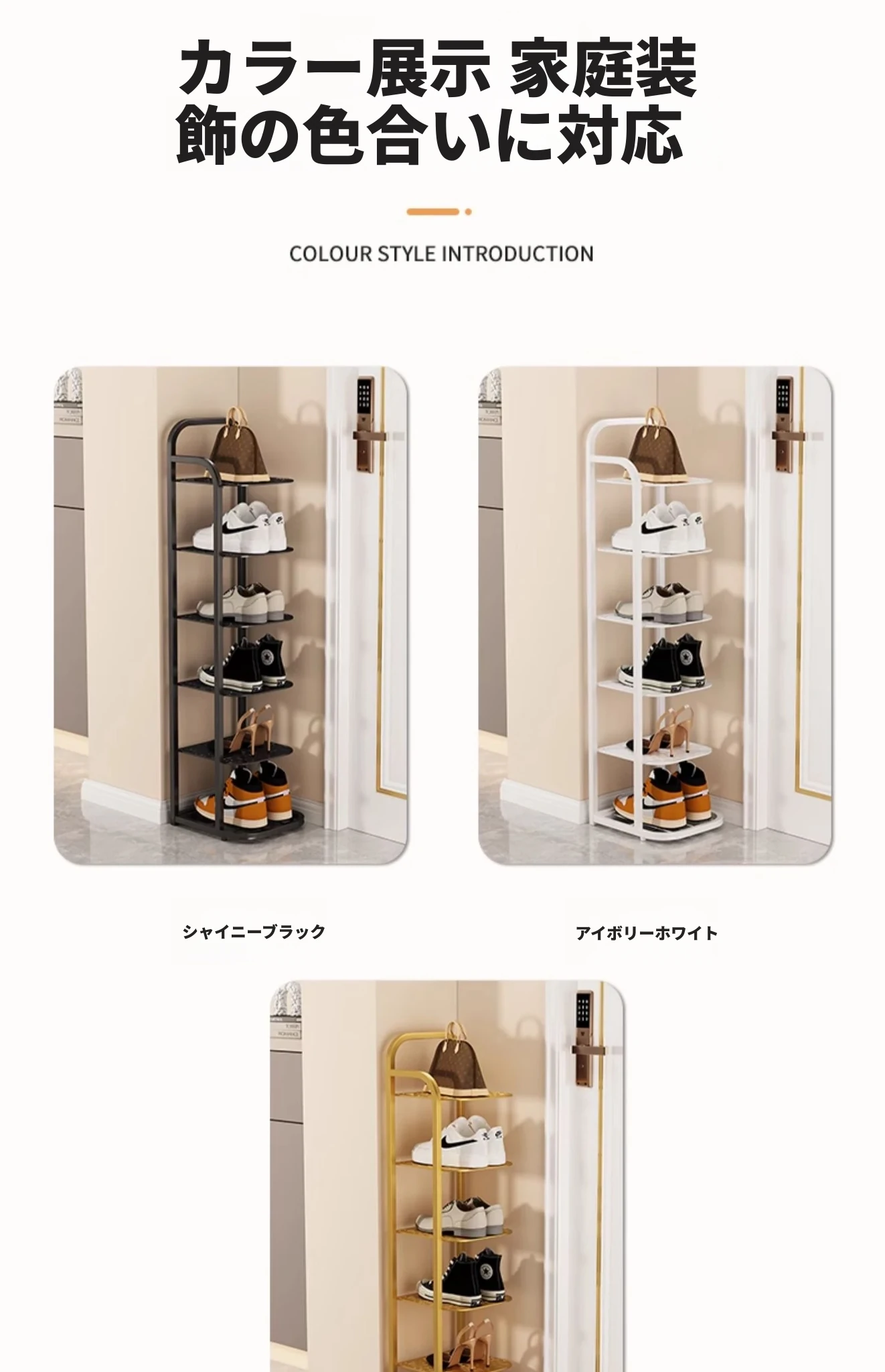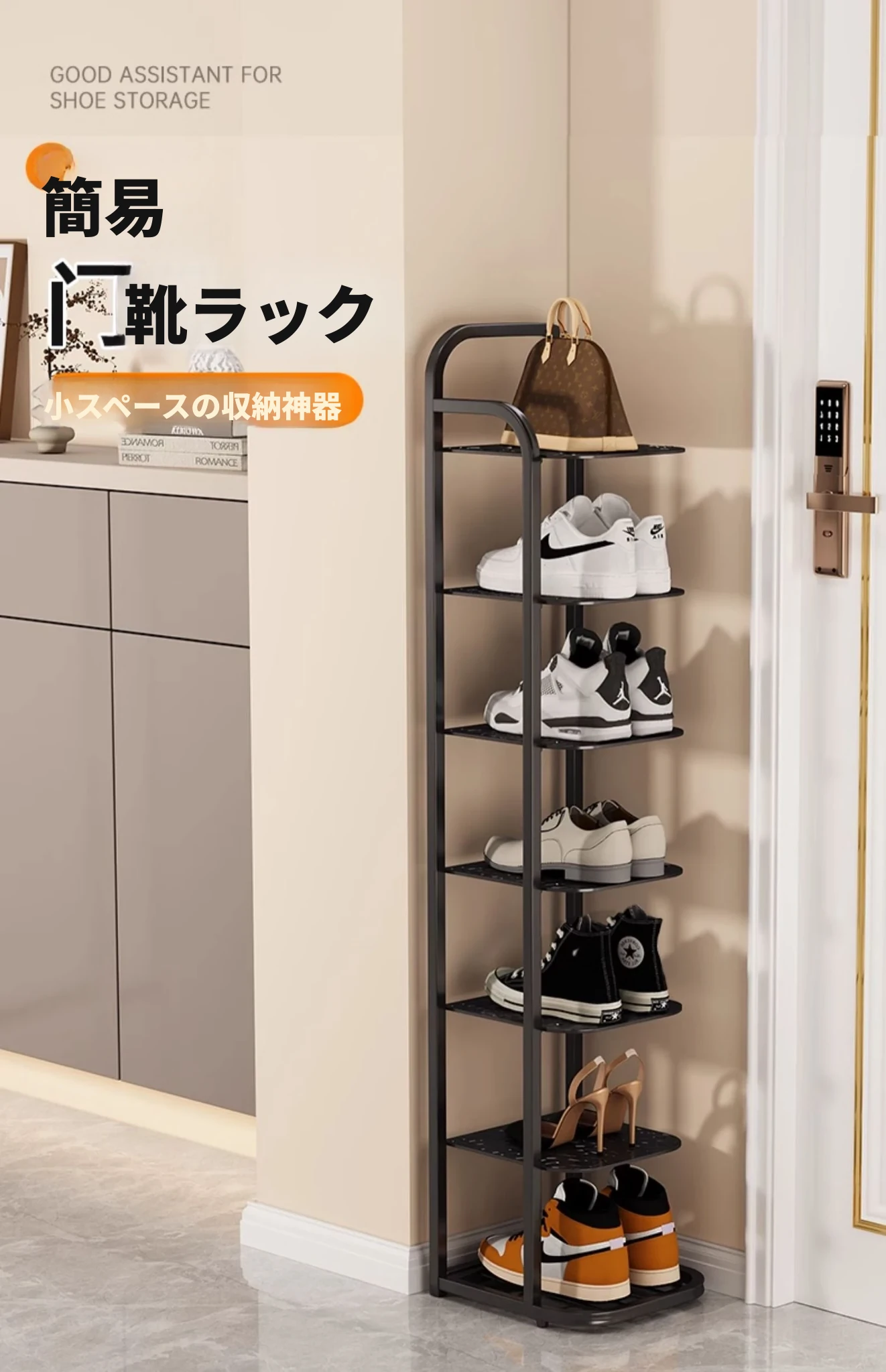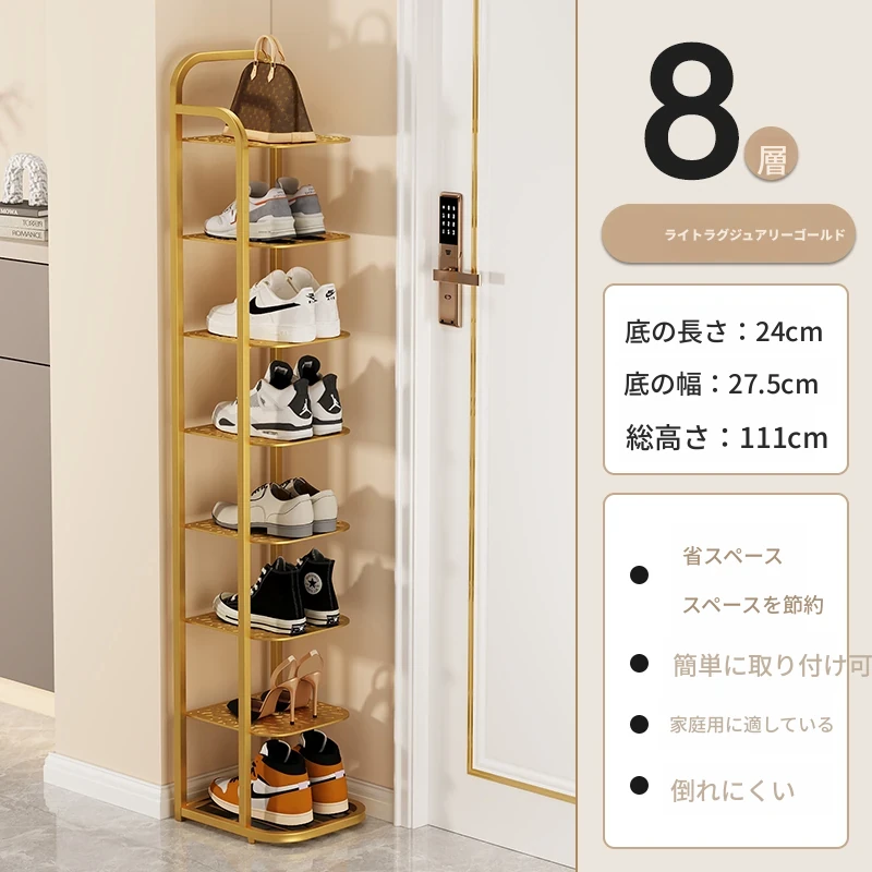 三夢アイアンシューズラック - おしゃれで省スペースの多層型スリムシューズ収納!玄関や室内にぴったりな小型シューズキャビネットで、スッキリとした空間を実現!