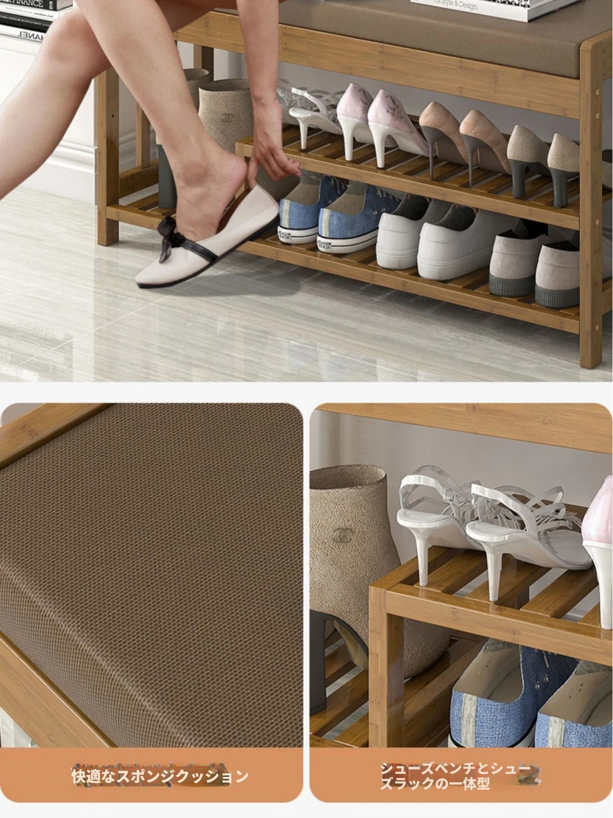 三夢の靴交換ベンチ|玄関に最適なスツール一体型シューズキャビネット|座って靴を履ける便利なシューズラック|快適な長椅子で、毎日の靴の履き替えが楽々!