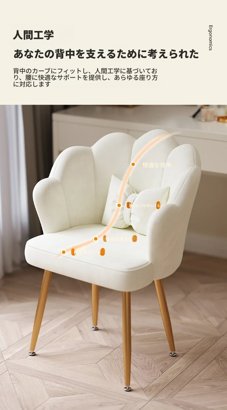 2024年新作!おしゃれな化粧椅子・女性用寝室にぴったりの高級感あふれる美甲椅子。背もたれ付きで快適な座り心地、メイクアップやコスメタイムを一層楽しく!