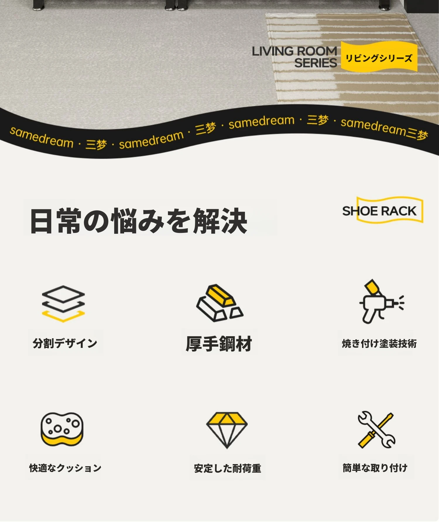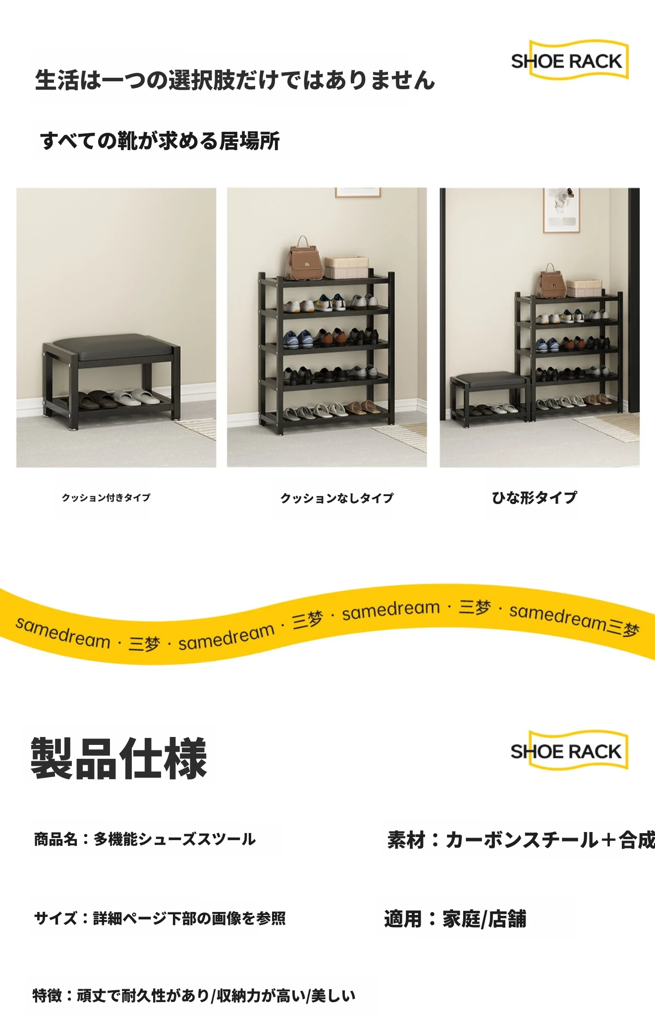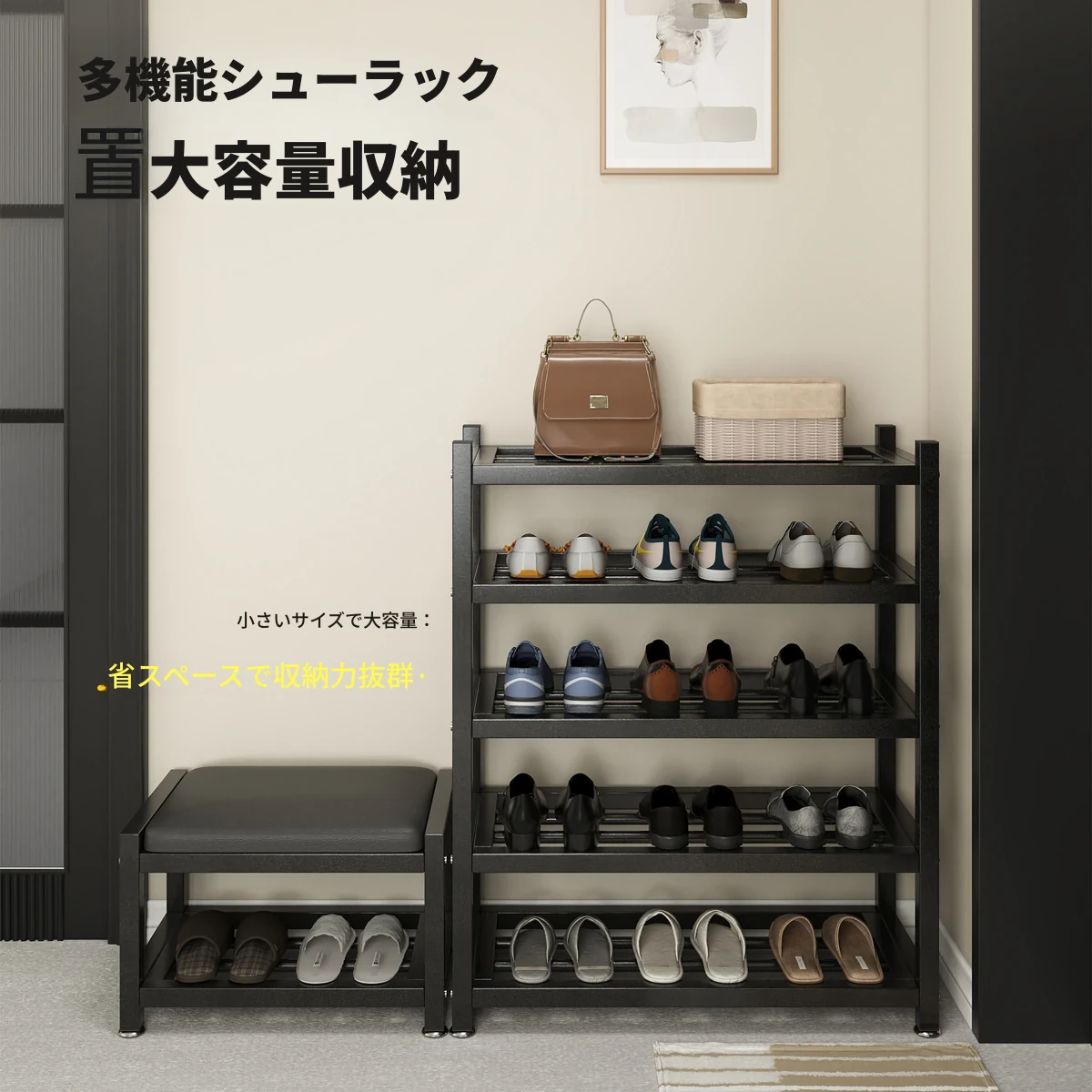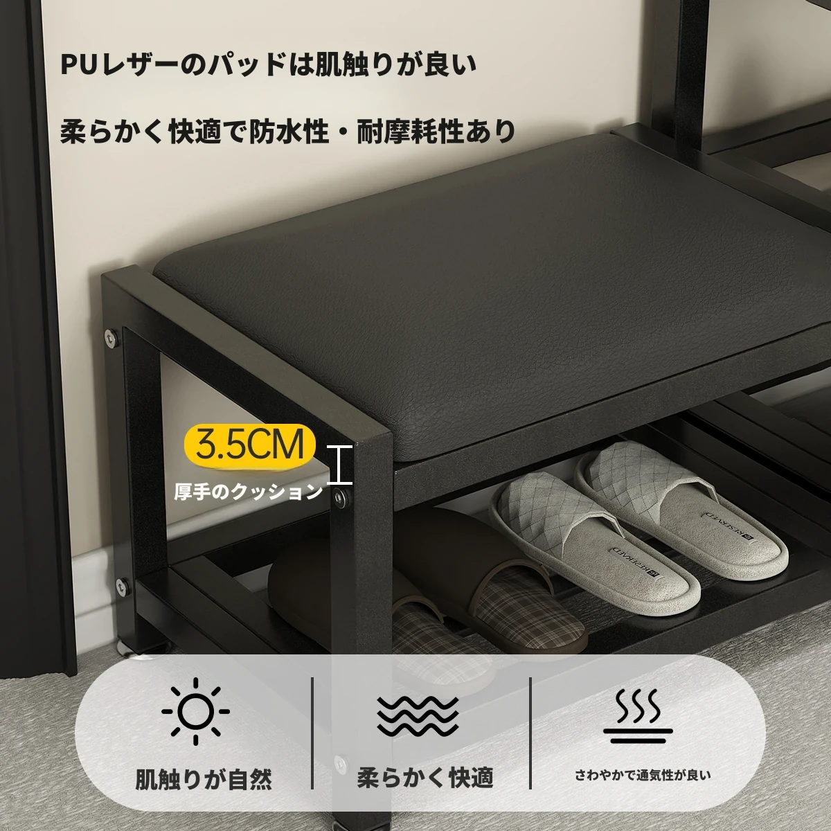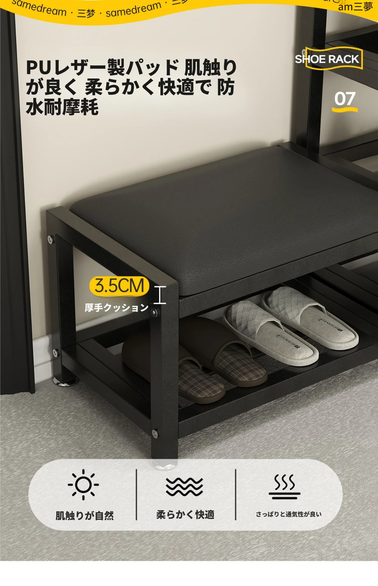 三夢シューラック 多層式 家庭用 玄関で座れる 簡易シューズラック 新作2025 爆売れシューズキャビネット ベンチ一体型