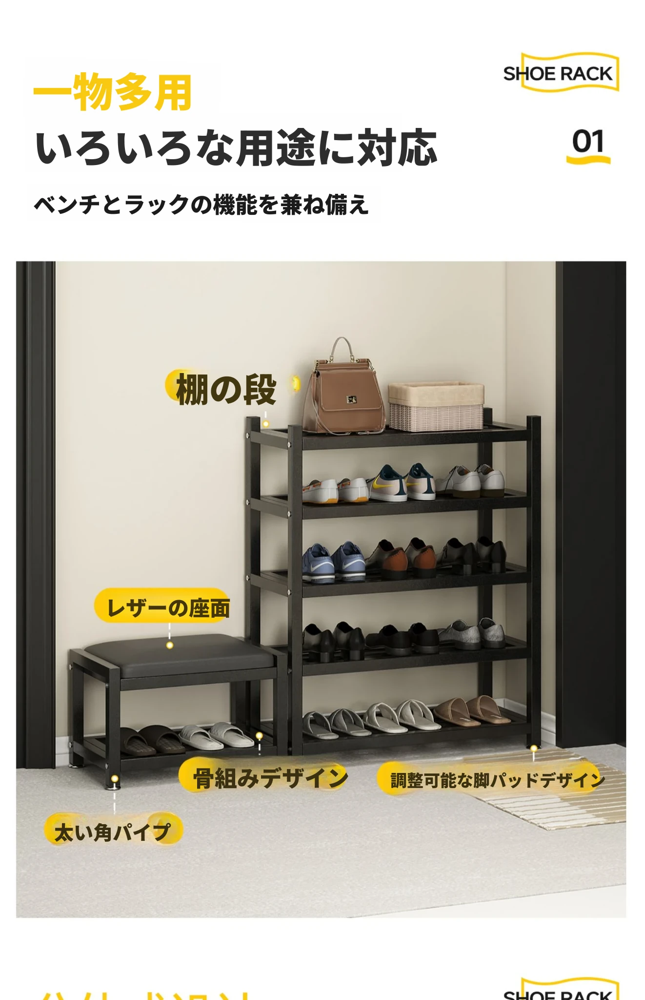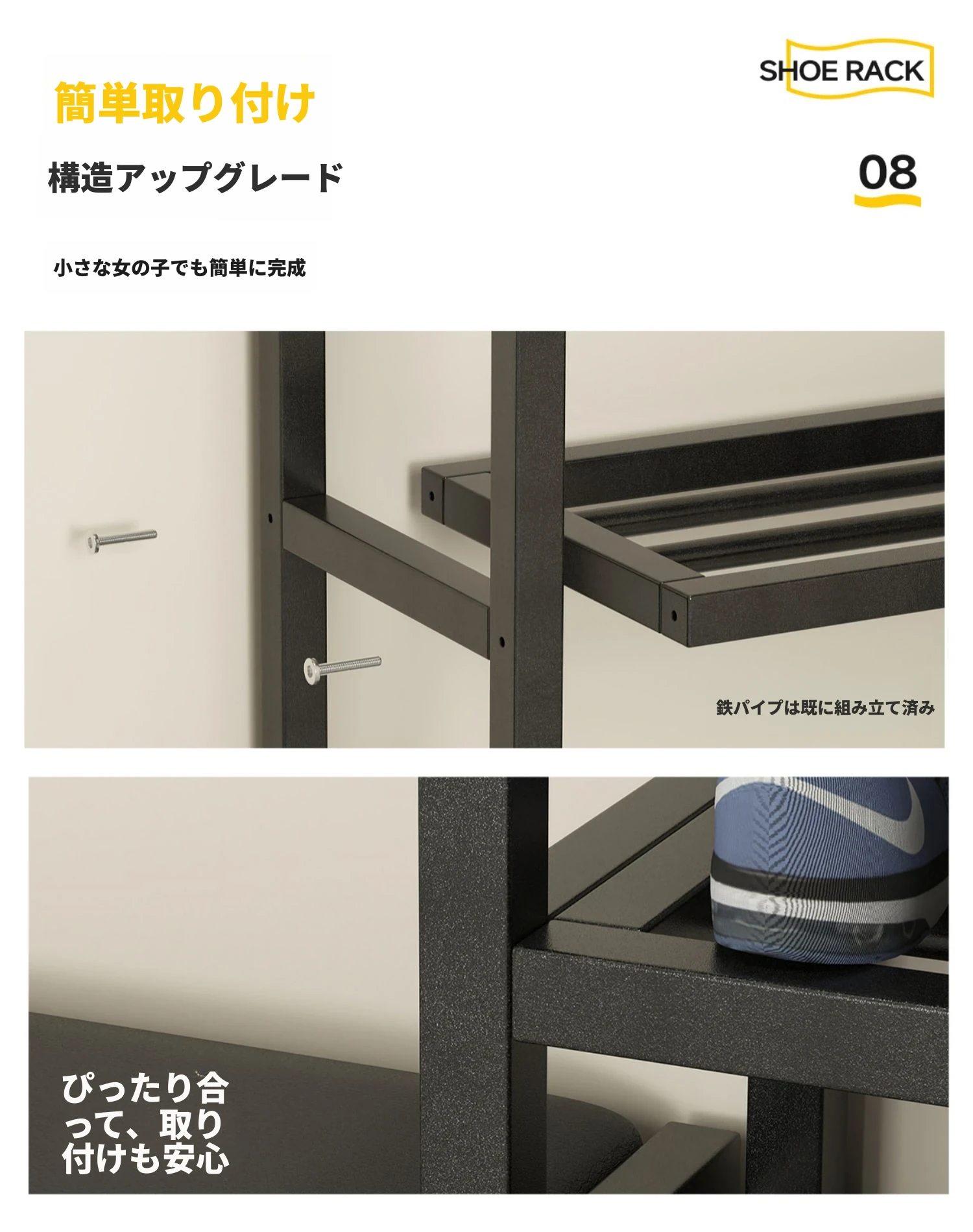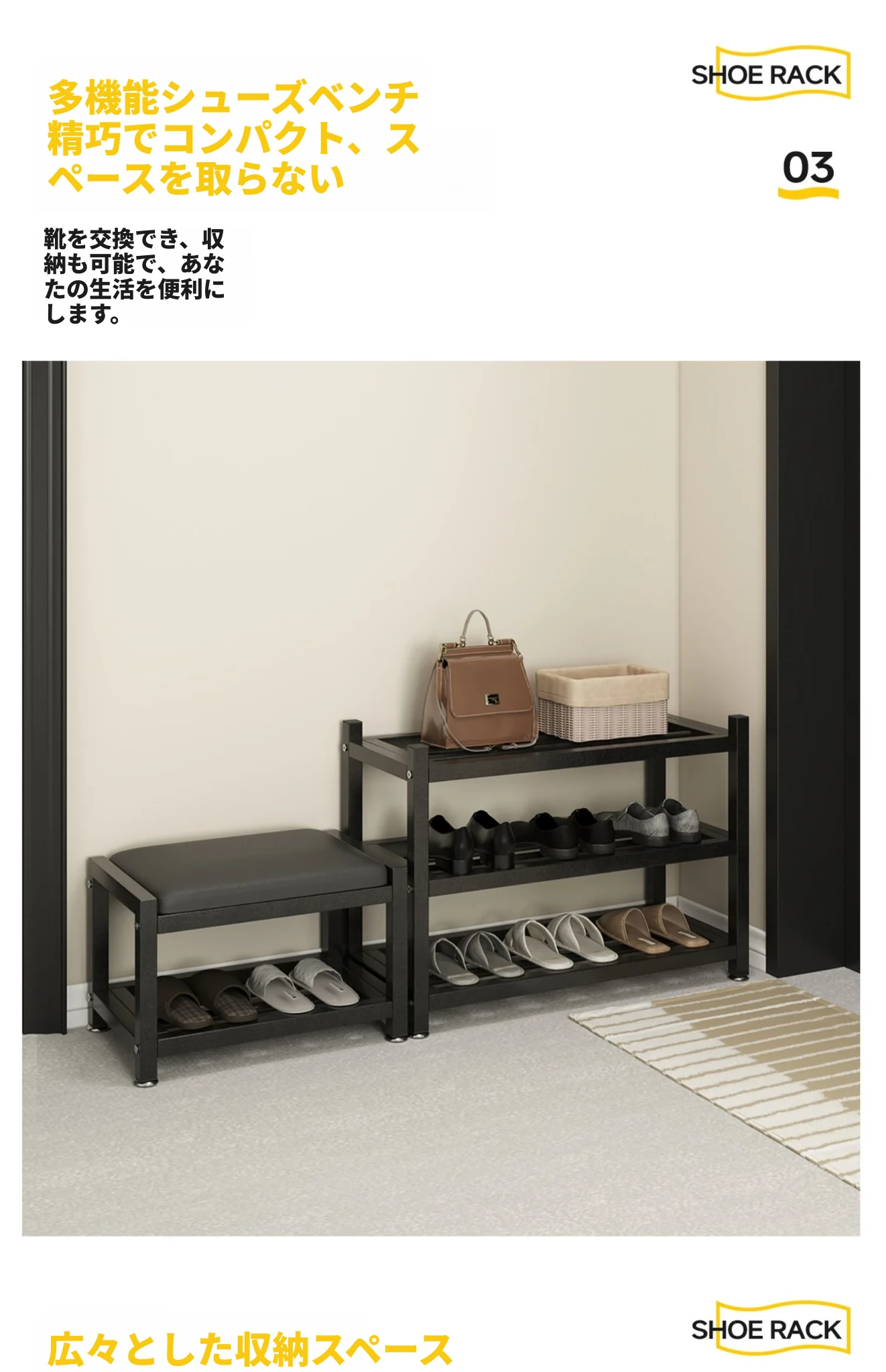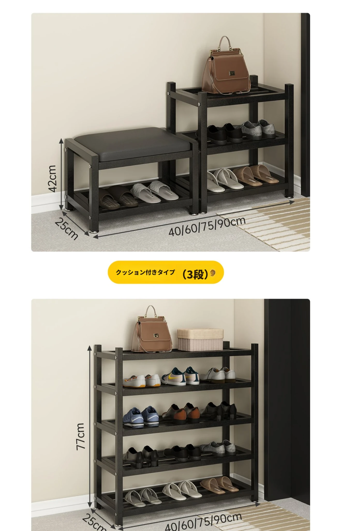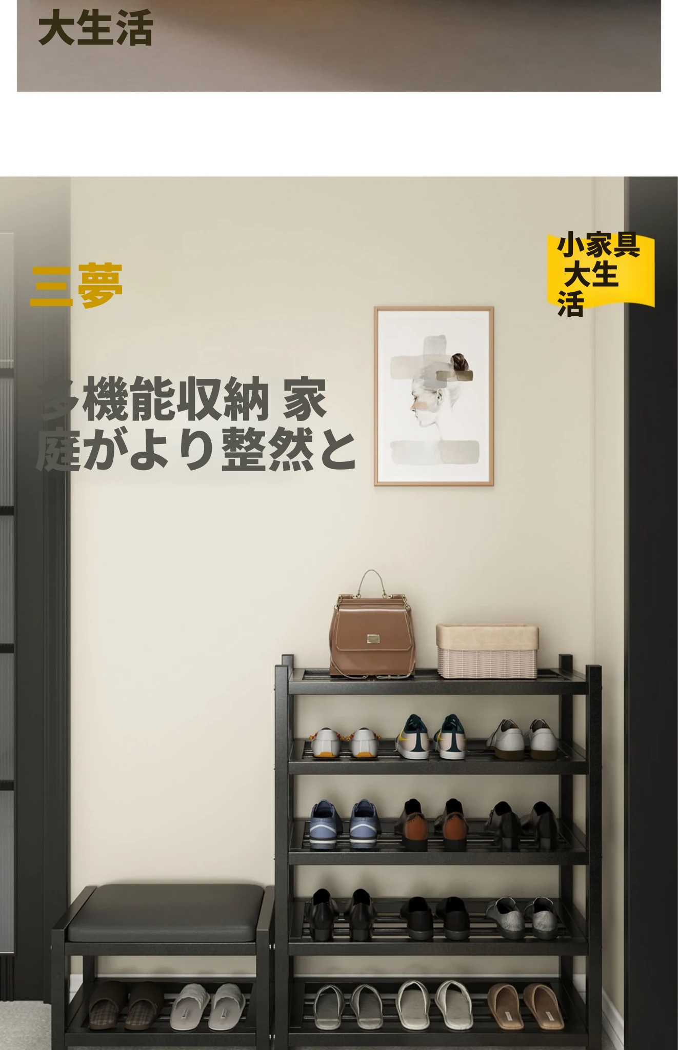 三夢シューラック 多層式 家庭用 玄関で座れる 簡易シューズラック 新作2025 爆売れシューズキャビネット ベンチ一体型