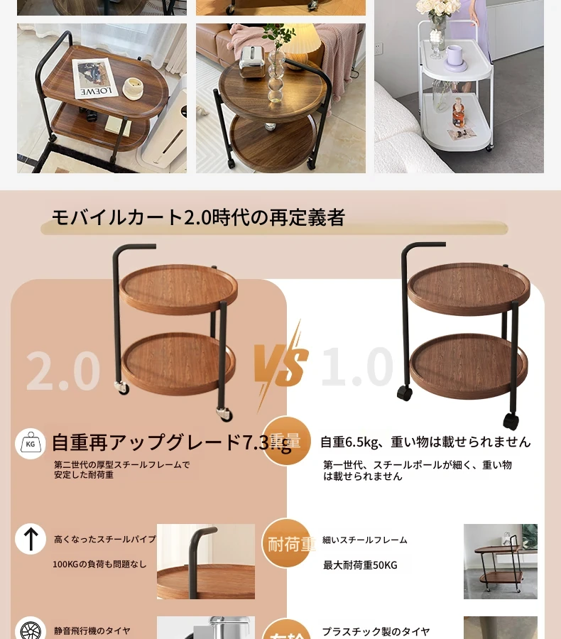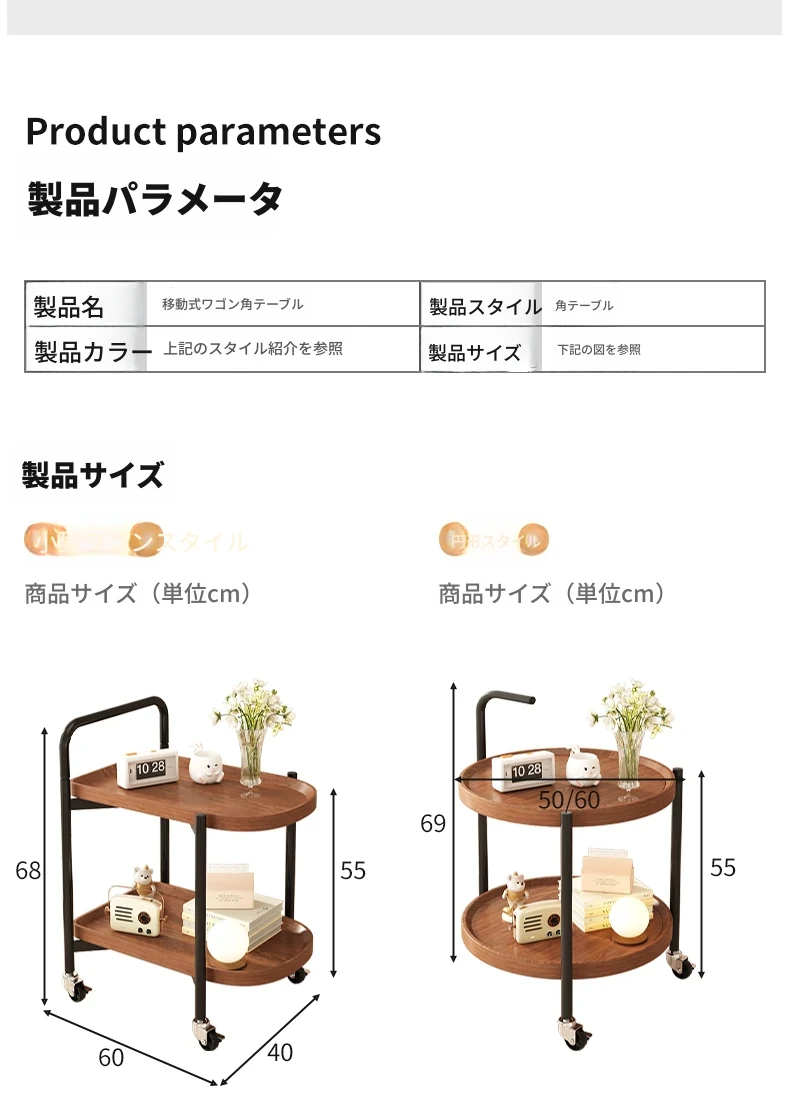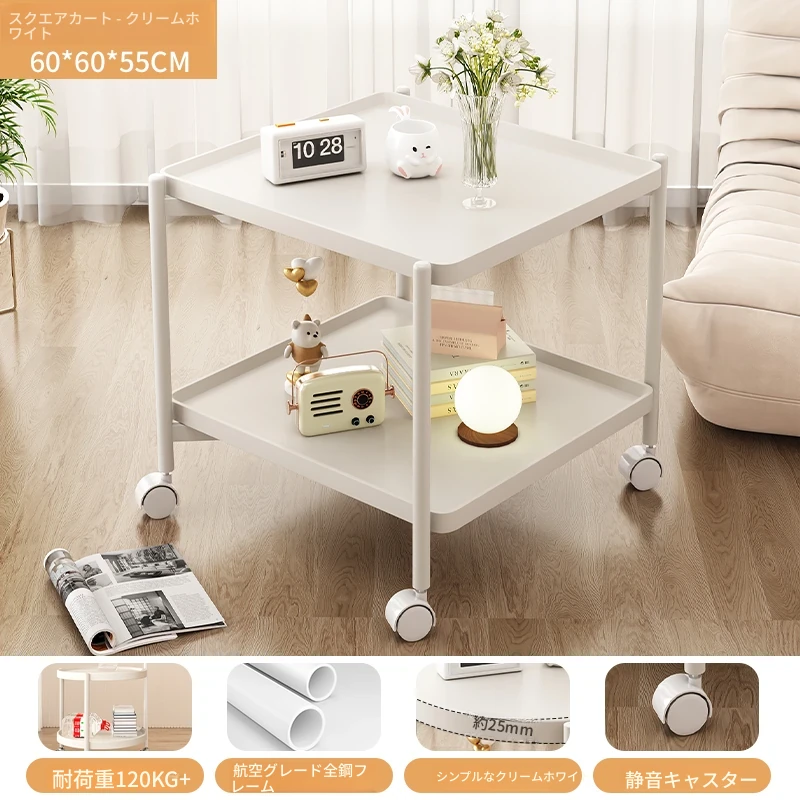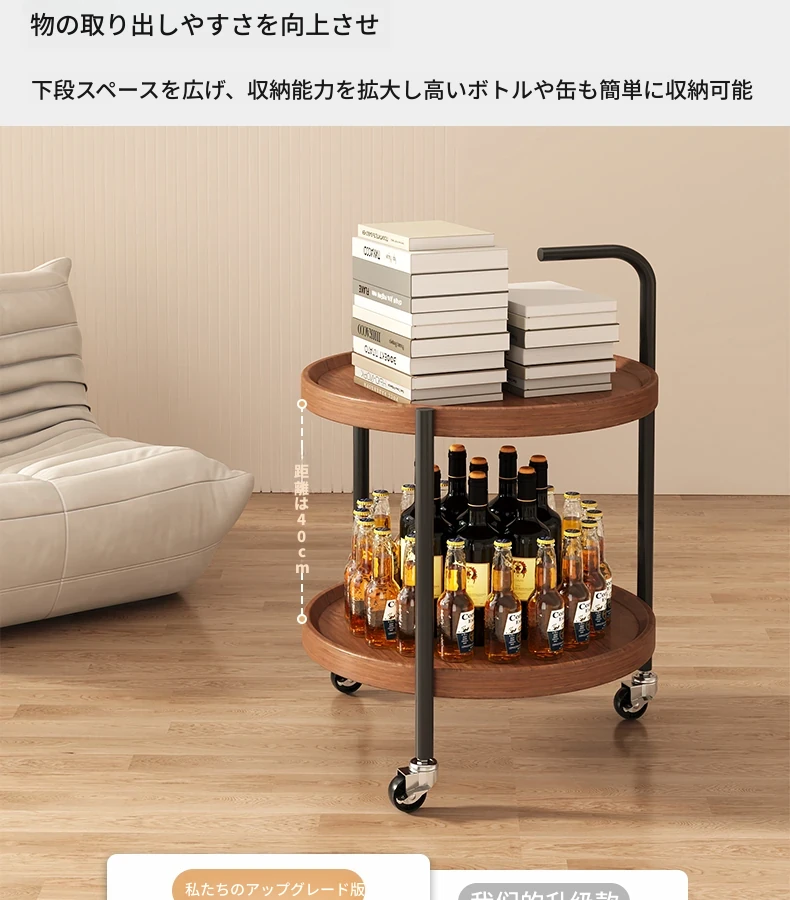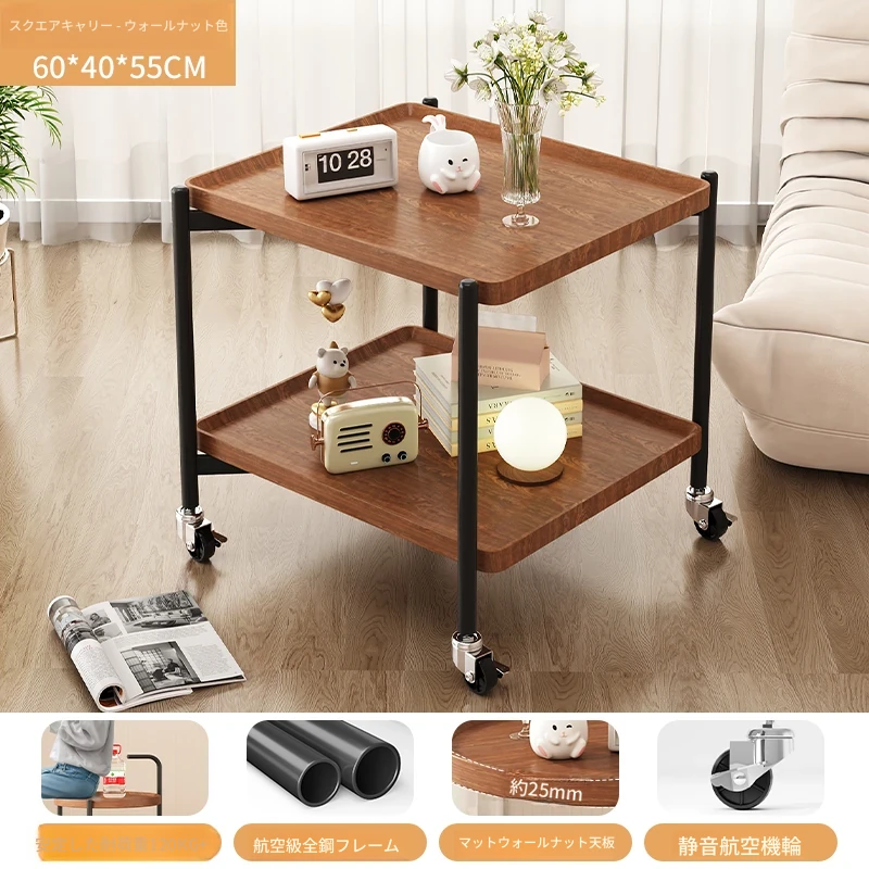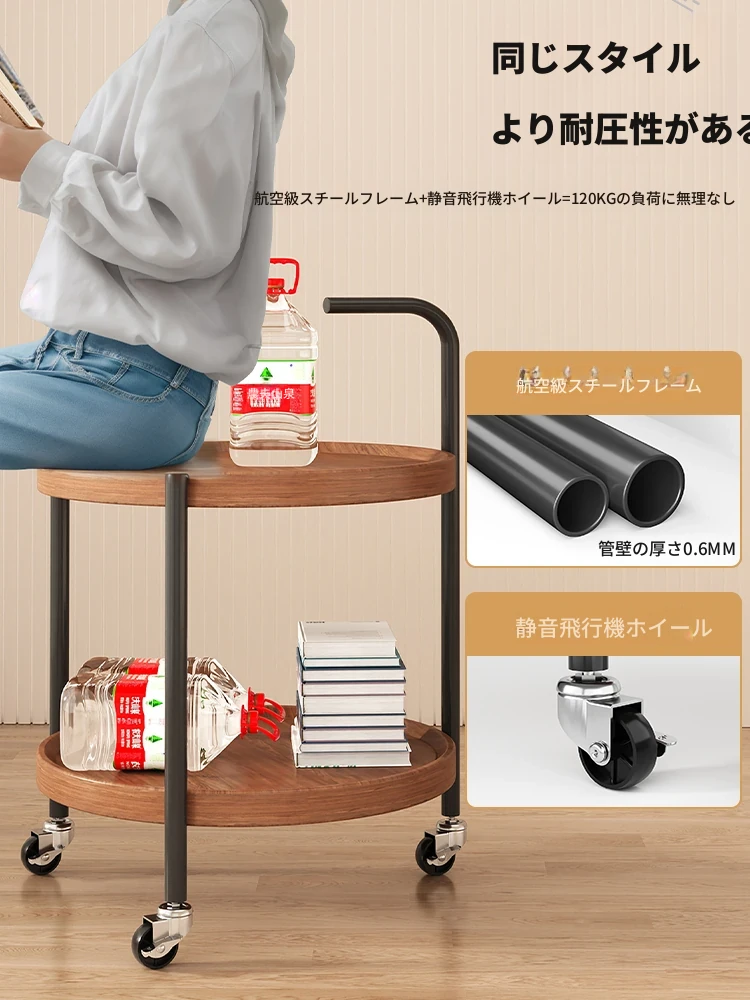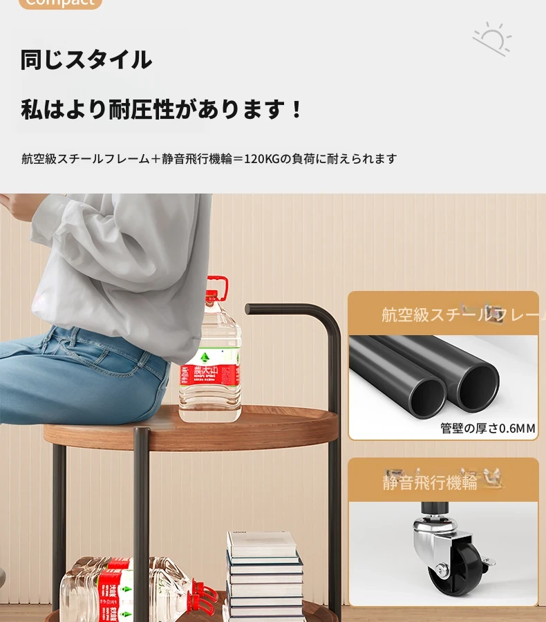 移動可能な丸型木製サイドテーブル - ソファやベッドサイドにぴったり!リビングやバルコニーでの収納にも最適なスタイリッシュなデザイン。快適な空間を演出するおしゃれなサイドテーブルです。