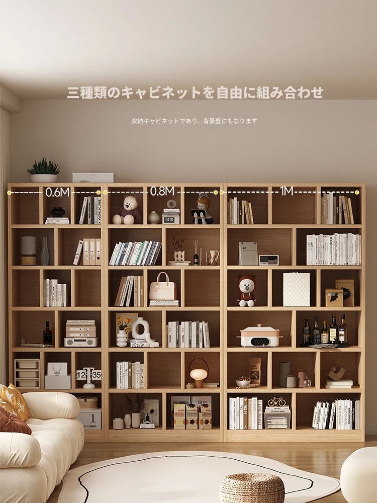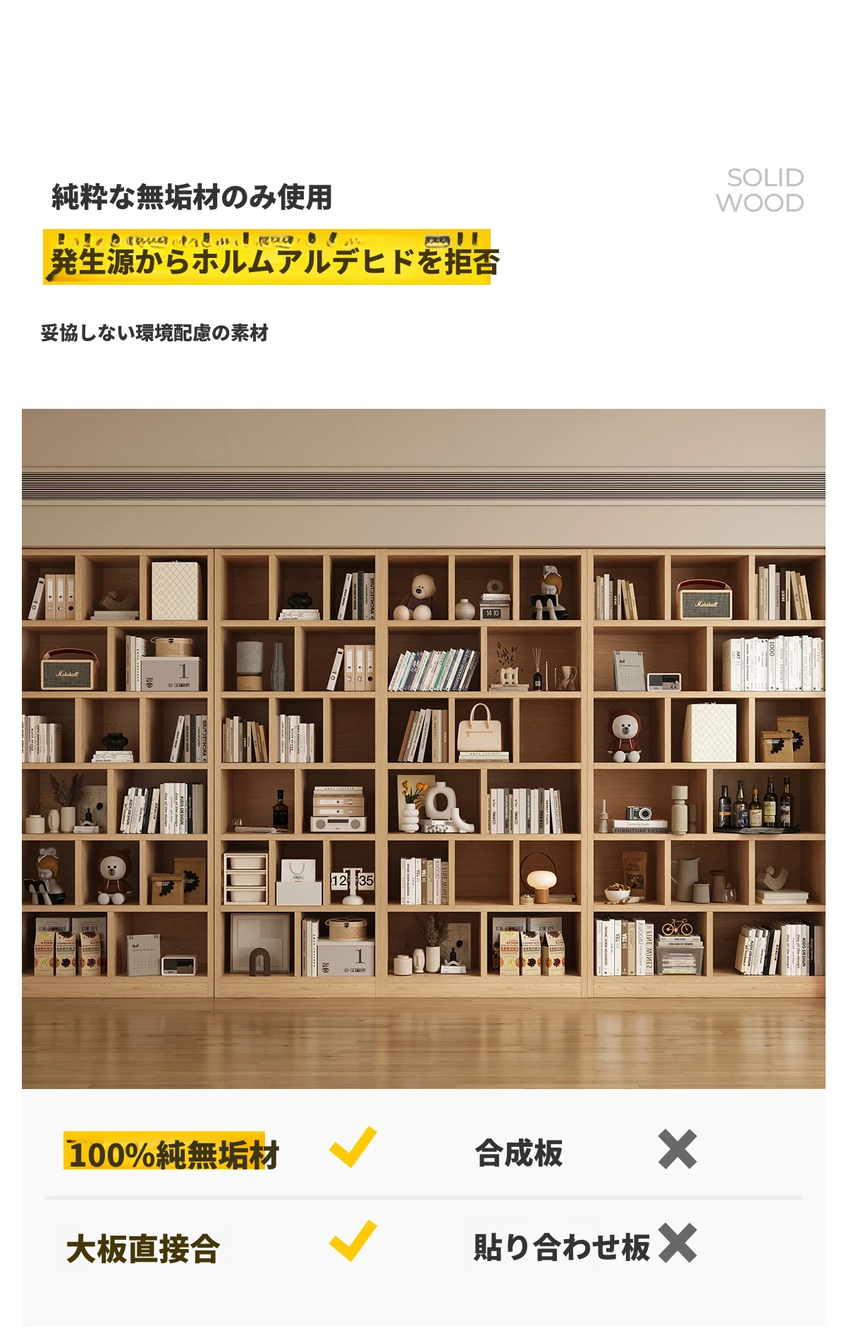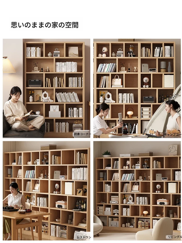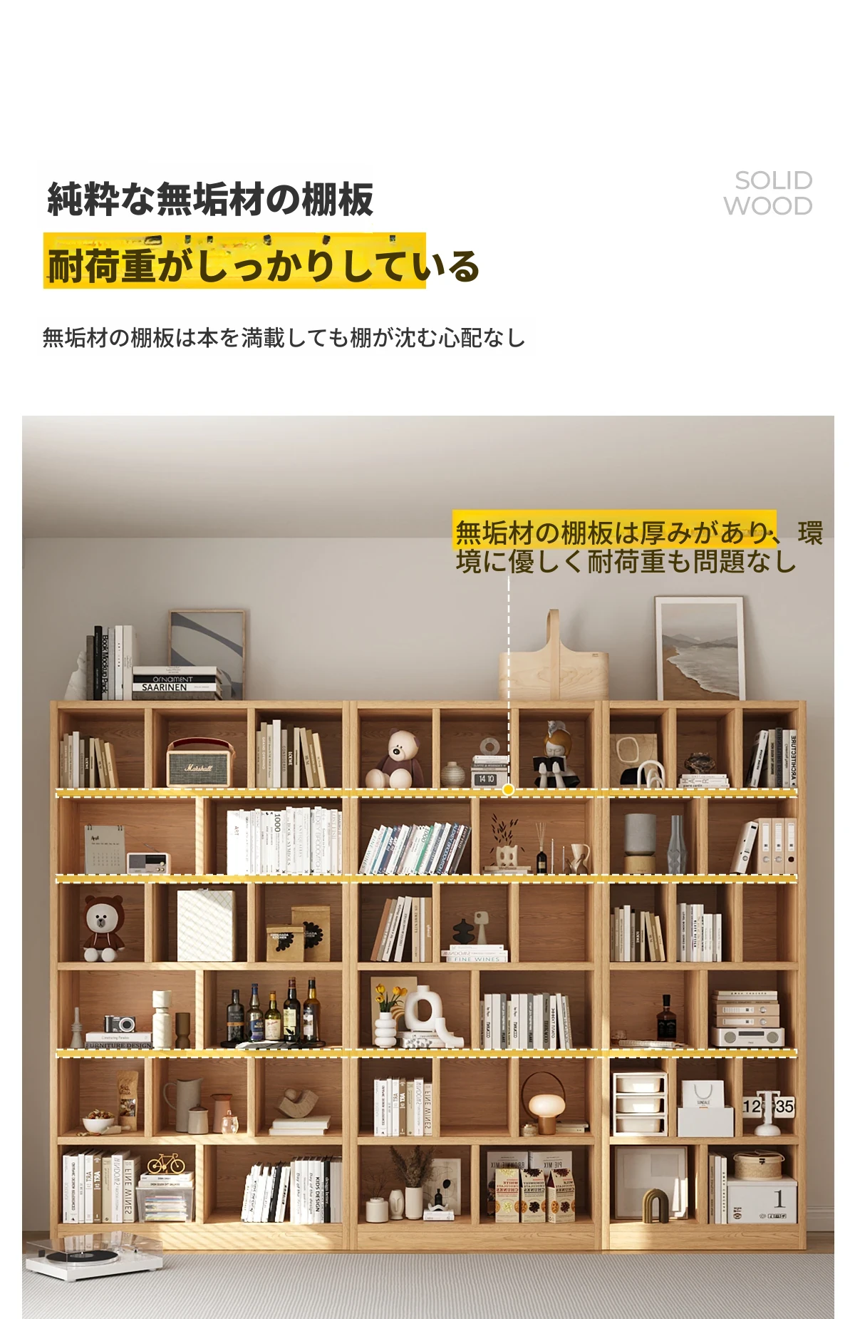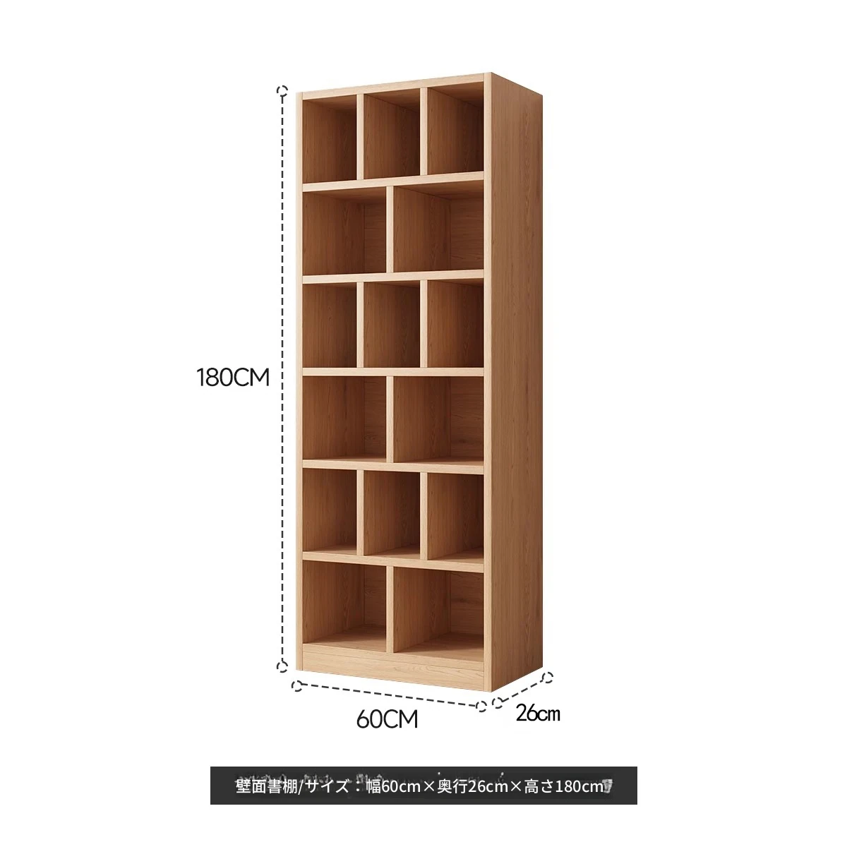 スタイリッシュな一体型無垢材書棚 - 自由に組み合わせ可能な壁掛け収納、シンプルで使いやすいリビングルーム用キャビネット!おしゃれな格子デザインで、あなたの空間を美しく演出します。