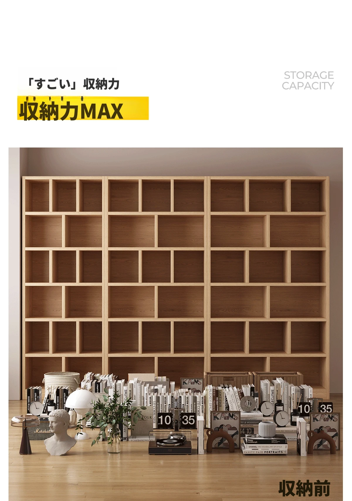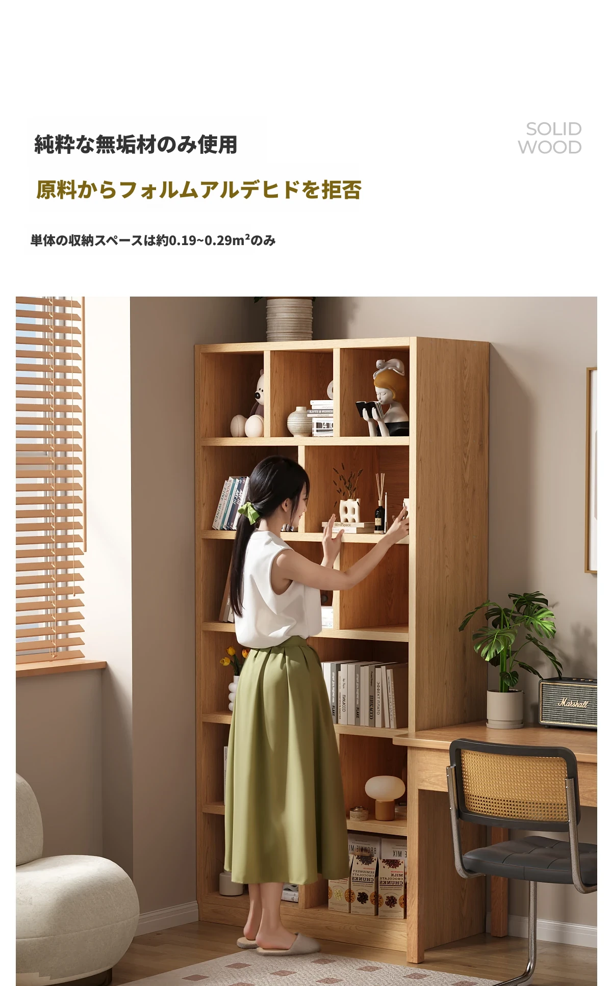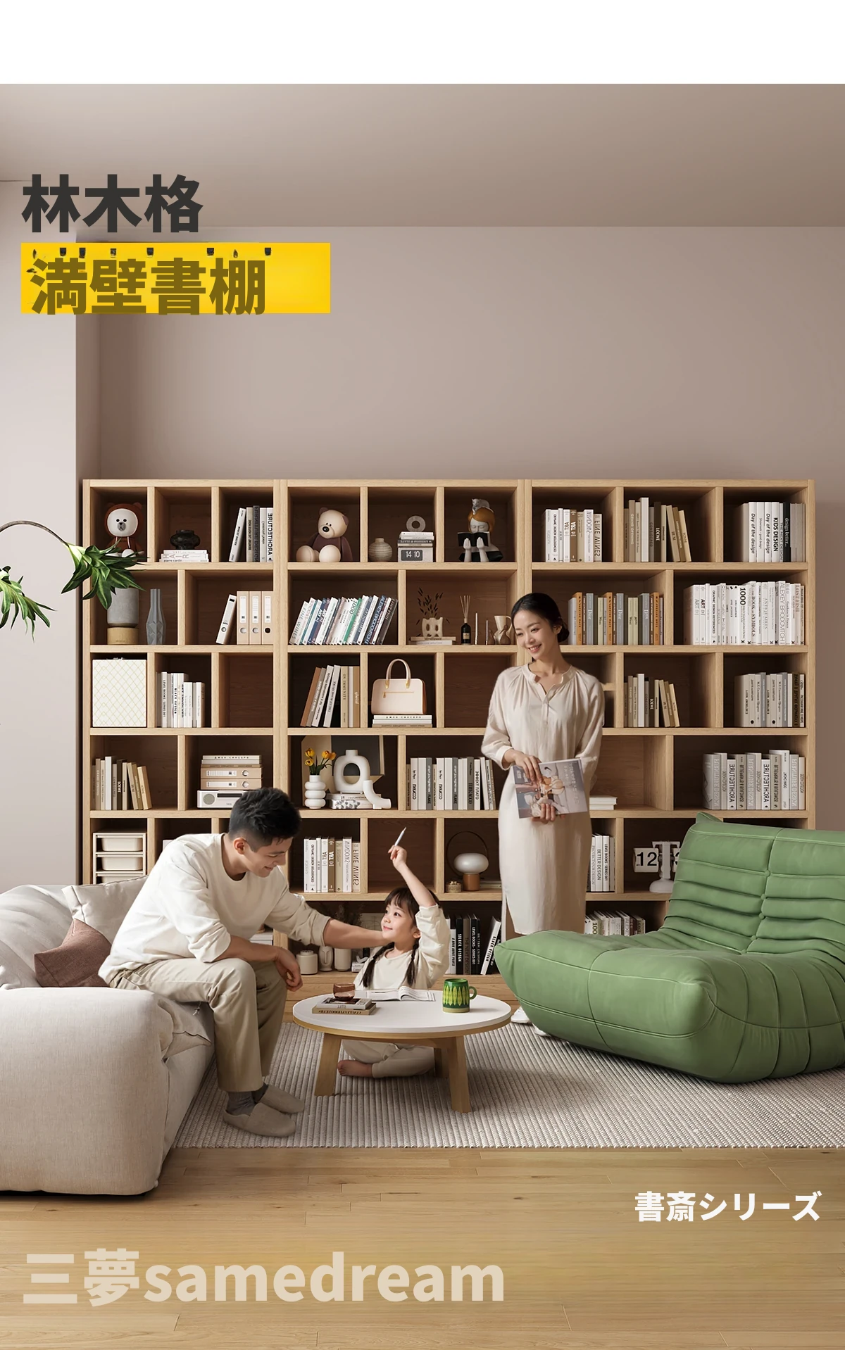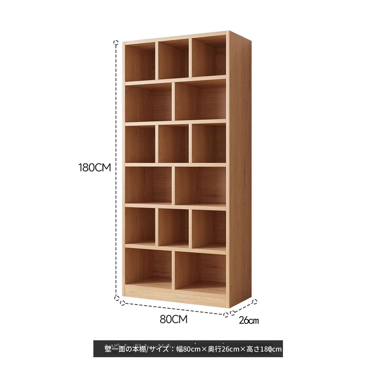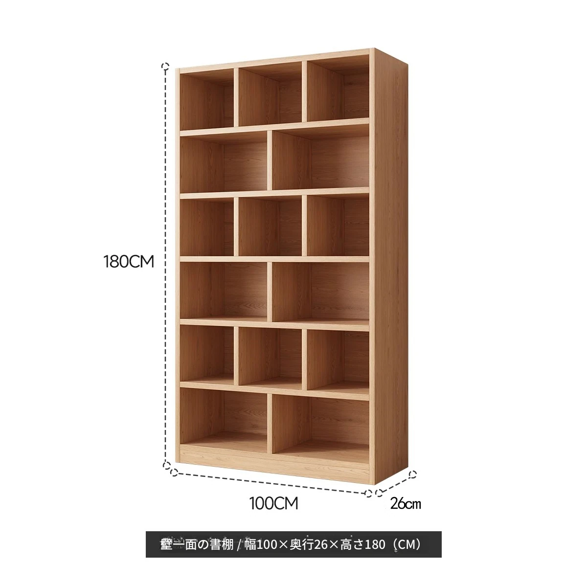スタイリッシュな一体型無垢材書棚 - 自由に組み合わせ可能な壁掛け収納、シンプルで使いやすいリビングルーム用キャビネット!おしゃれな格子デザインで、あなたの空間を美しく演出します。