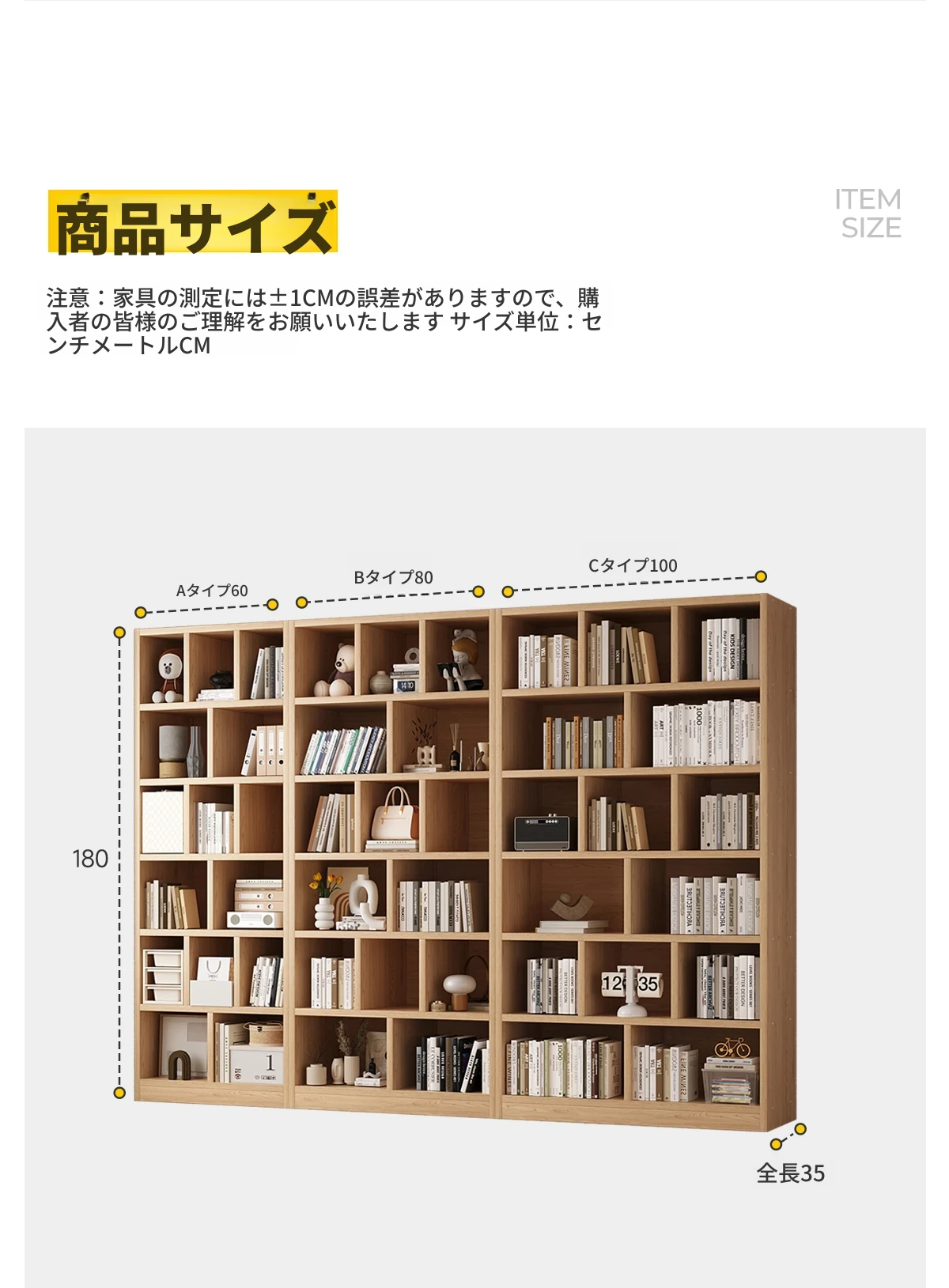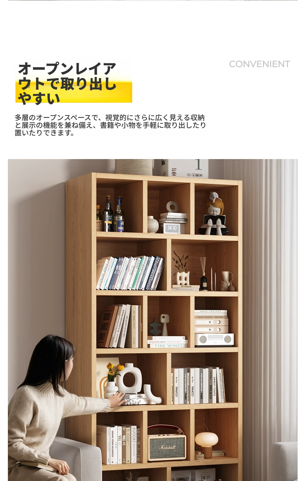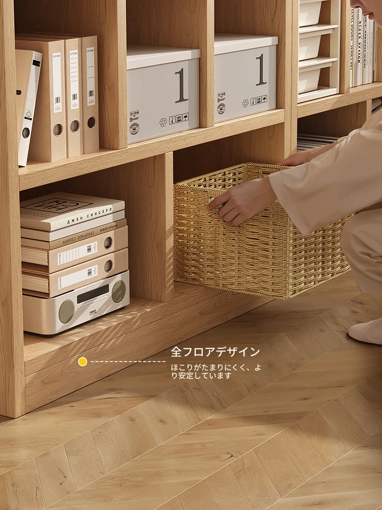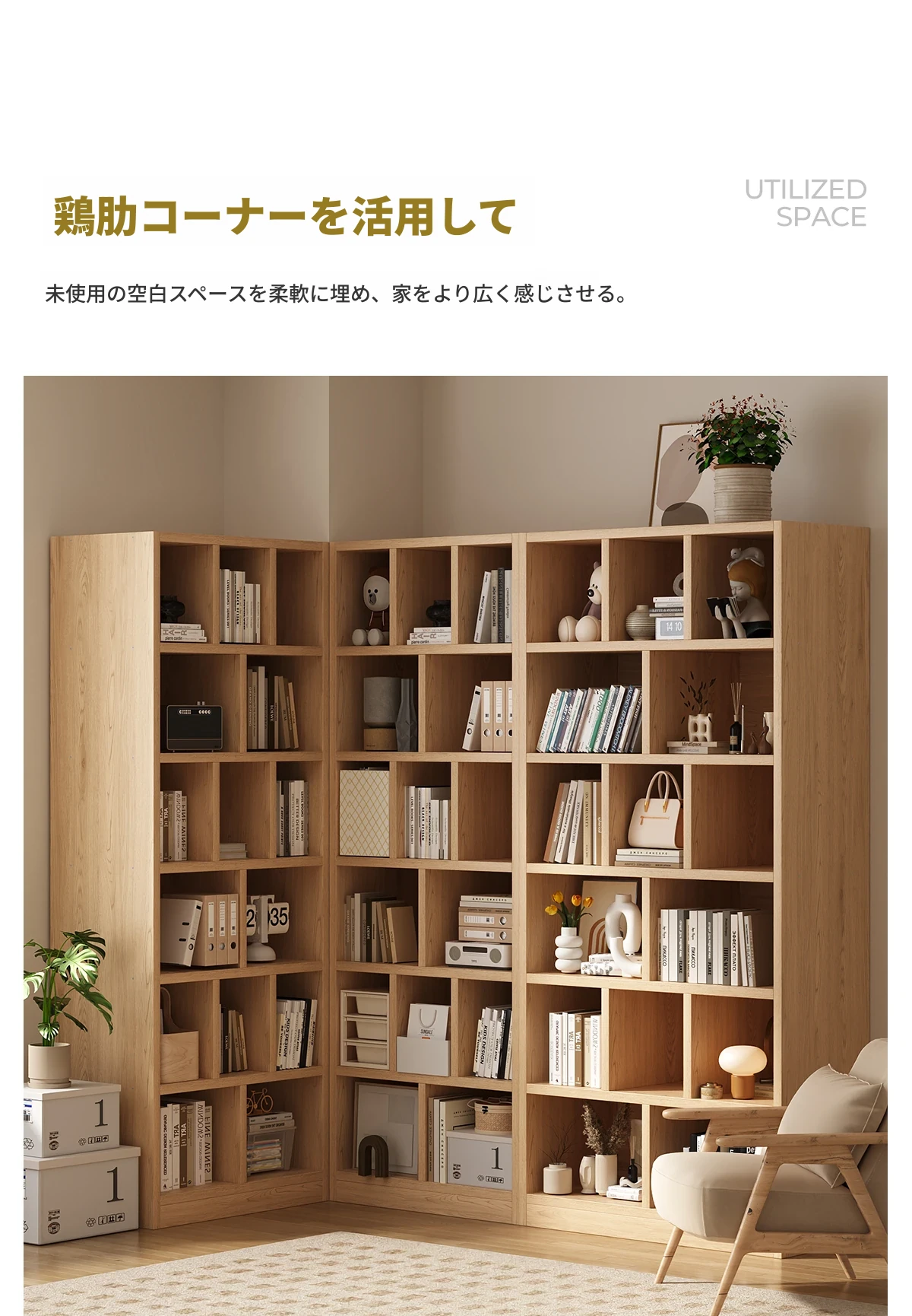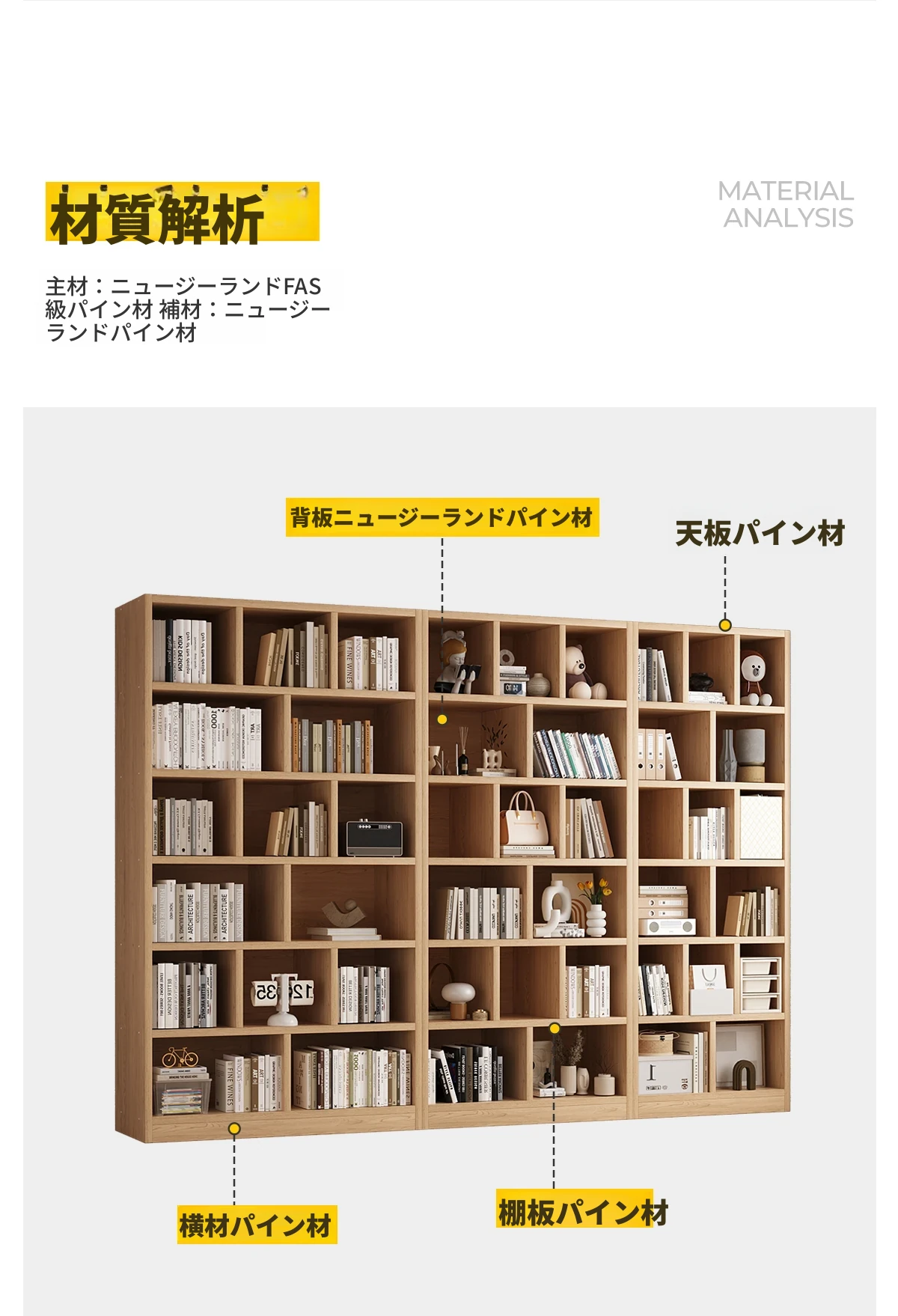 スタイリッシュな一体型無垢材書棚 - 自由に組み合わせ可能な壁掛け収納、シンプルで使いやすいリビングルーム用キャビネット!おしゃれな格子デザインで、あなたの空間を美しく演出します。