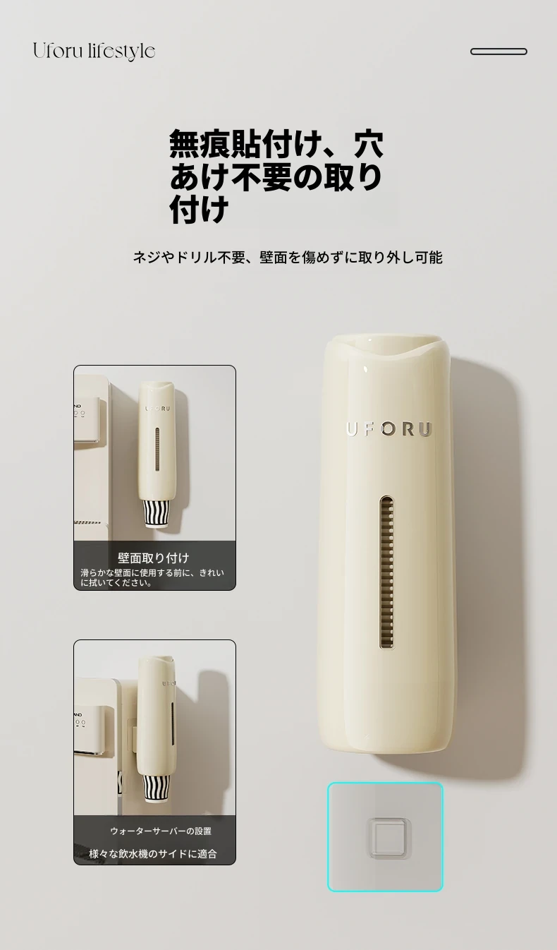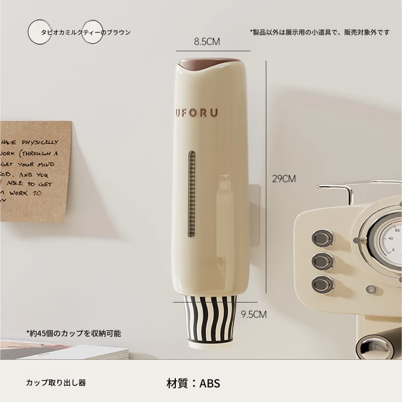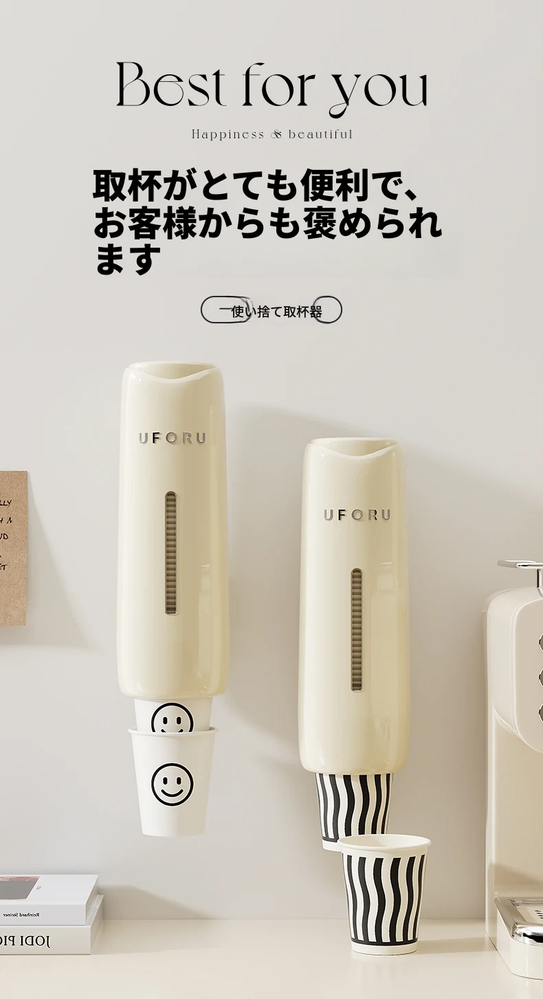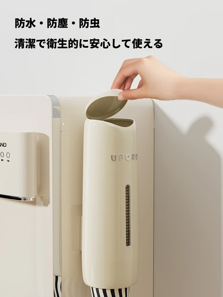 使いやすい!壁掛け式ディスポーザブルカップホルダー - 簡単取り出し、家事を楽にする収納ラック。穴を開けずに取り付け可能で、ほこりからカップを守ります。おしゃれで便利なアイテムで、キッチンやリビングに最適!