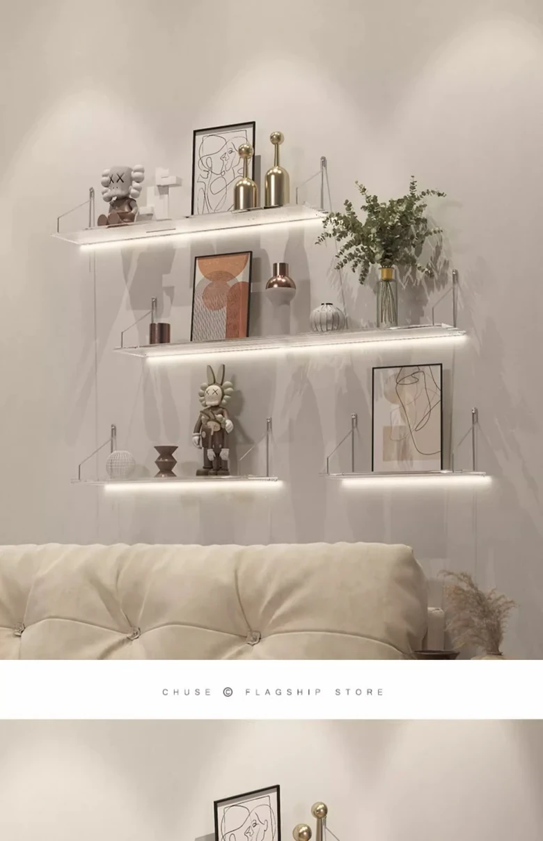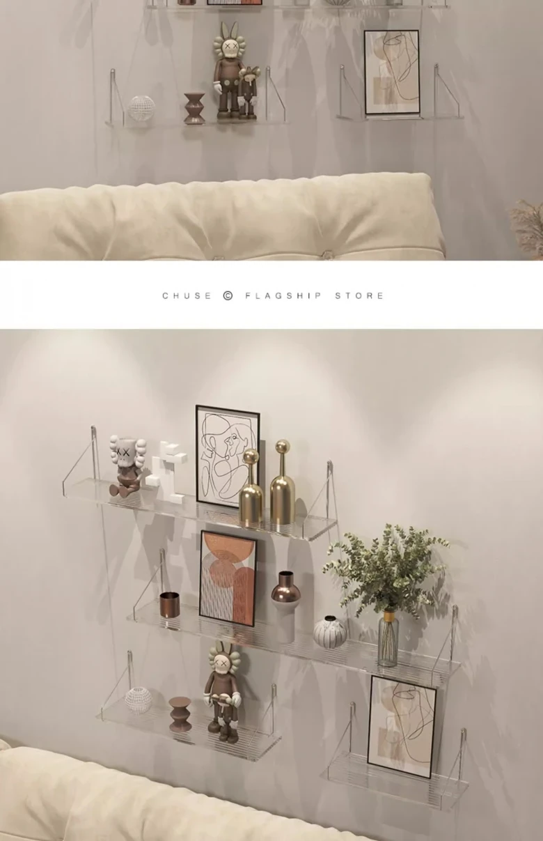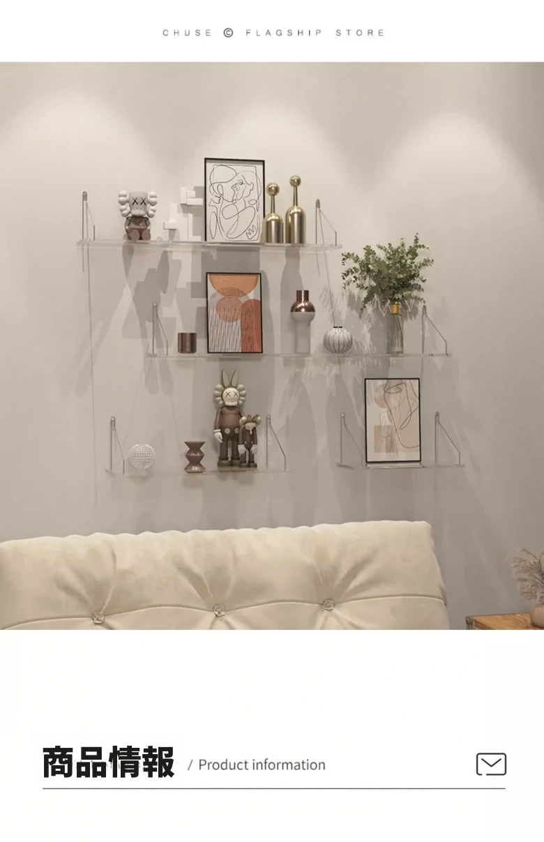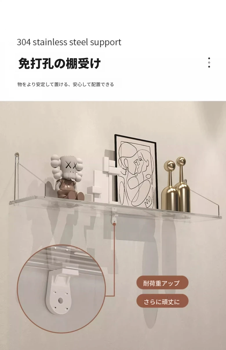壁掛け式アクリルシェルフ - 穴を開けずに簡単取り付け!スタイリッシュなデザインでリビングの収納と展示を実現!おしゃれな空間を演出するフロアスタンド型ラック。