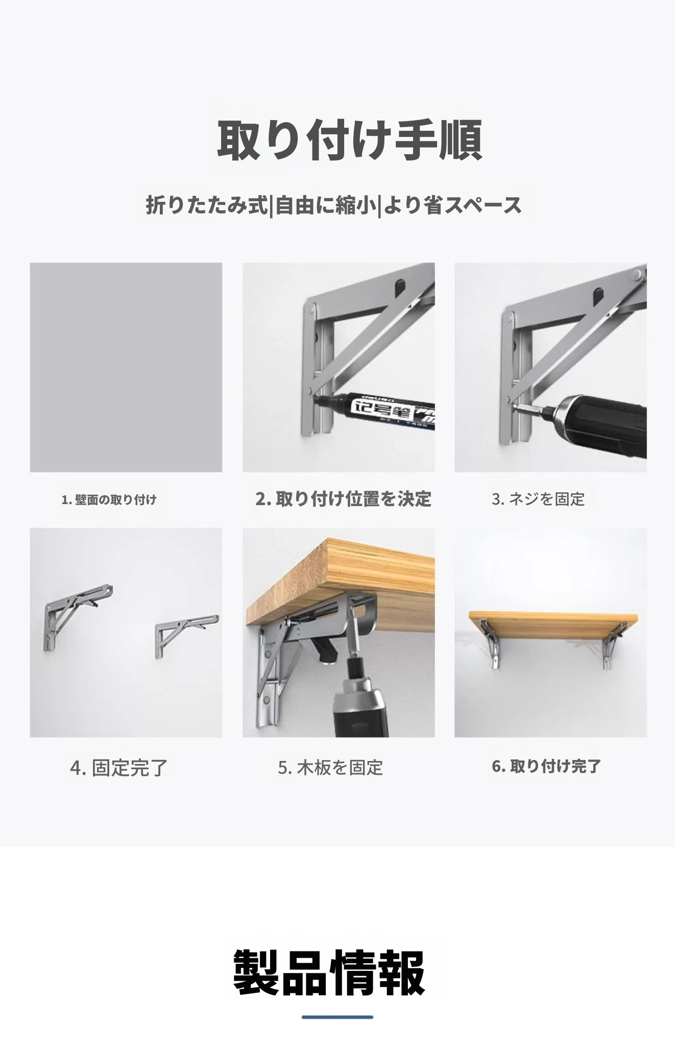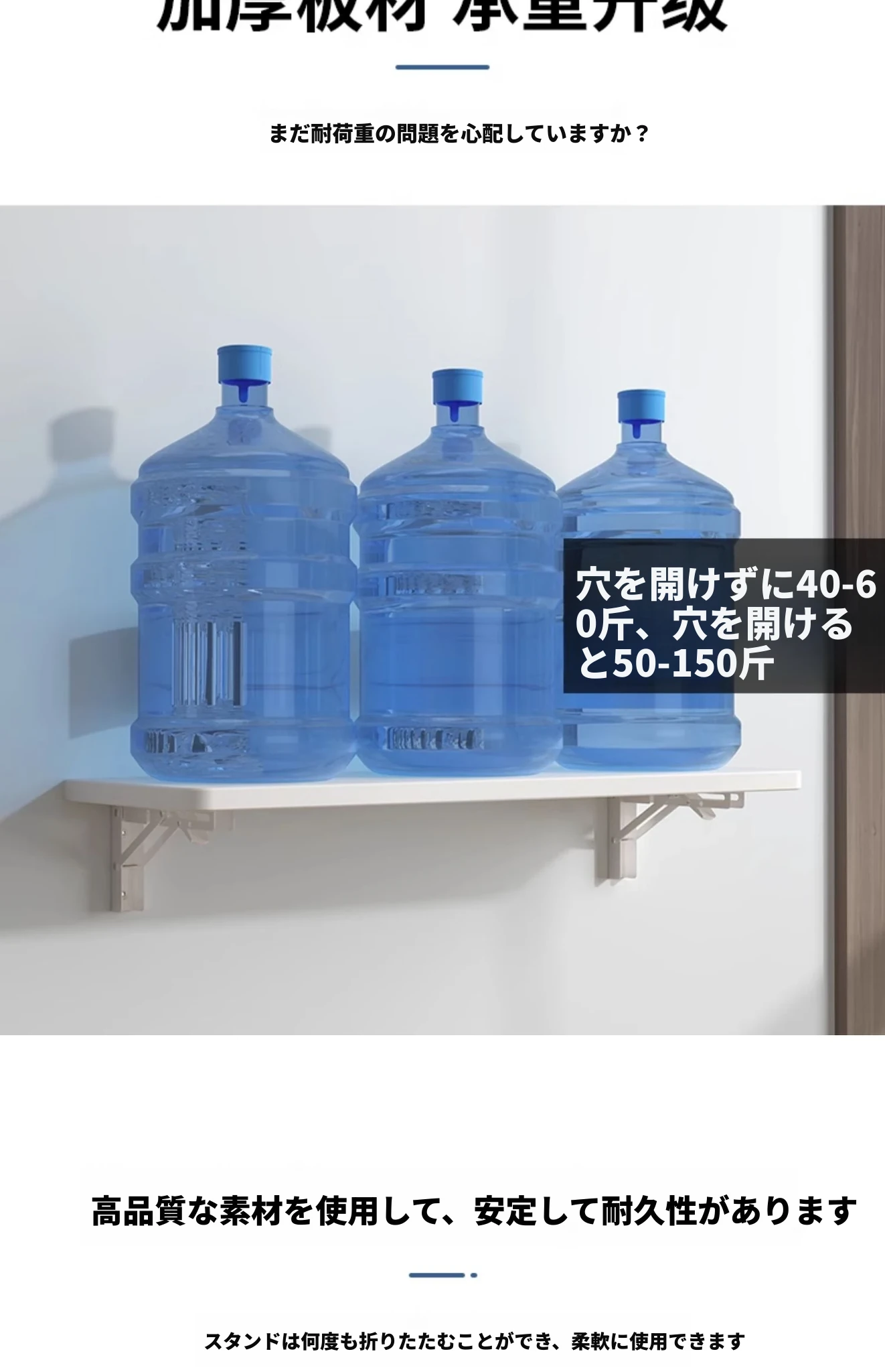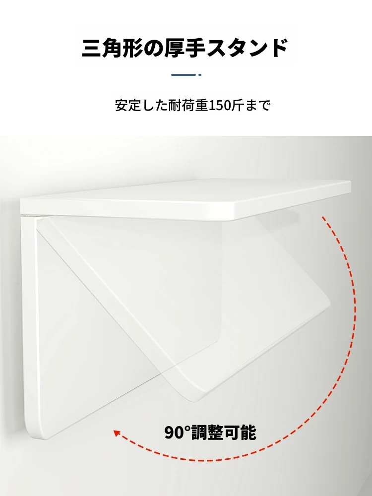 壁掛け折りたたみテーブル - キッチン用マルチ収納ラック!壁に取り付けるだけで、スペースを有効活用。穴を開けずに簡単設置、スタイリッシュな一字型仕切りでお部屋をスッキリ整理!