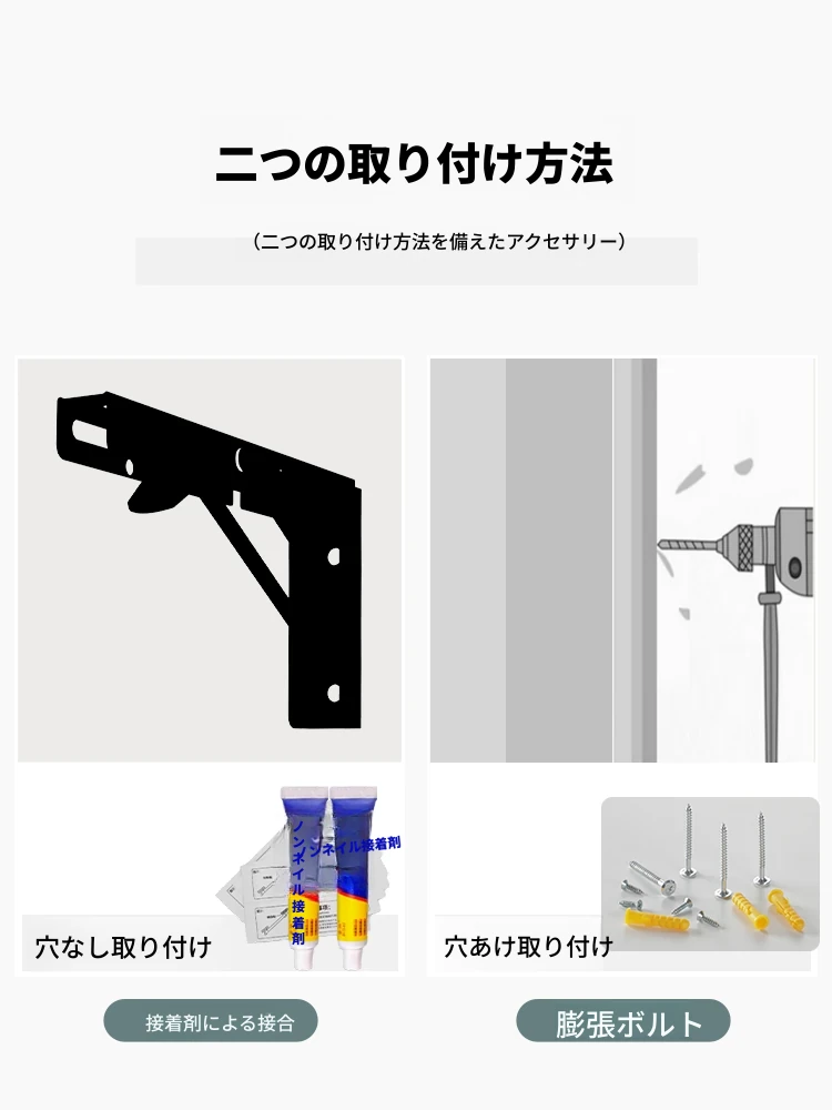 長40*幅24cm ナチュラルカラー【釘不要接着+2つのスタンド+拡張ボルト】