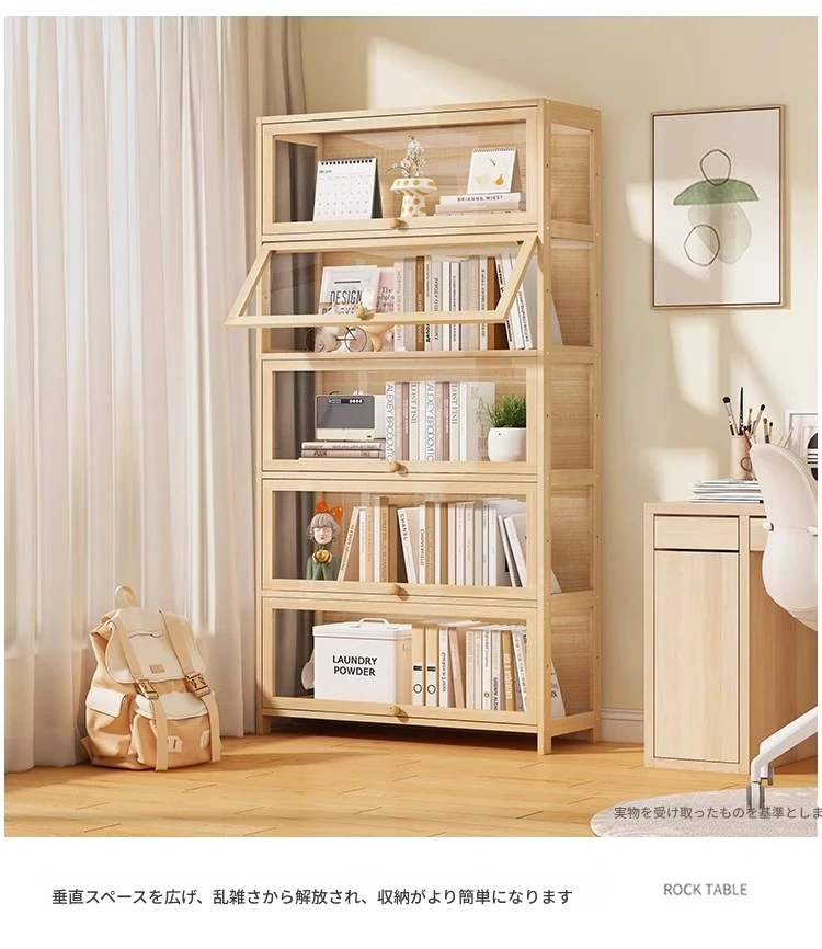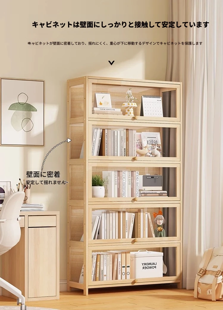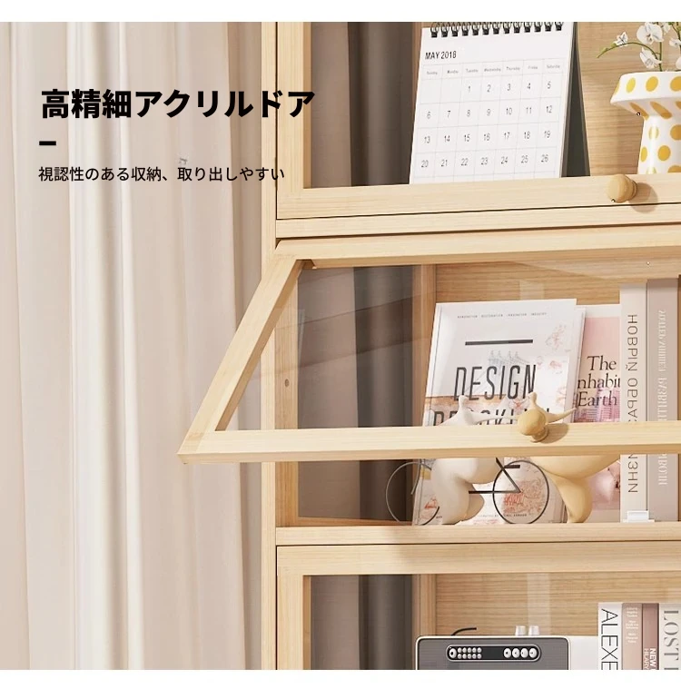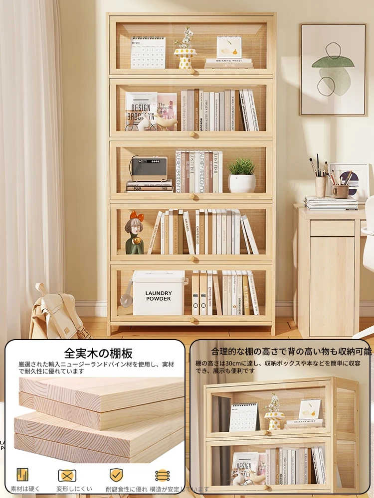子供部屋にもぴったり!おしゃれなアクリル扉付きの実木製書棚。ホコリを防ぎ、使いやすい多段収納で、家中の整理整頓をサポートします。高品質なデザインで、あなたの書籍や小物を美しくディスプレイ!