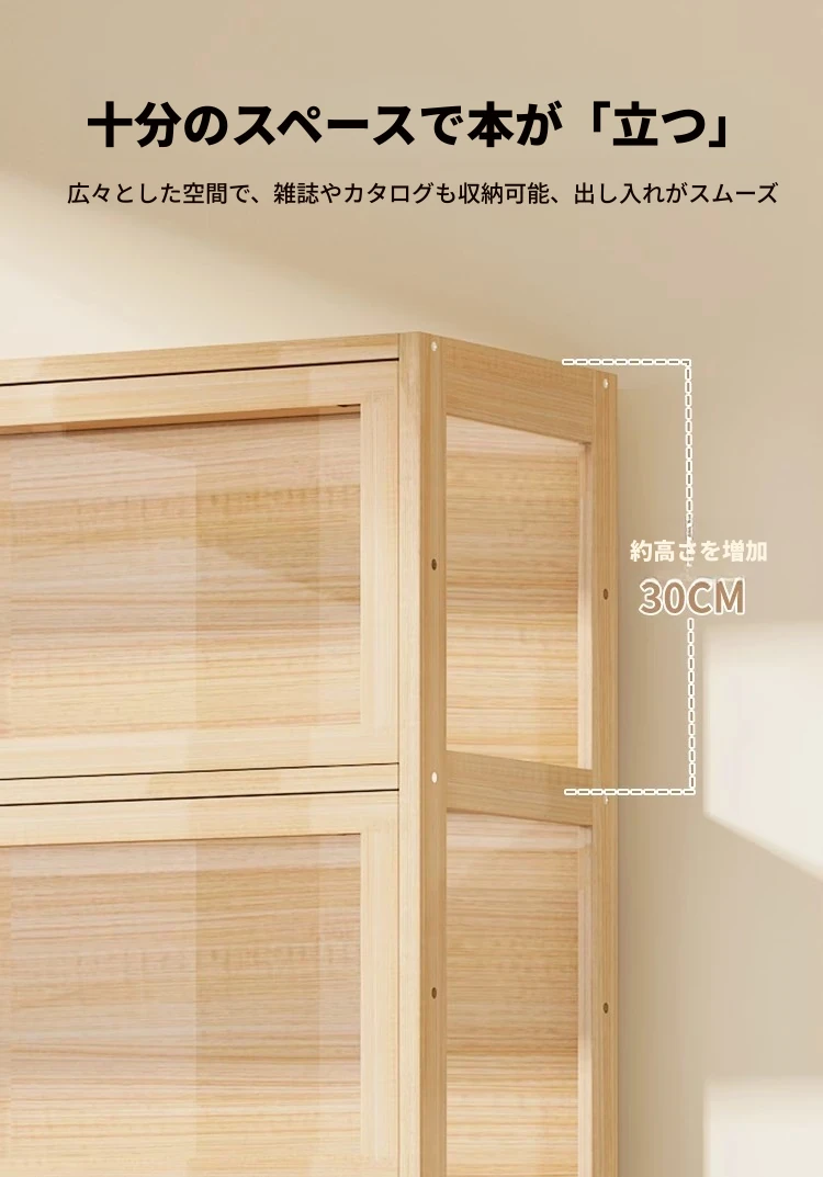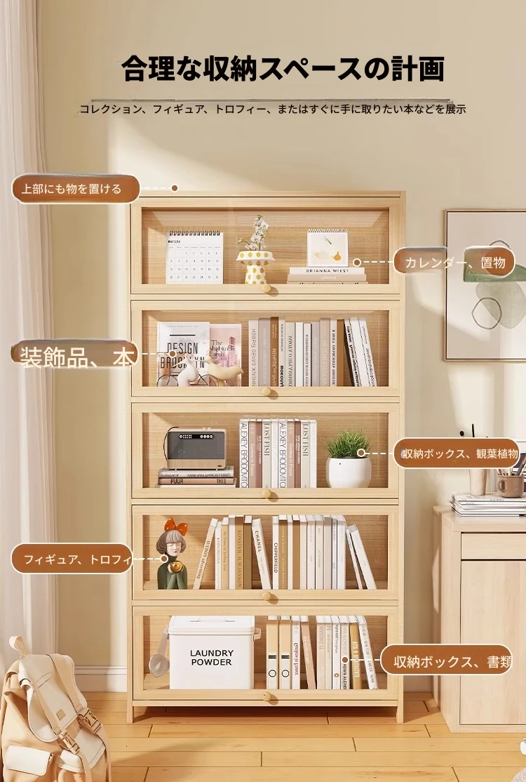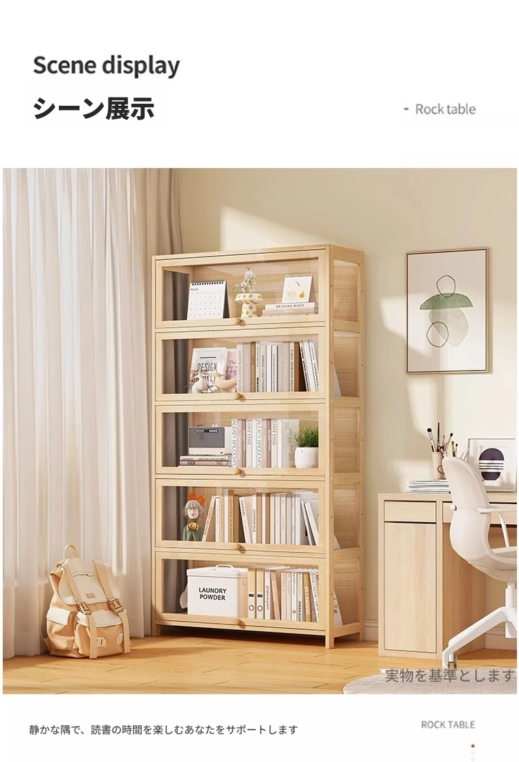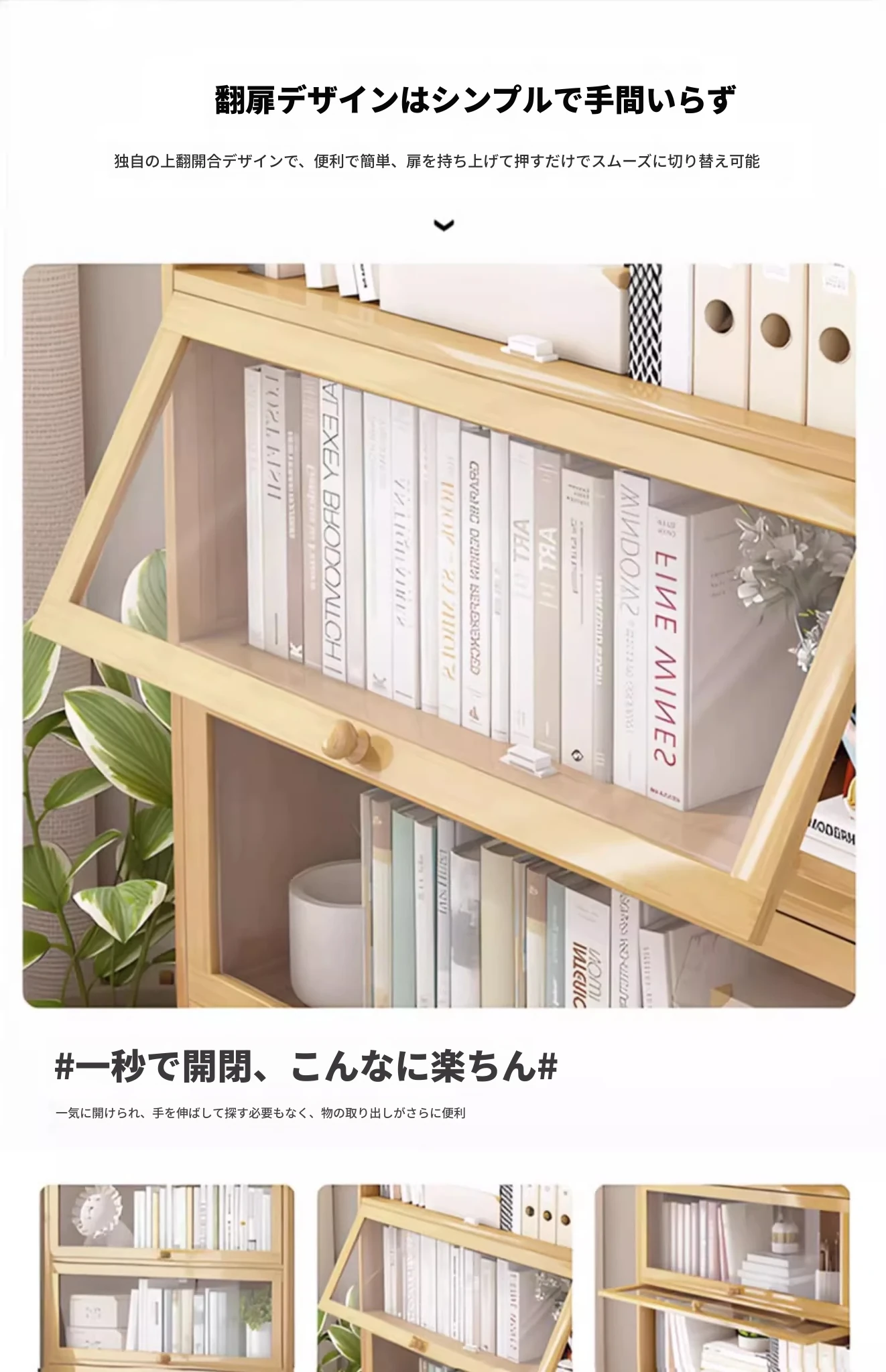 子供部屋にもぴったり!おしゃれなアクリル扉付きの実木製書棚。ホコリを防ぎ、使いやすい多段収納で、家中の整理整頓をサポートします。高品質なデザインで、あなたの書籍や小物を美しくディスプレイ!